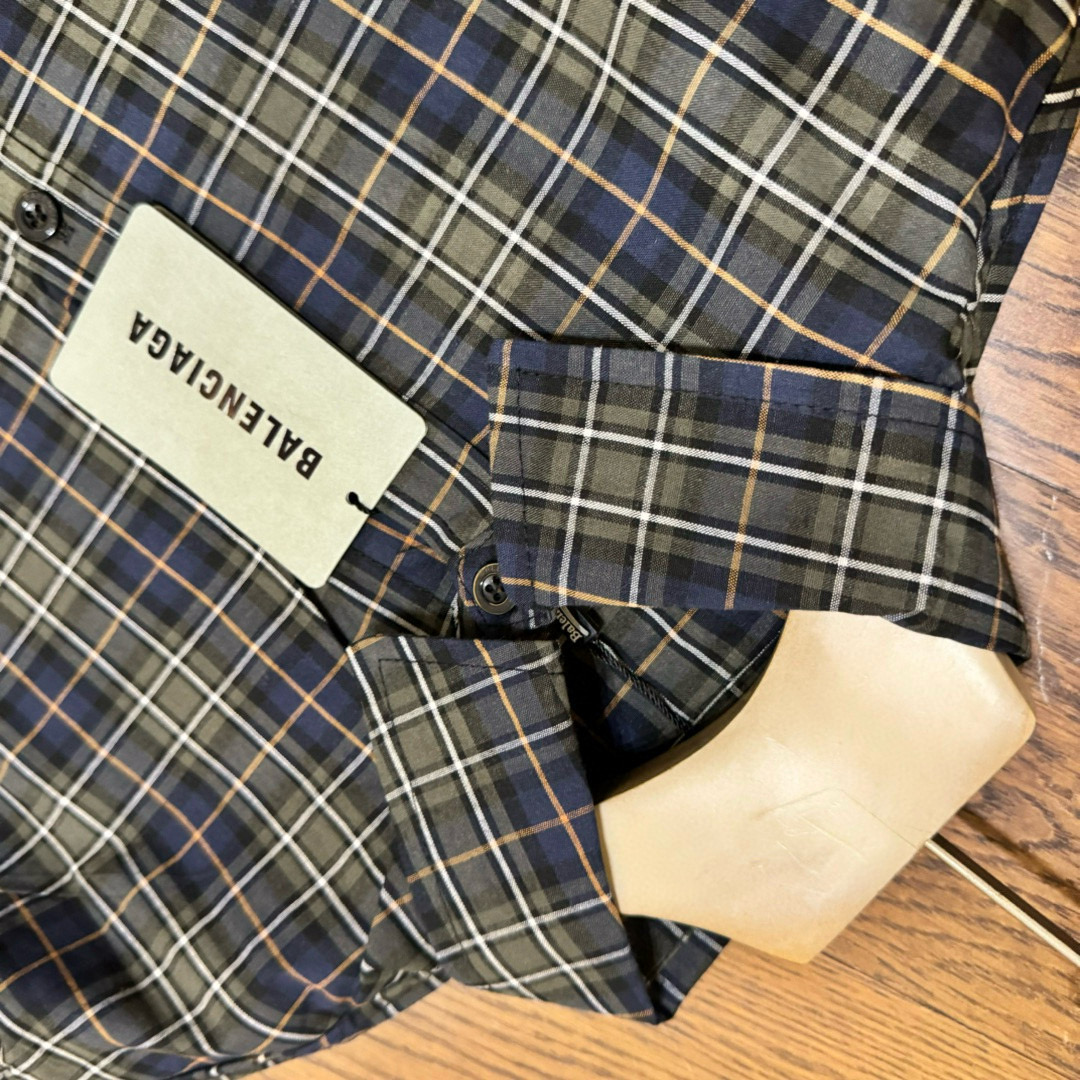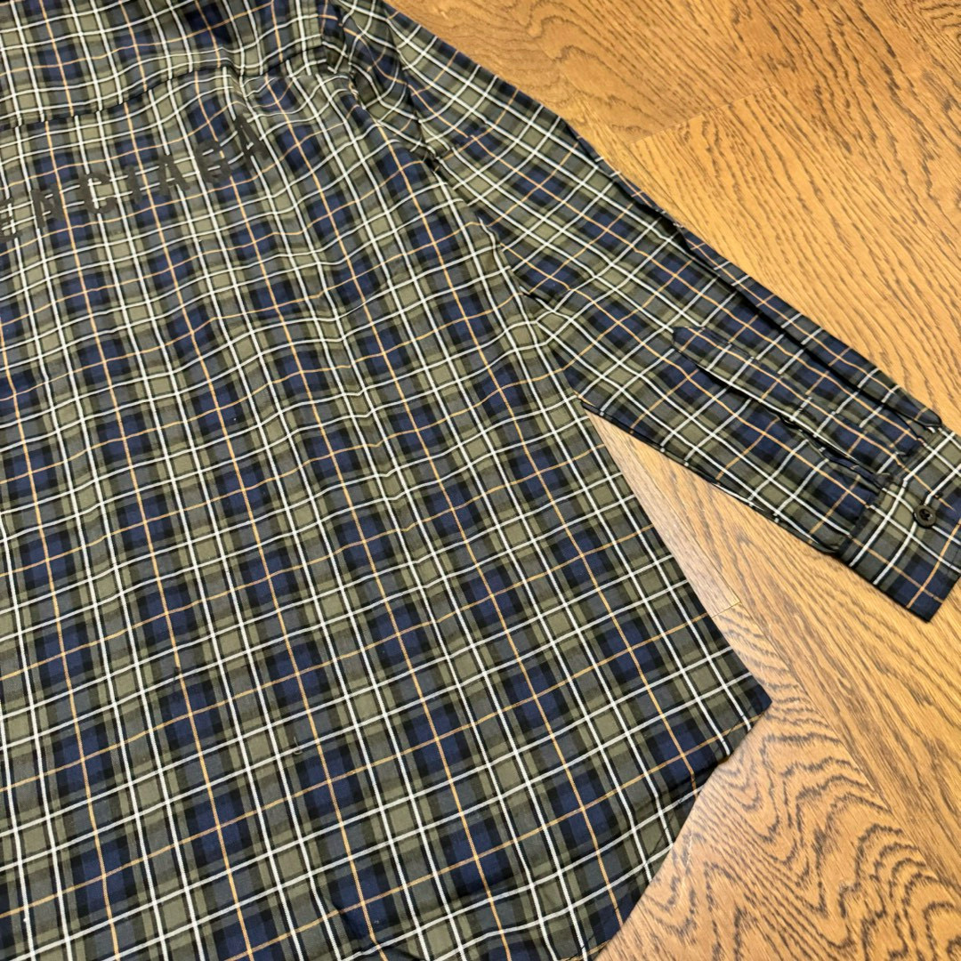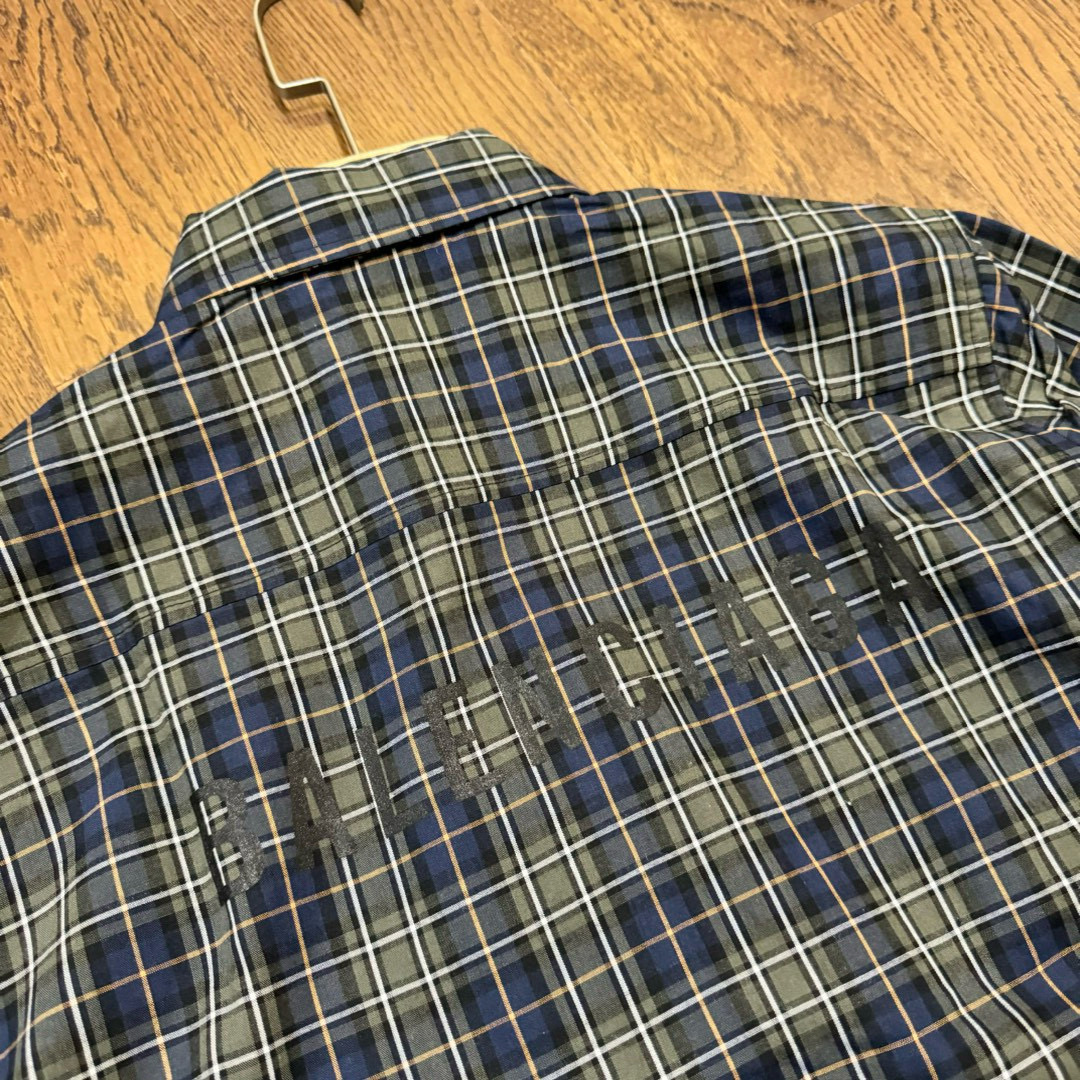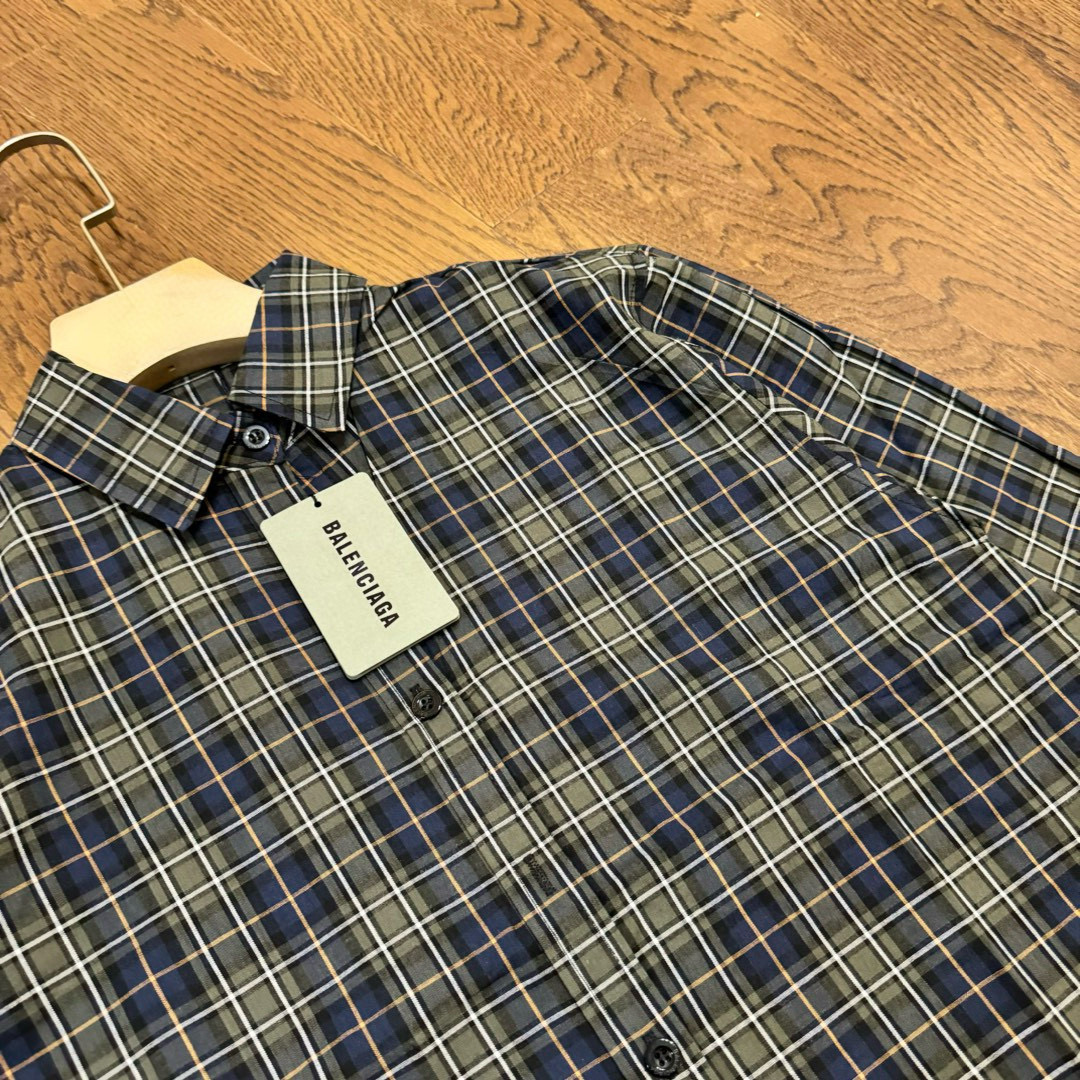 BALENCIAGA 巴黎世家24ss 后背字母印花绿格子色织情侣长袖衬衫