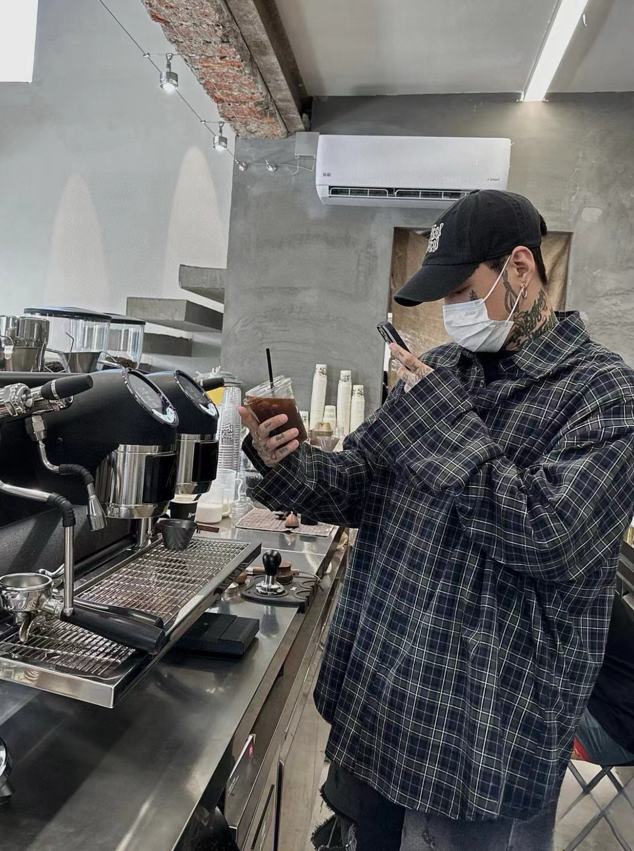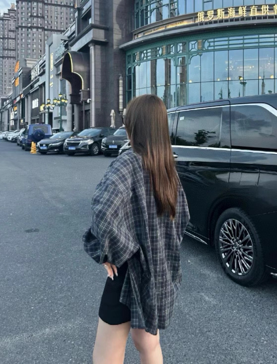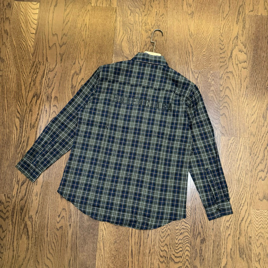 BALENCIAGA 巴黎世家24ss 后背字母印花绿格子色织情侣长袖衬衫