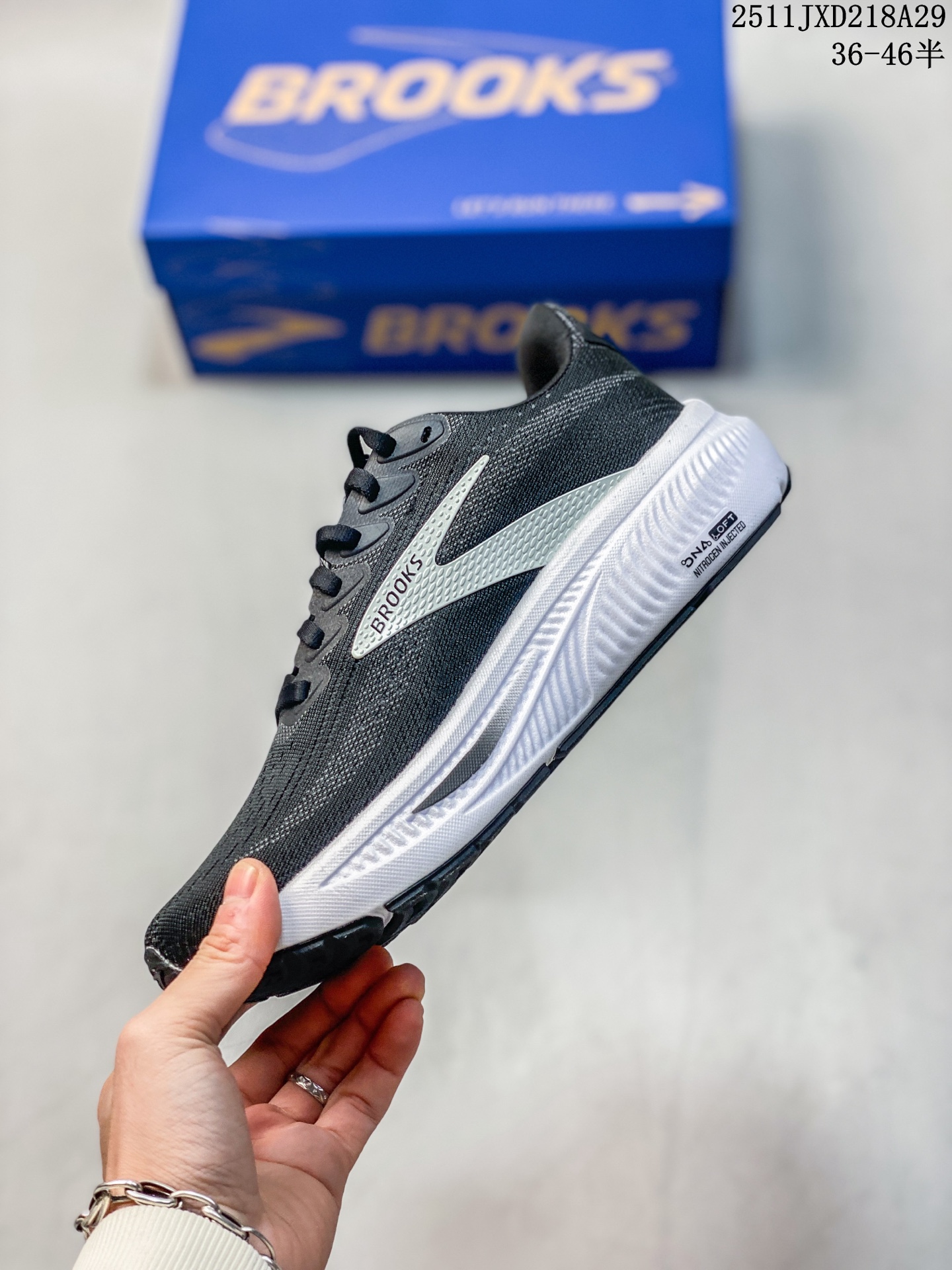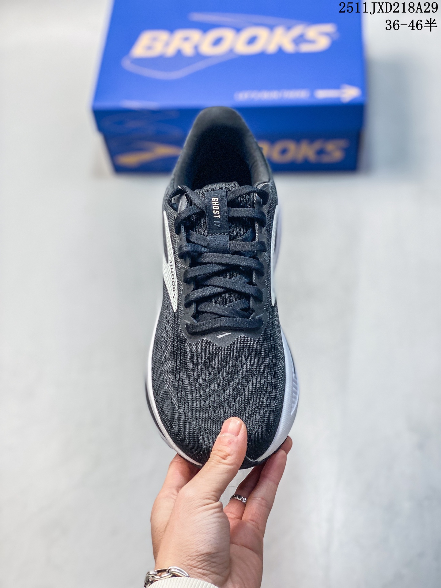 新品公司级 布鲁克斯 Brooks Ghost 幽灵 17 经典鞋款厚底增高运动老爹鞋 MAX 坐垫 搭载 DNA Loft V3 氮气超临界发泡中底 前掌厚度 26mm 后跟 36mm 配合 10mm 坡差设计 实现软弹平衡 氮气注入形成密闭气囊结构 缓震性能提升 30 能量回馈效率较前代提升 10 实测显示 80kg 跑者后跟触地可吸收 68 冲击力 前掌蹬伸时回弹速度提升 15 采用双层提花工程网布 外层高密度透气网孔快速排汗 内层弹性支撑框架增强包裹性 前掌加宽 5mm 楦型设计 搭配加厚记忆海绵鞋舌 宽脚跑者也能实现零磨合贴合 后跟 3D 模压泡棉与 TPU 稳定片形成双重锁定结构 复杂路况下稳定性可靠 适合 5 30 6 30 km 的慢跑配速 兼顾缓震与推进需求 外底含 30 再生聚酯纤维 鞋面采用生物基原料 提供标准楦和宽楦版本 满足不同足型需求 主打 全能缓震 特性 适合日常训练和长距离慢跑
