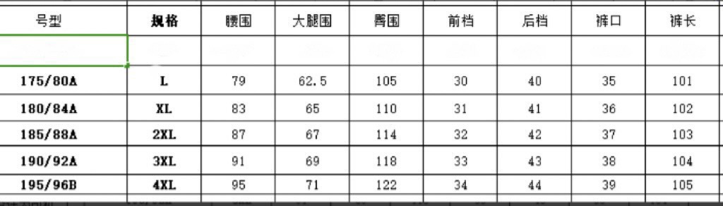 尺码 L 4XL