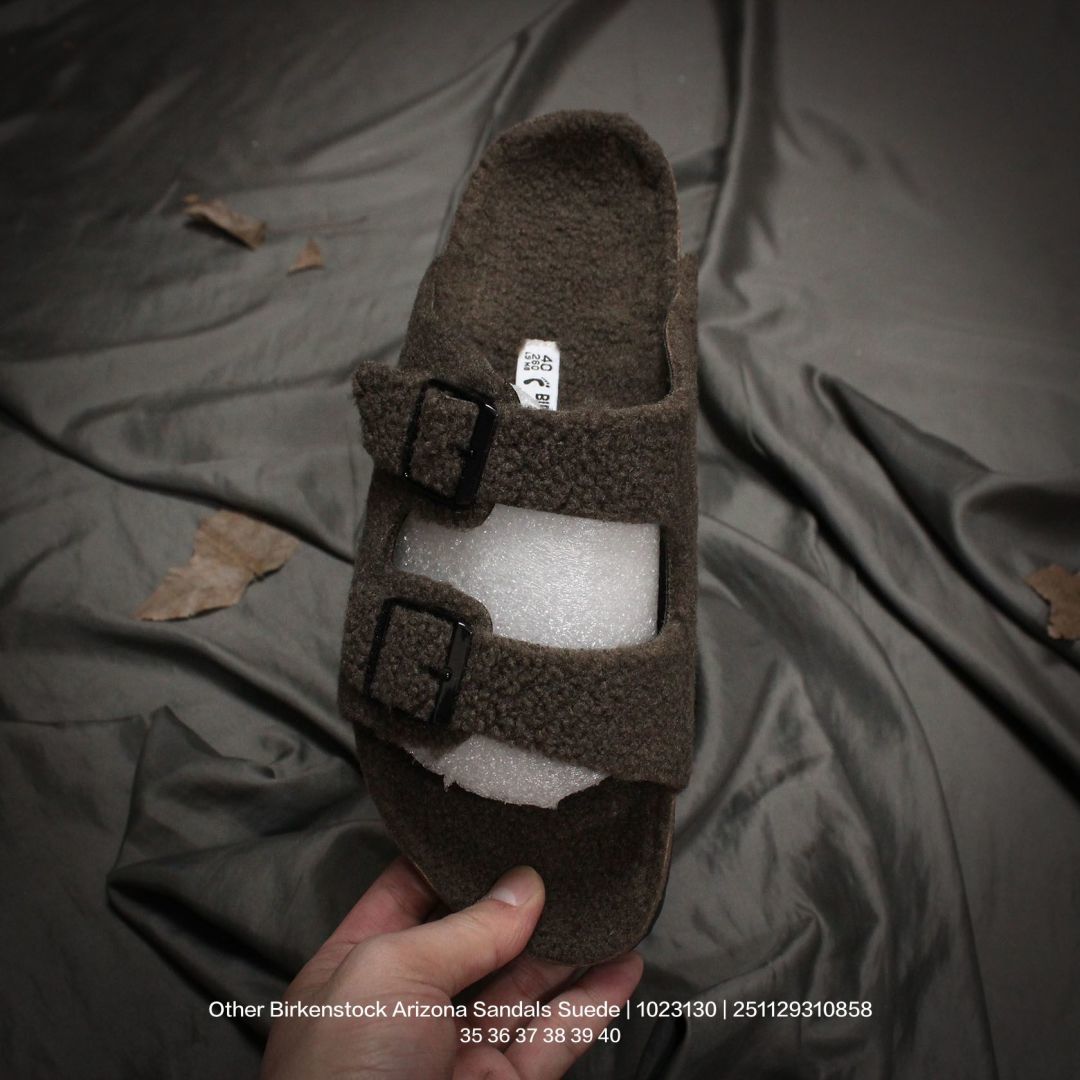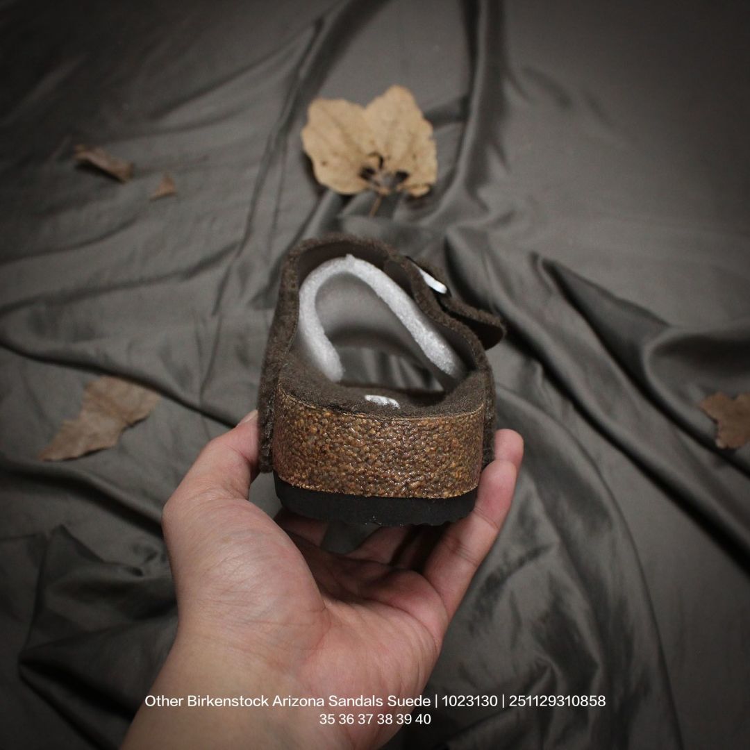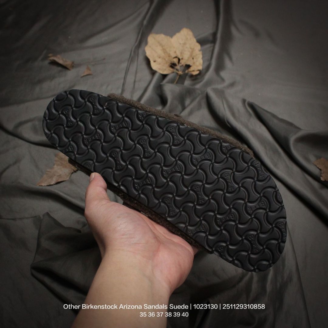 广东原产 升级原楦开发版型 采用柔软牛皮绒面革里衬皮毛一体鞋面材质 中底鞋床搭载波状外形缓震软木橡胶 外置EVA轻量片装外底舒适又时髦 潮人都在穿 德国百年知名鞋履品牌 博肯Birkenstock Arizona Sandals Suede 亚利桑那系列双搭扣可调节牛皮绒面革复古软木底休闲凉拖鞋 1023130