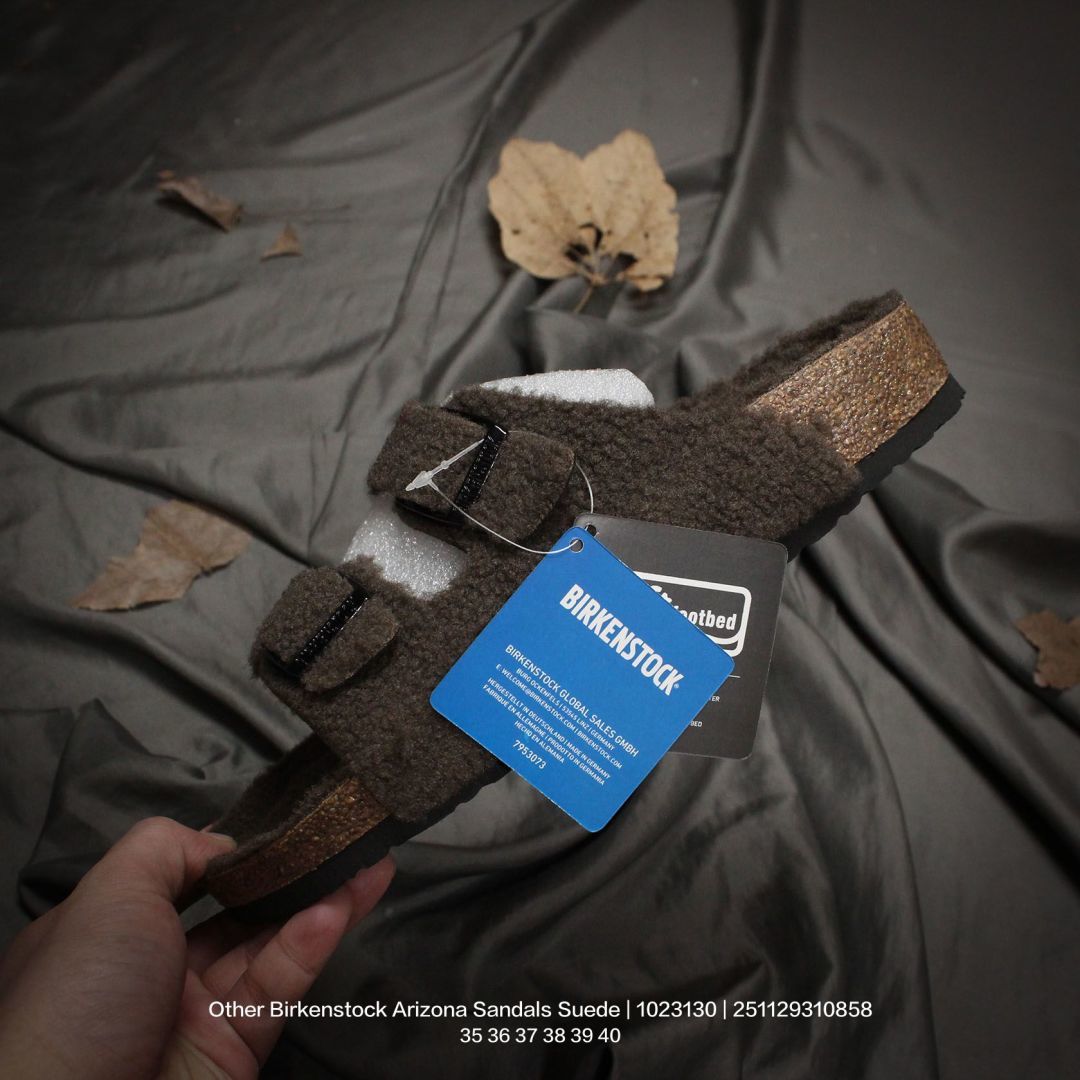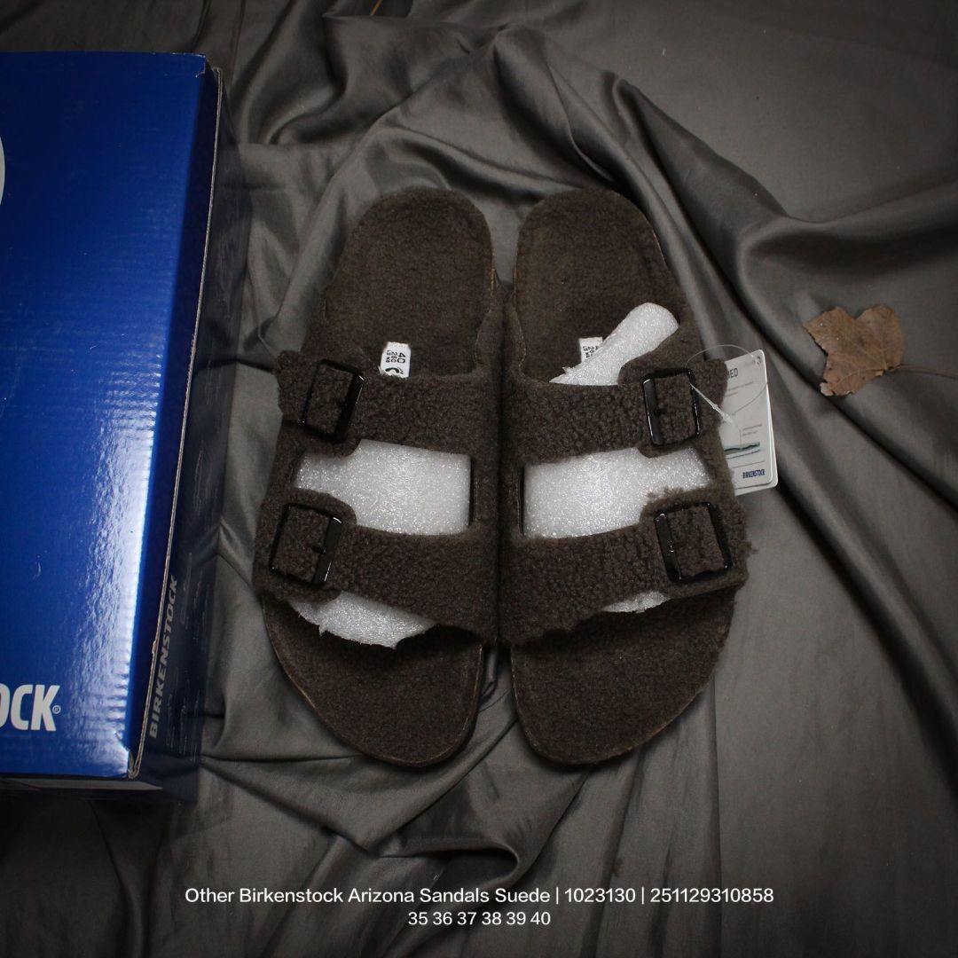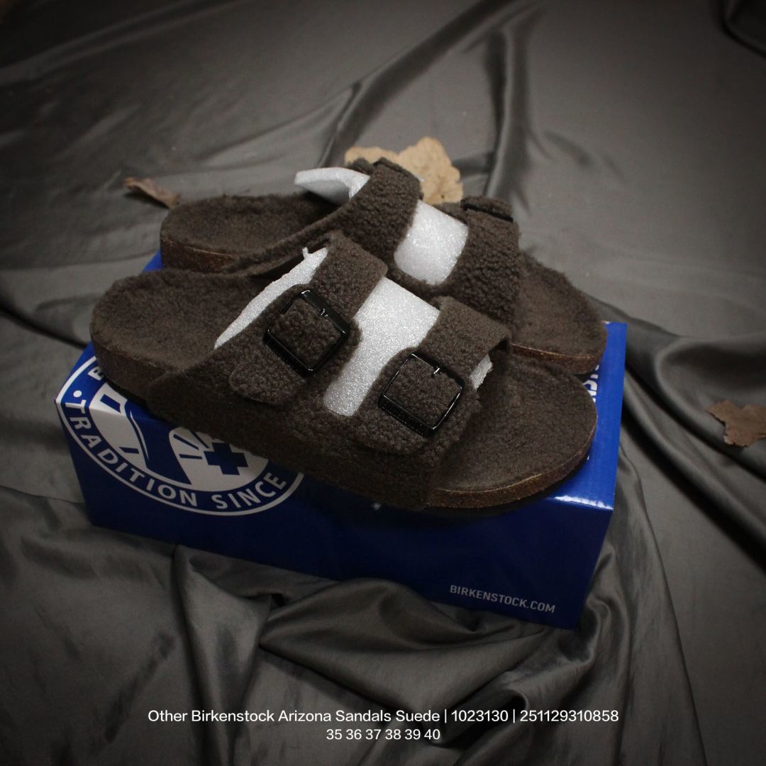 广东原产 升级原楦开发版型 采用柔软牛皮绒面革里衬皮毛一体鞋面材质 中底鞋床搭载波状外形缓震软木橡胶 外置EVA轻量片装外底舒适又时髦 潮人都在穿 德国百年知名鞋履品牌 博肯Birkenstock Arizona Sandals Suede 亚利桑那系列双搭扣可调节牛皮绒面革复古软木底休闲凉拖鞋 1023130