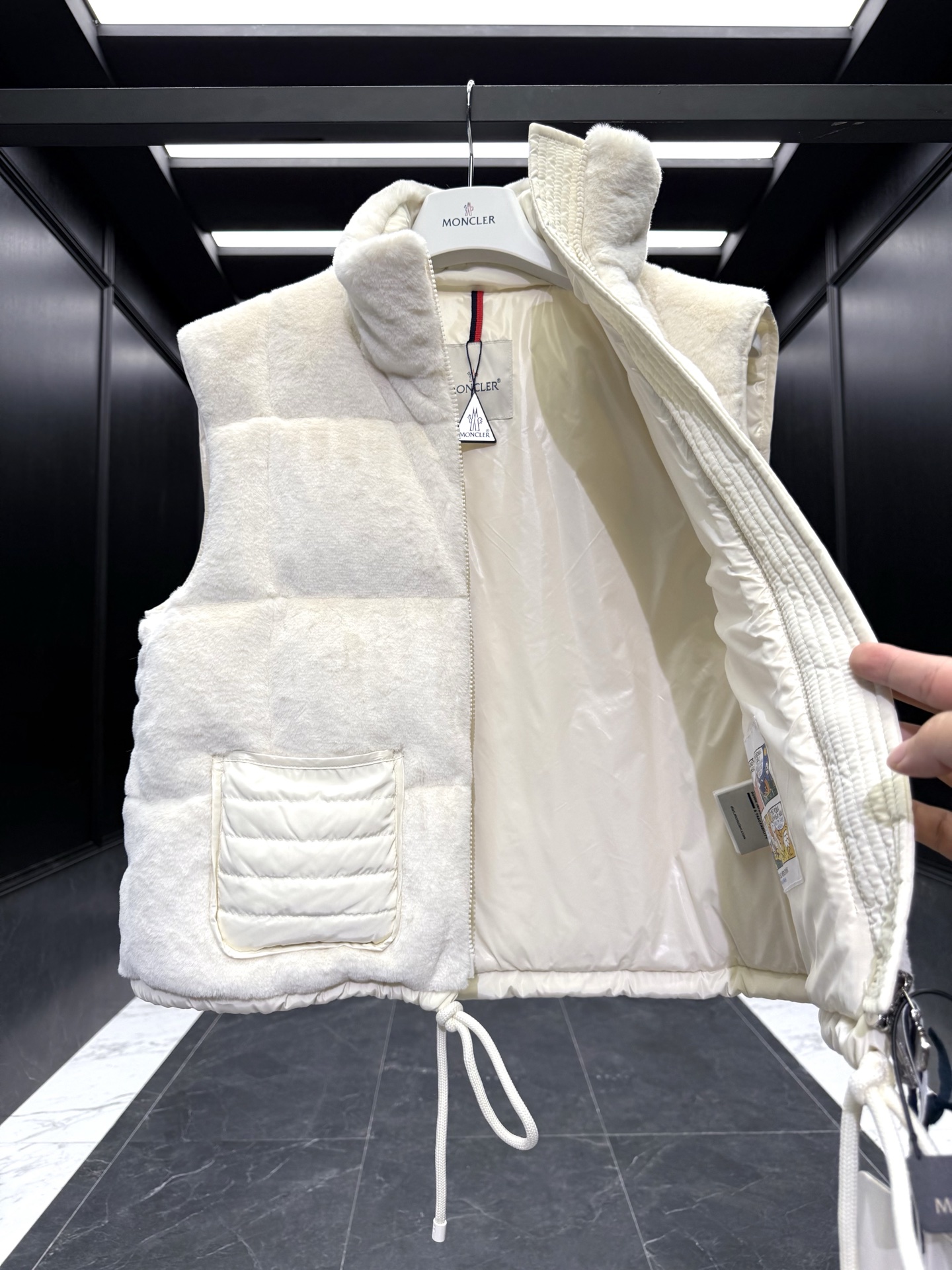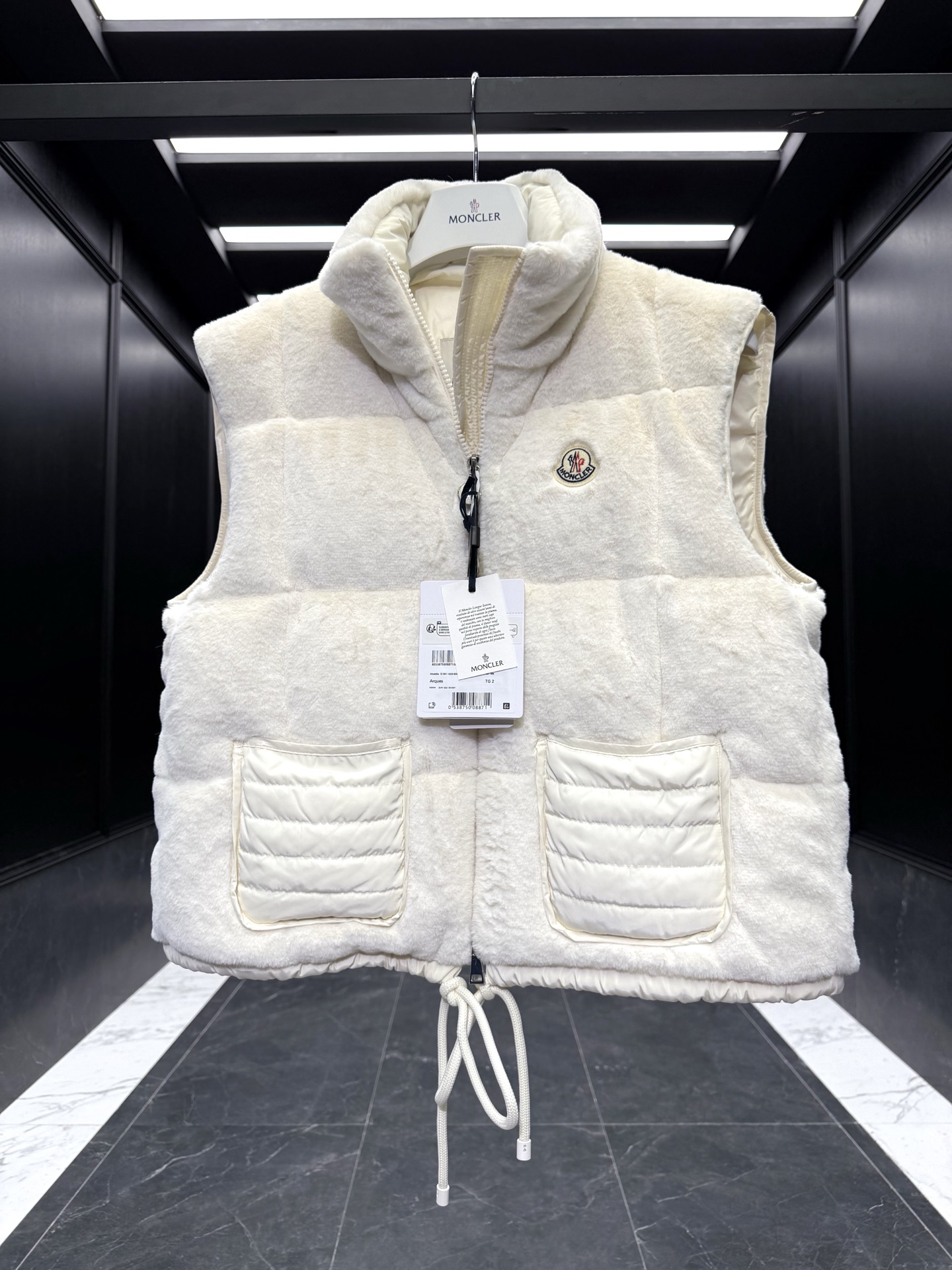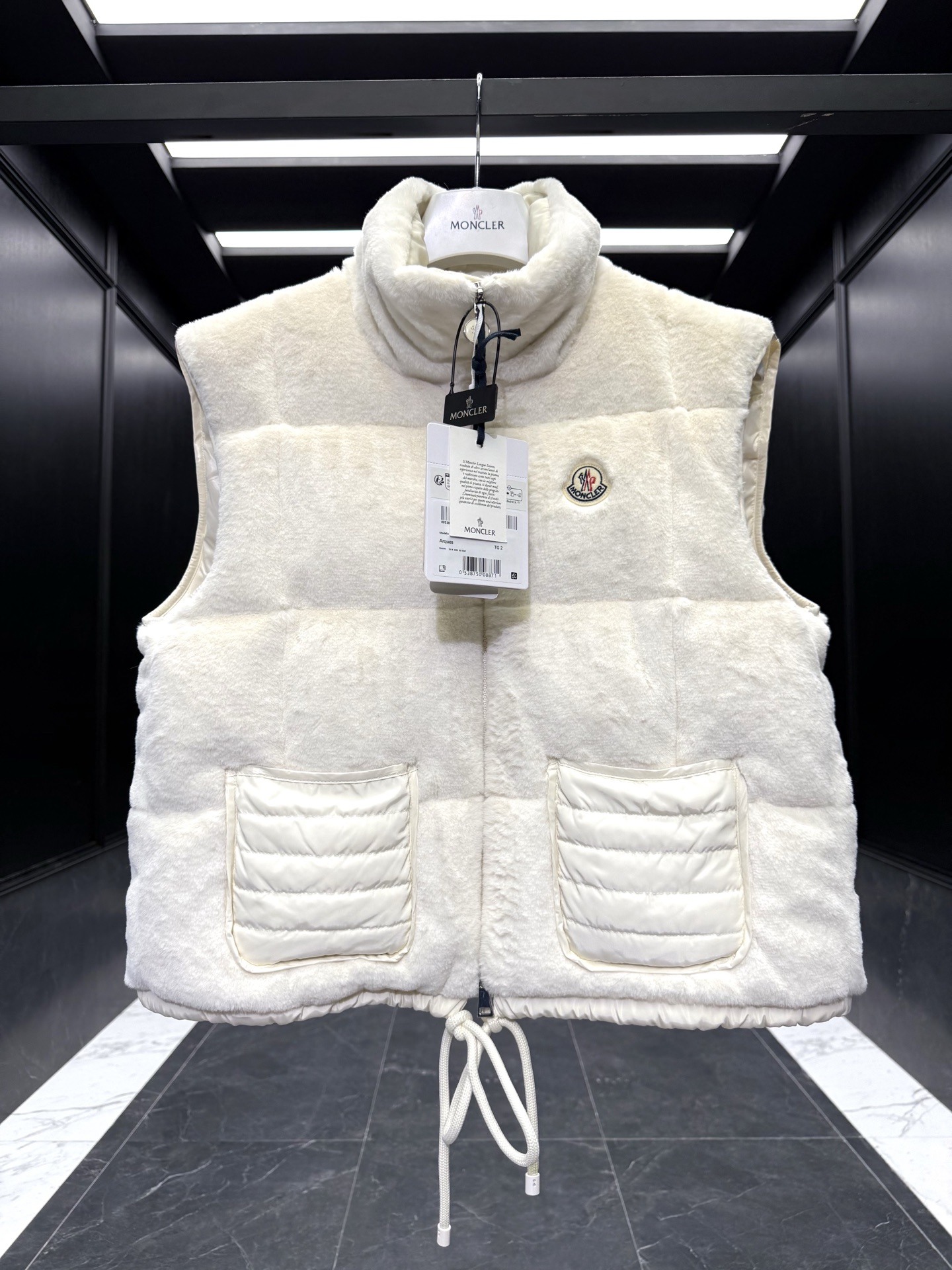 特级羽绒 Moncler Arques女士羽绒马甲 Arques女士羽绒马甲采用泰迪绒质地柔软面料制成 致敬风靡整个60年代的俏皮纹理