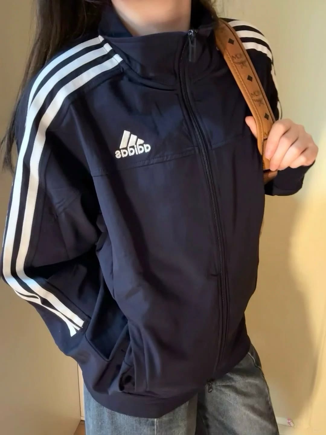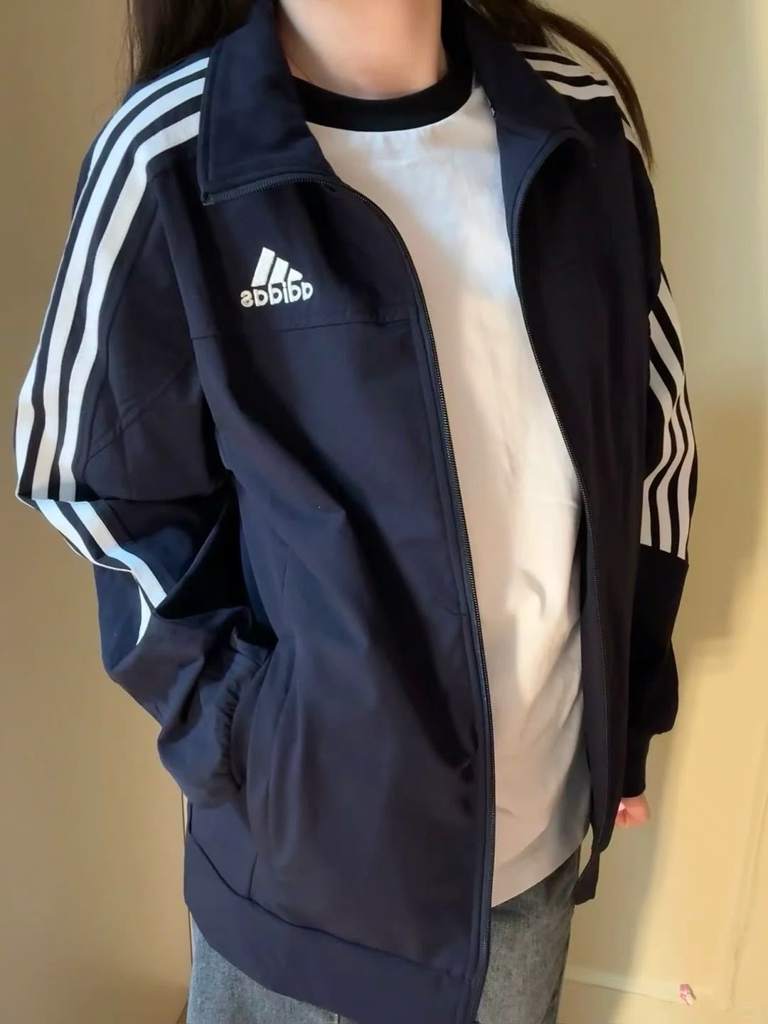 1 设计亮点 经典的三条杠贯穿衣袖 简洁又醒目 作为品牌标志性元素 彰显独特的运动时尚态度 无论运动还是日常出街都百搭不挑人 立领设计利落有型 不仅修饰颈部线条 更增添一份随性与干练 轻松提升整体造型感