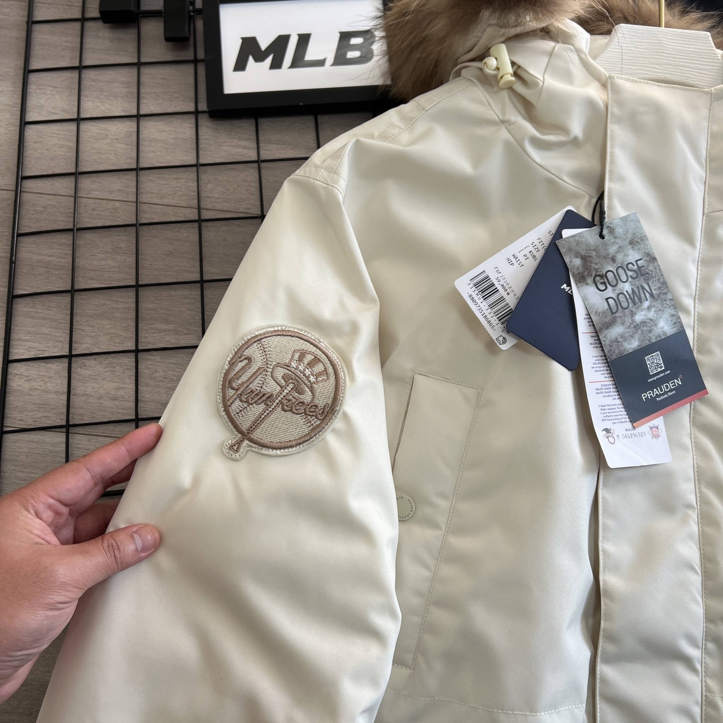305195176 - 细节图 MLB 洋基队魔法棒大标带毛字母连帽工装中长款羽绒 401032