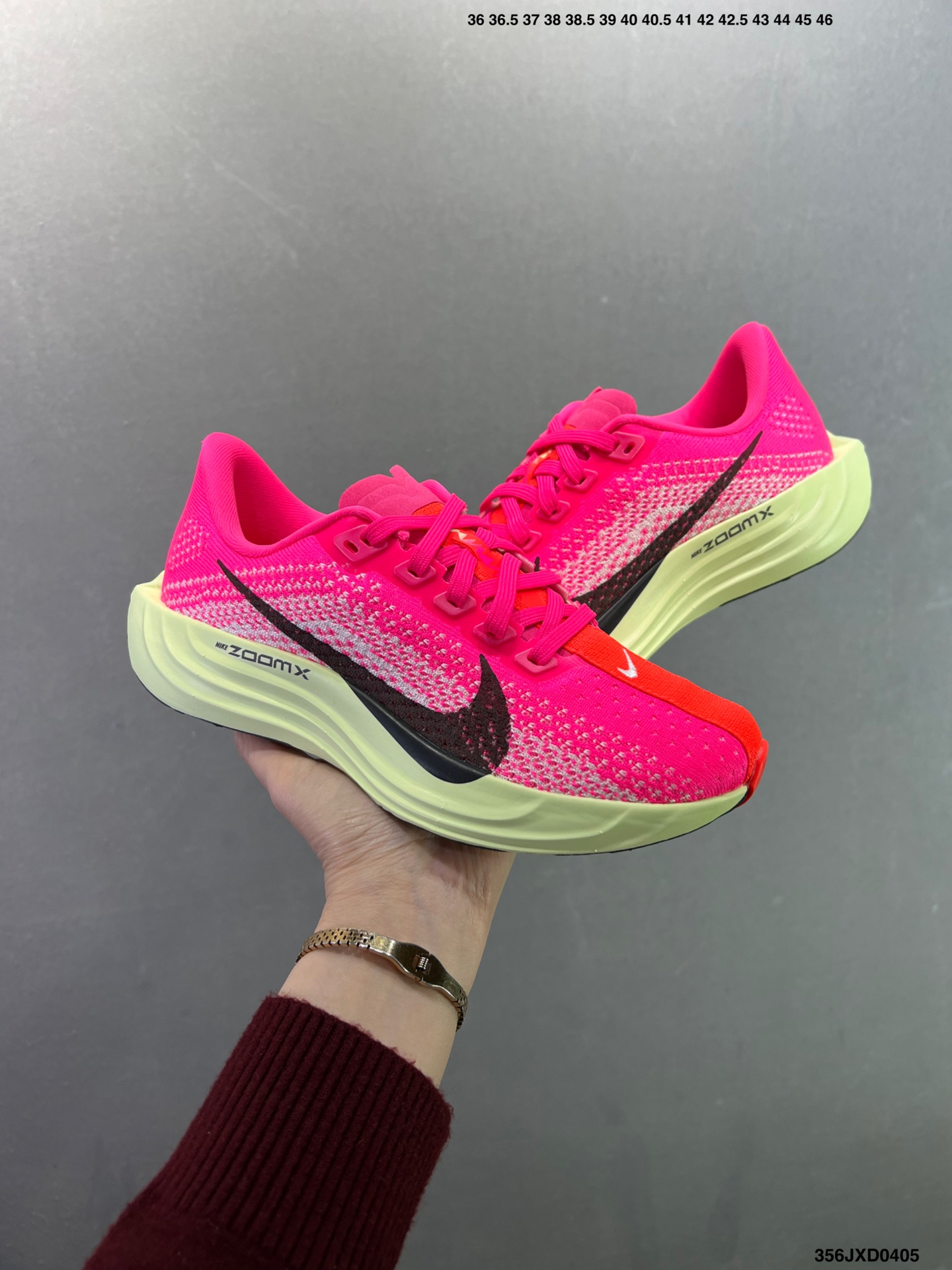 升级原楦原纸版数据开发 采用弹性 Flyknit 飞织鞋面材质 内里嵌入定型海绵 全掌型 ZoomX 泡绵中底 外置防滑耐磨橡胶底片