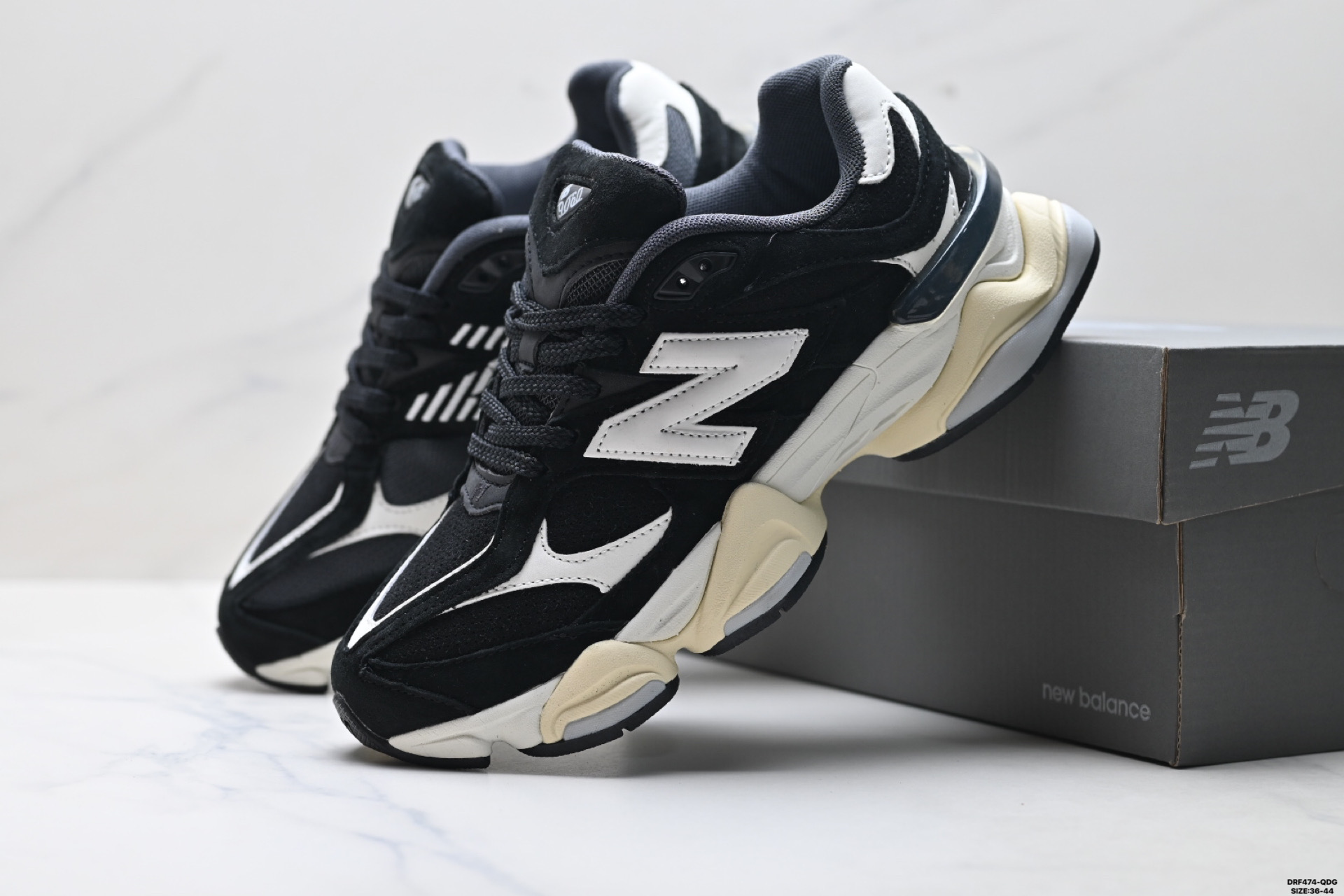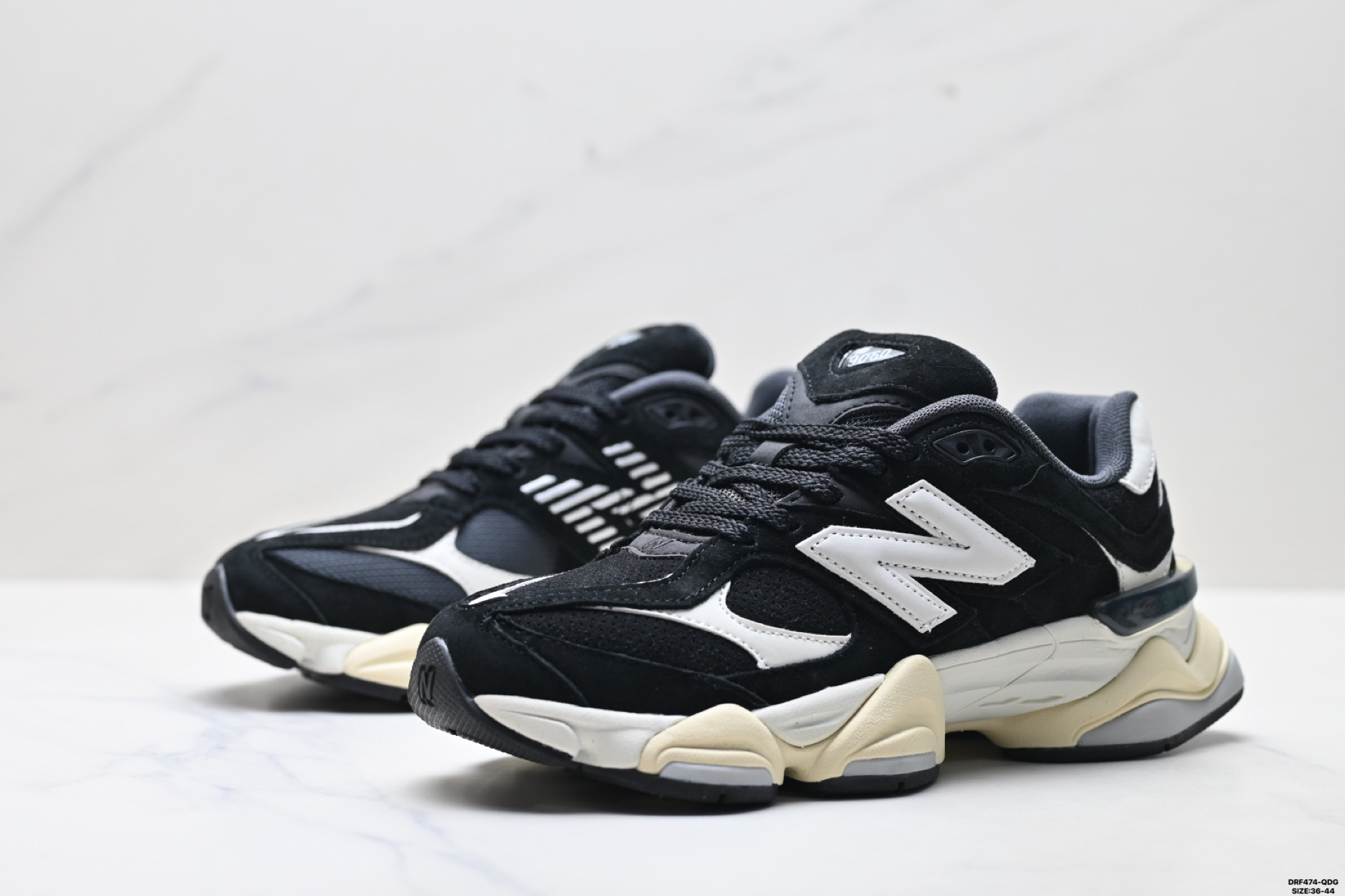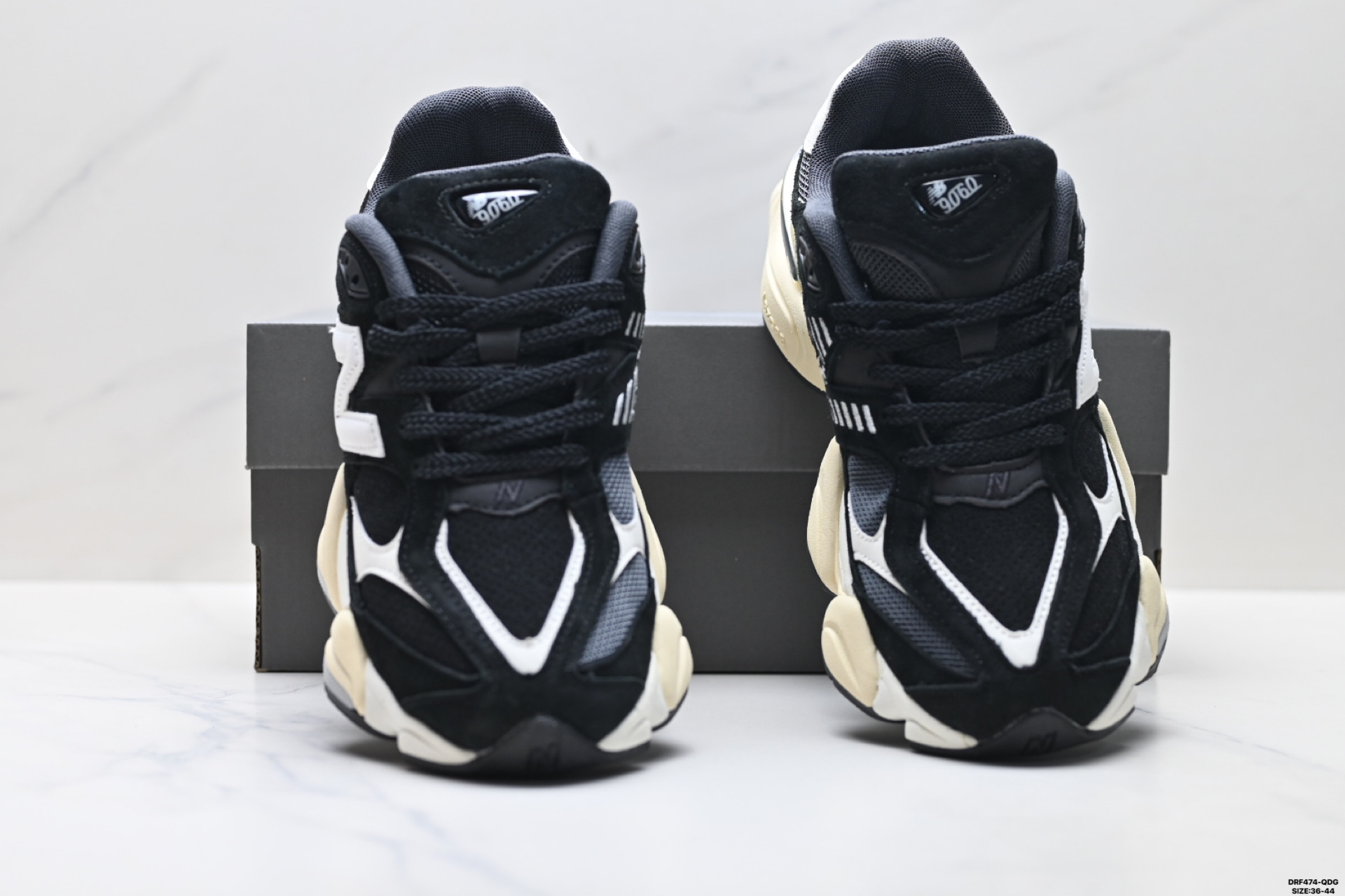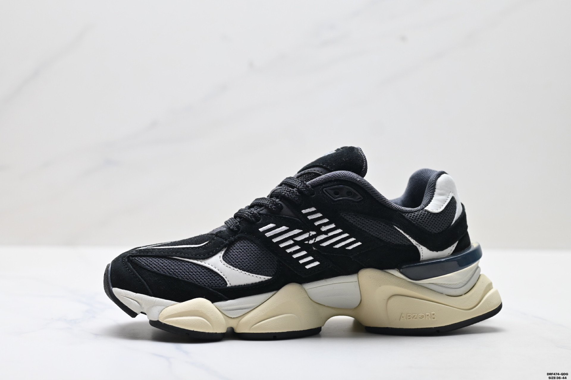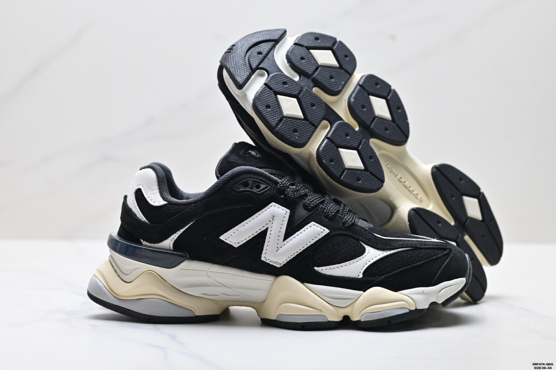 特价 公司级New Balance 9060系列 新百伦 复古休闲运动慢跑鞋 鞋面大身由空间双格及磨砂鞋面拼接而生 采用大面积网眼以及麂皮材质覆盖鞋身 还原经典气质 搭载ABZORB避震科技 由泡沫聚酯制成 上脚可以有效减少由鞋底反弹对身体及双腿的冲击力 货号 U9060OUT Size 36 45 ID DRF474 QDG
