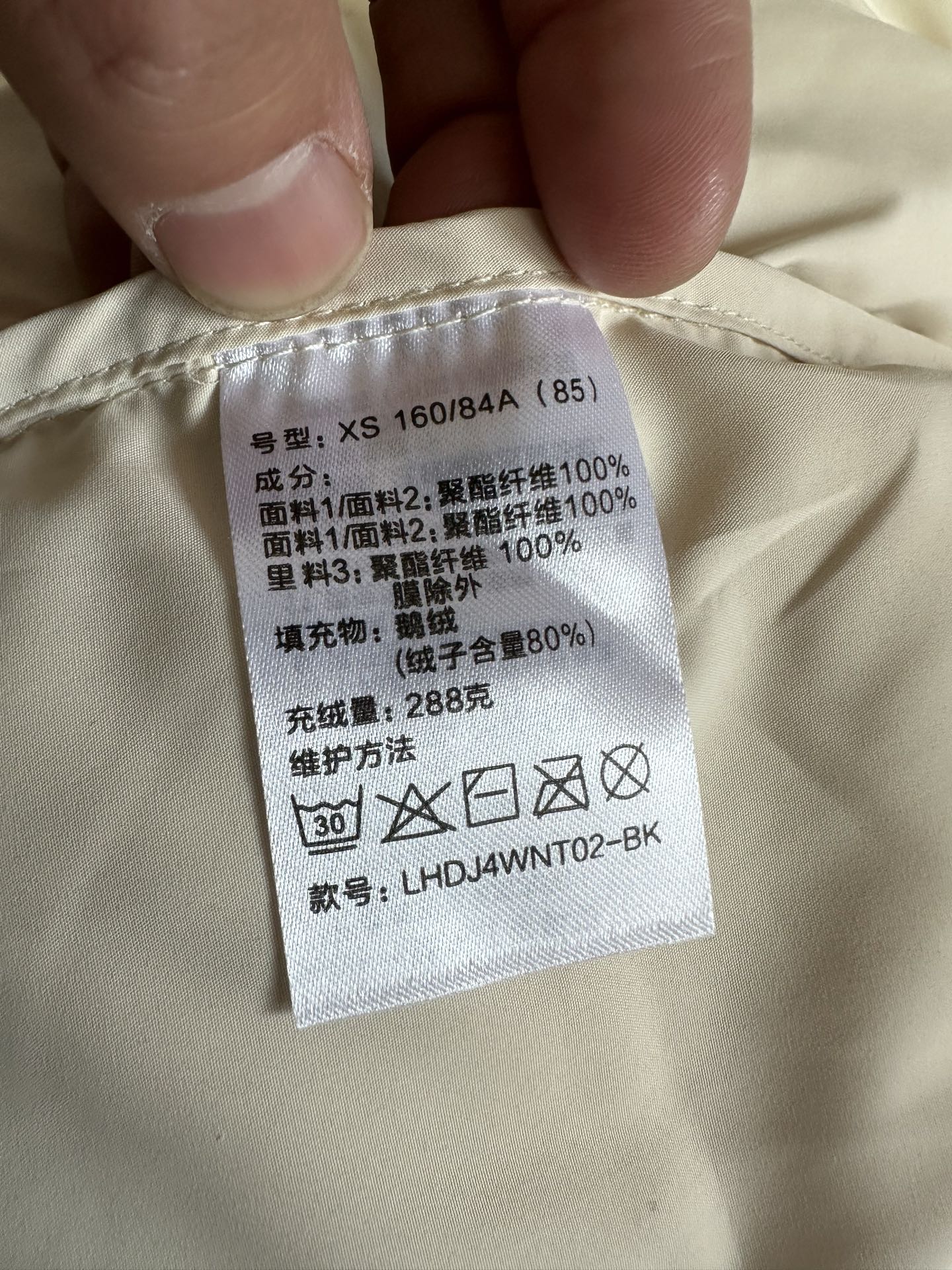 XS胸围115肩宽47衣长111袖长59