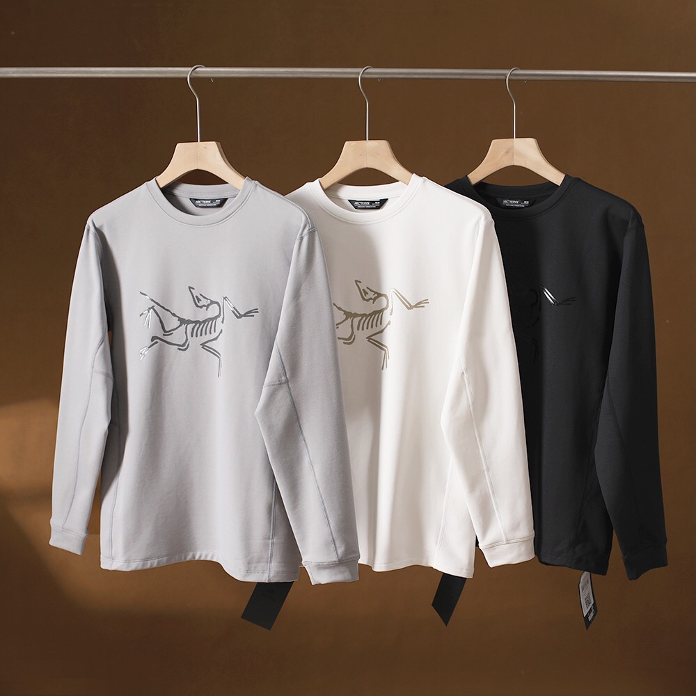 2025官网同款ARC TERYX 始祖鸟 KRAGG SL COTTON BIRD TILE 男女同款速干薄款加绒长袖T恤