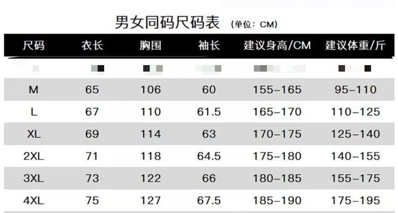 尺码 M 4X