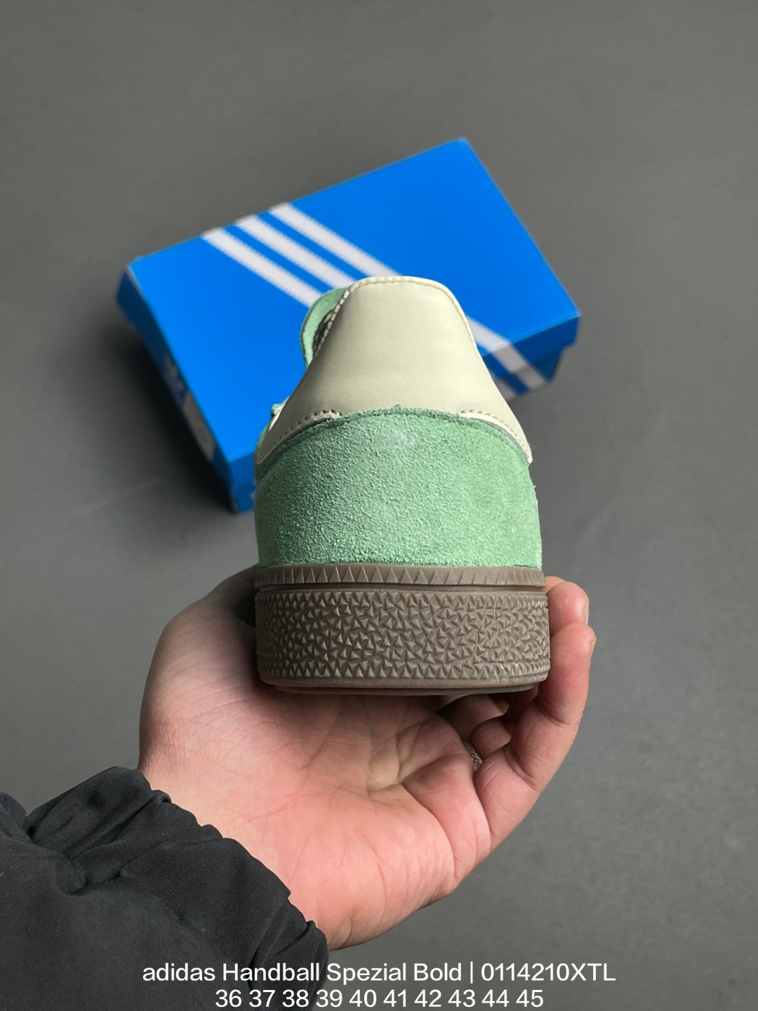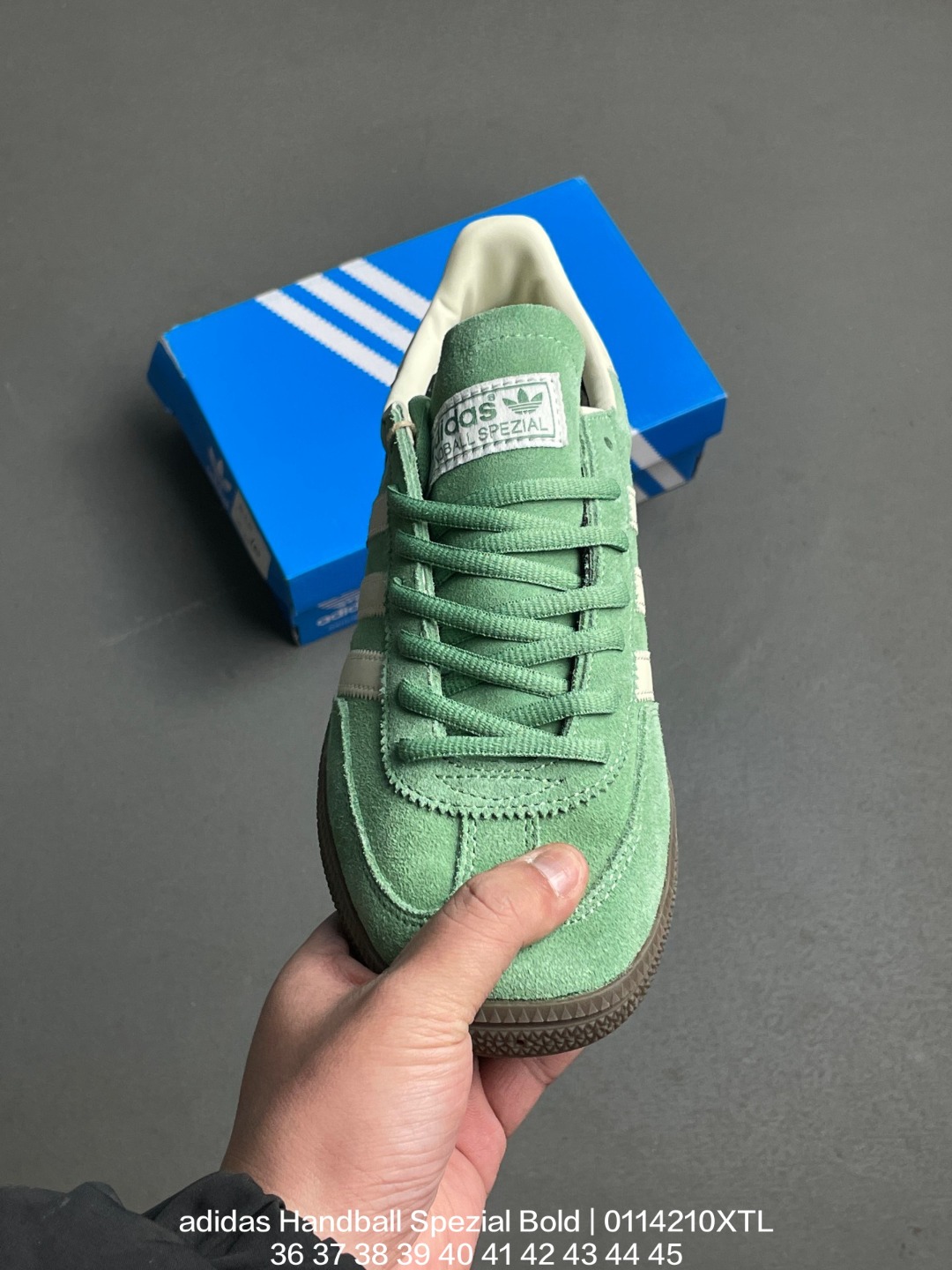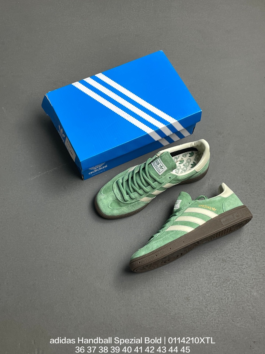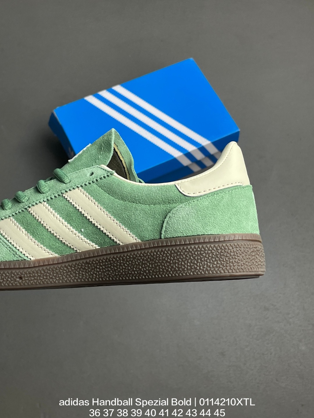 Adidas 阿迪达斯 采用猪巴革组合纤维革鞋面材质 外置加厚橡胶大底全新三层松糕底 阿迪达斯adidas Handball Spezial Bold 手球松糕系列低帮复古百搭厚底增高低帮休闲运动板鞋
