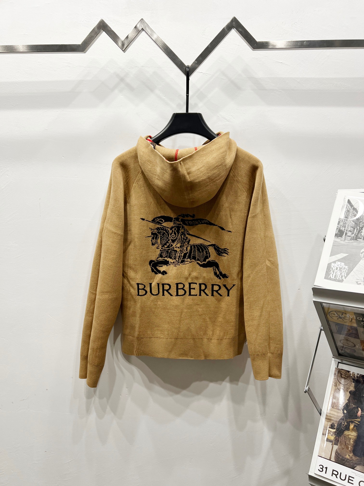 Burberry 巴宝莉经典格纹双面穿羊毛背后战马提花开衫毛衣外套