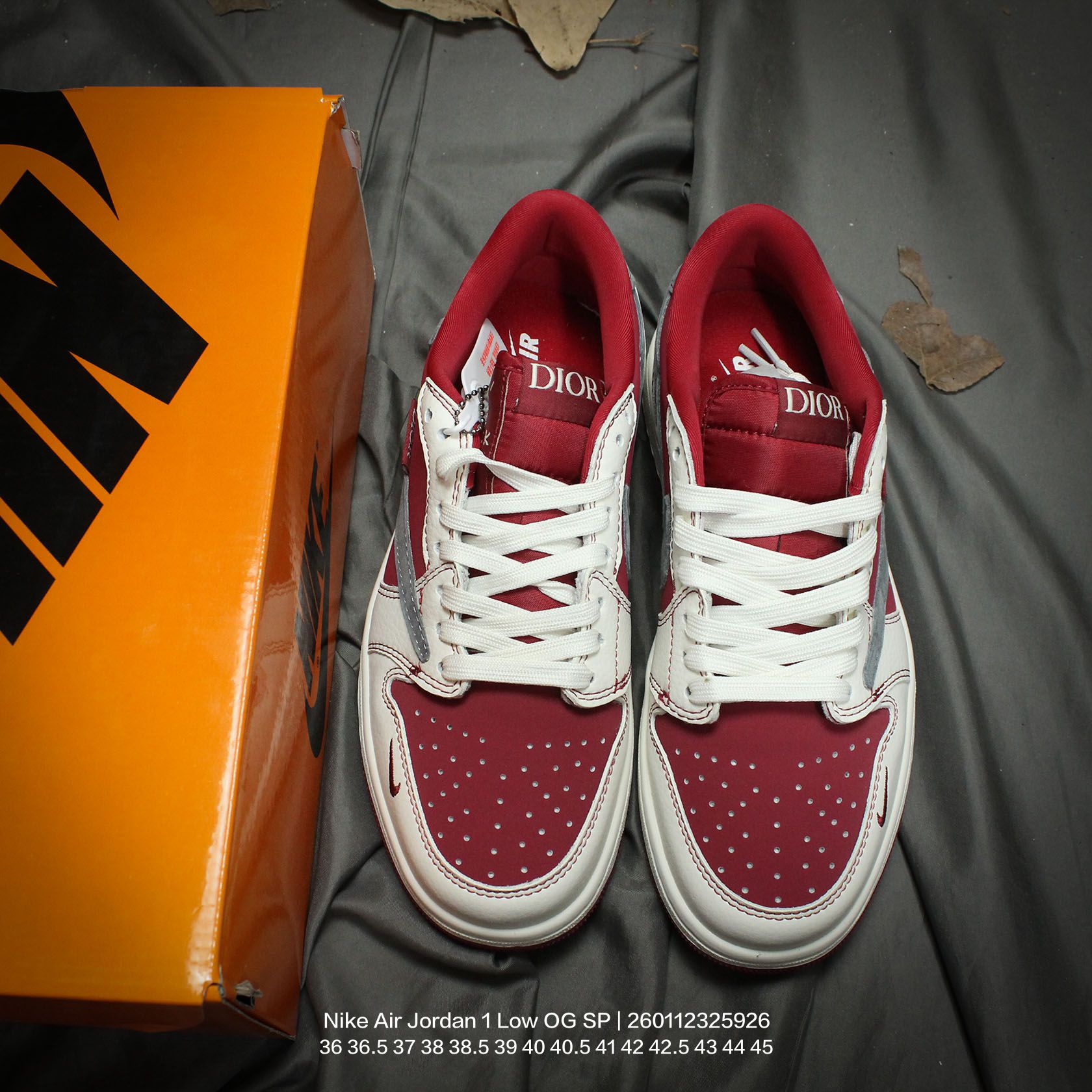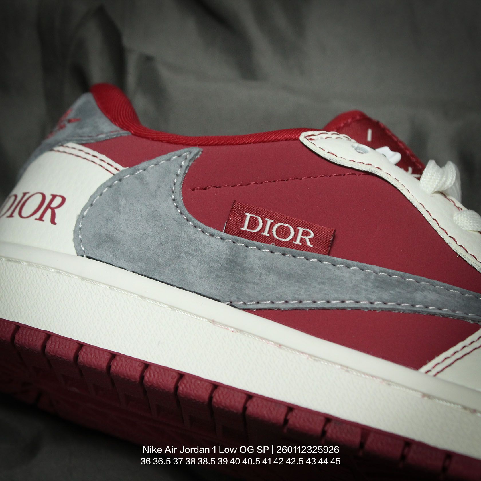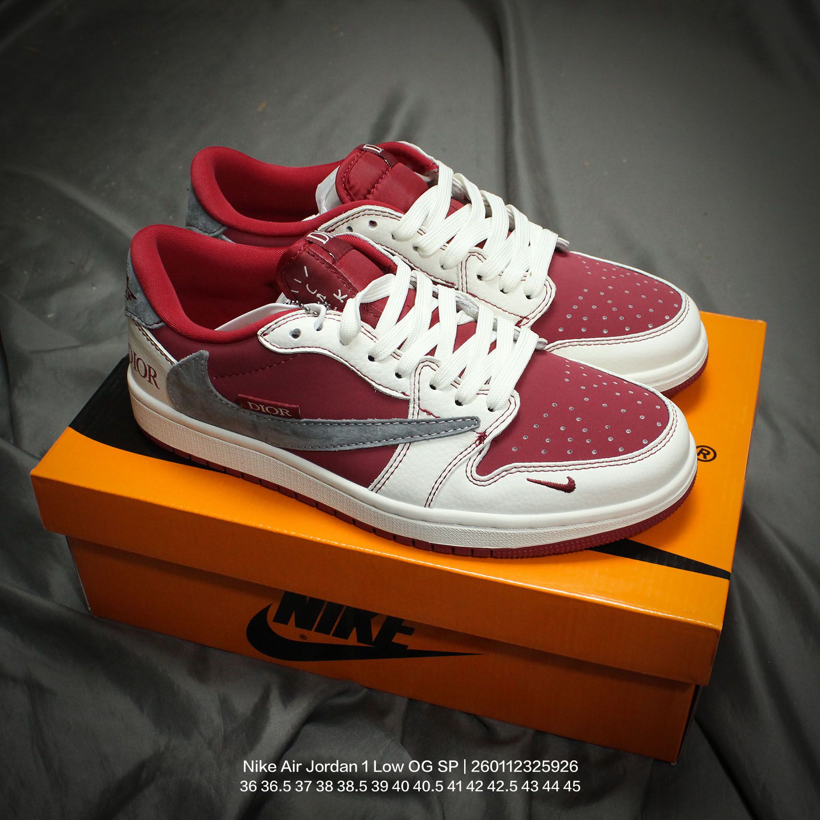 Jordan 乔丹 男女鞋真标半码制 采用软质牛剖革组合提花帆布鞋面材质 缜密拉帮中底布 鞋垫嵌EVA缓震物料及背胶 内置气垫及耐磨橡胶大底当红嘻哈歌手特拉维斯 斯科特定制联乘法国高奢时装品牌 迪奥 Dior x Travis Scott x Nike Air Jordan 1 Low OG SP Christian Dior AJ1乔丹一代经典低帮文化百搭休闲运动篮球鞋