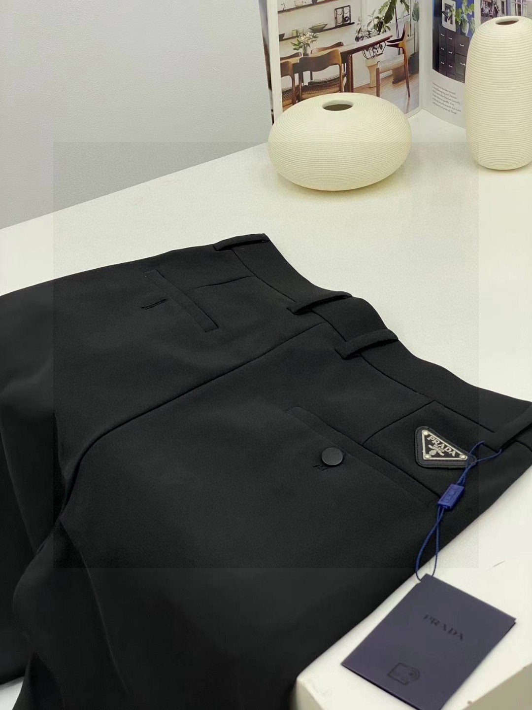 这款直筒版轻质弹力长裤以创新面料和生产技术对传统廓形加以重释 凸显Prada的工艺和现代内涵