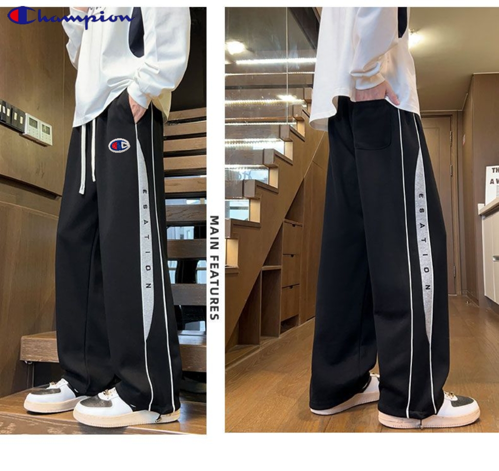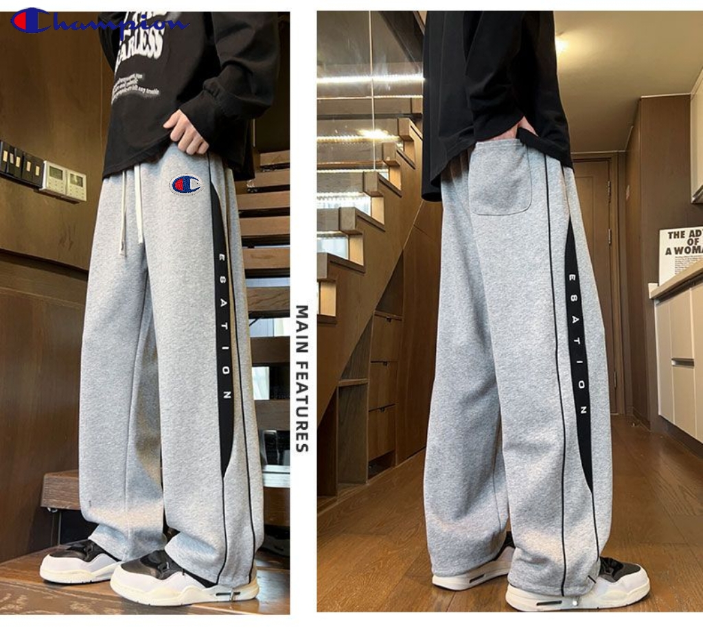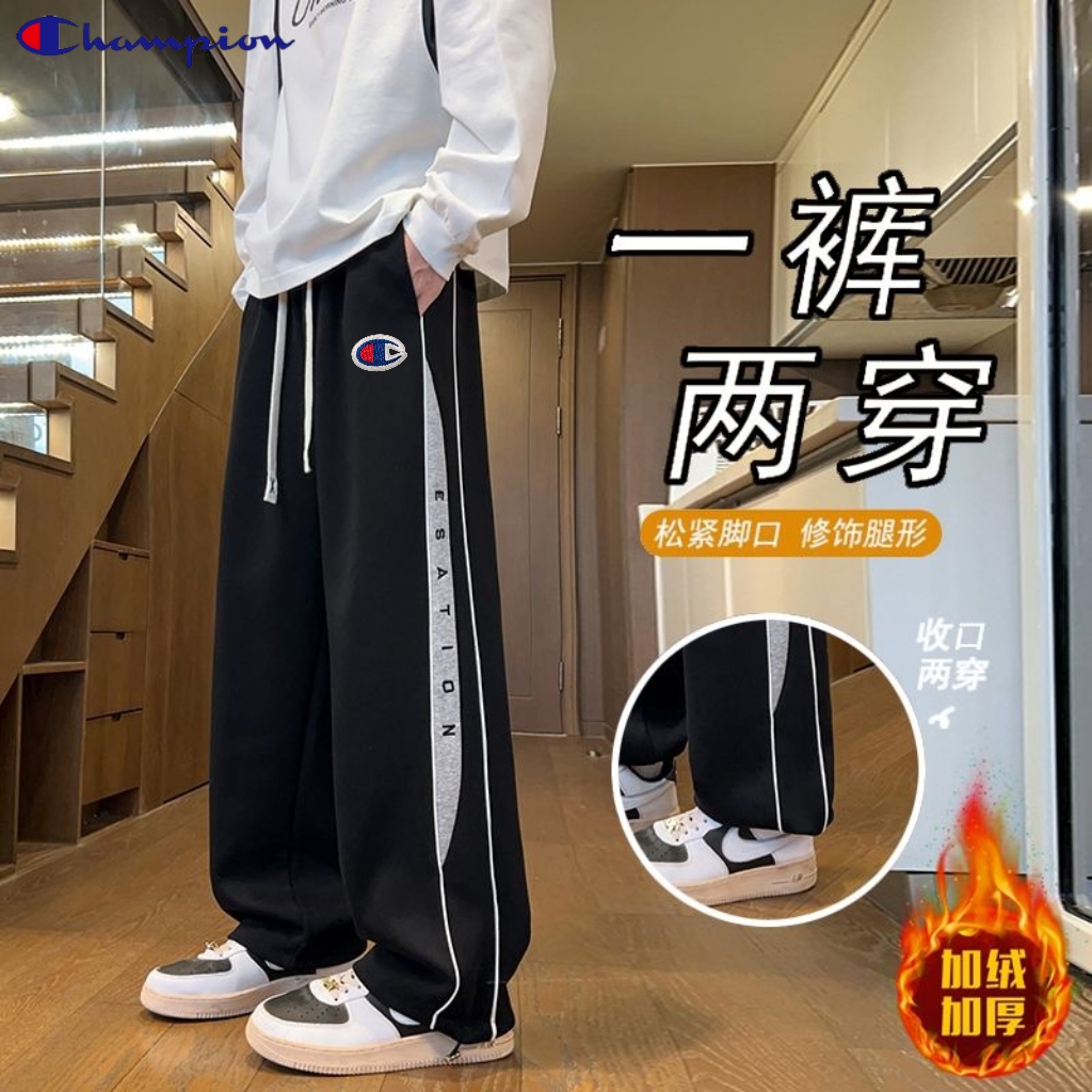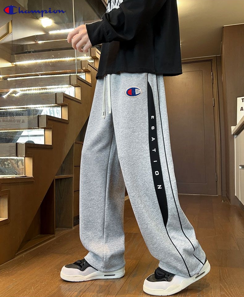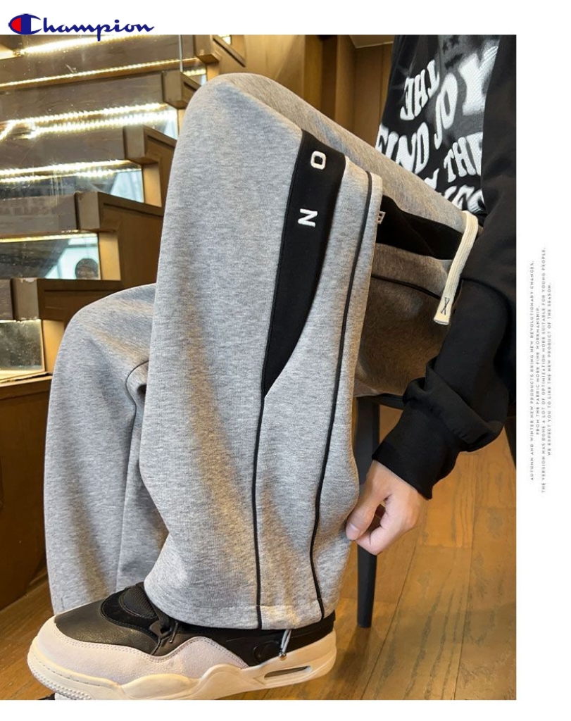 冠军Champion冬季新款海外版26ss新款两色高品质串标相拼加绒加厚休闲运动裤 卫裤直筒裤 裤子版型宽松 细节完美 全棉针织加绒加厚面料耐磨耐脏 立体裁剪宽松版型 进口机器印花反复水洗不会开裂脱落 男女同款情侣款 颜色 浅灰色 黑色 尺码 M 3XL