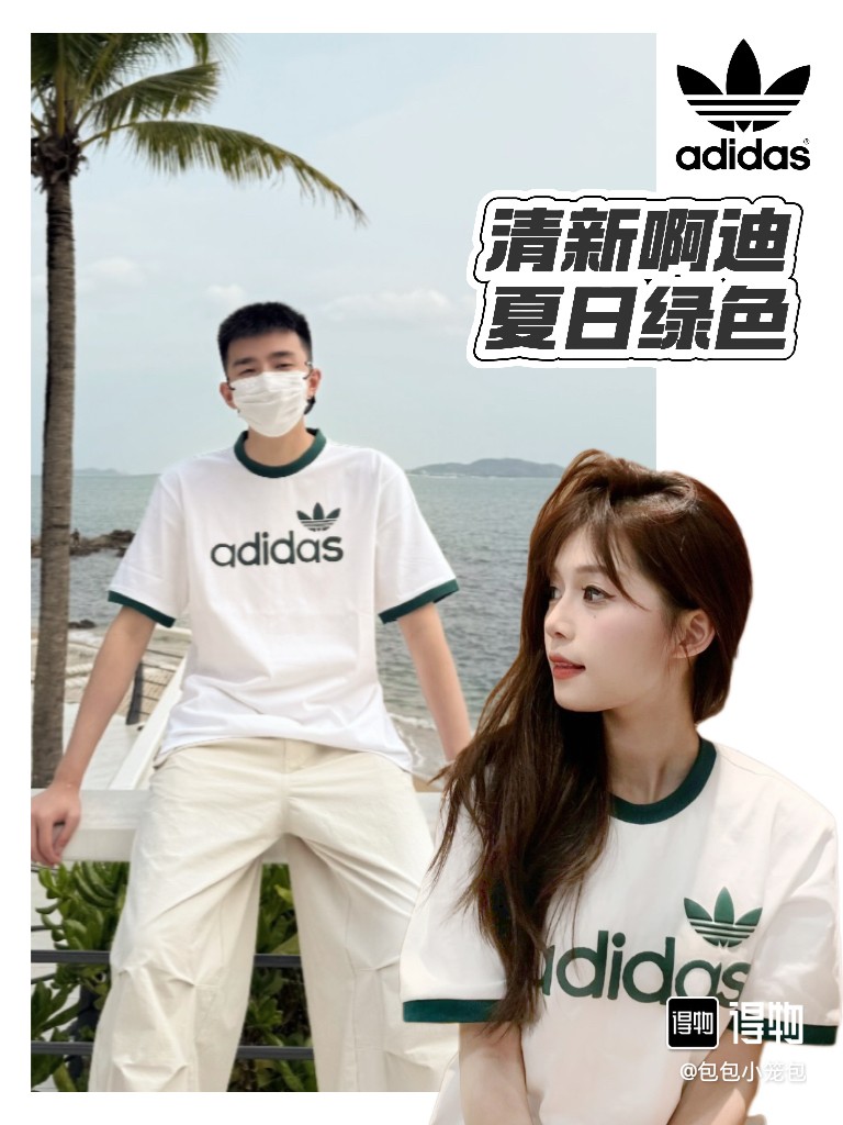 球王 梅西同款 𝗔𝗱𝗶𝗱𝗮𝘀三叶草字母发泡情侣短袖 元气满满的配色