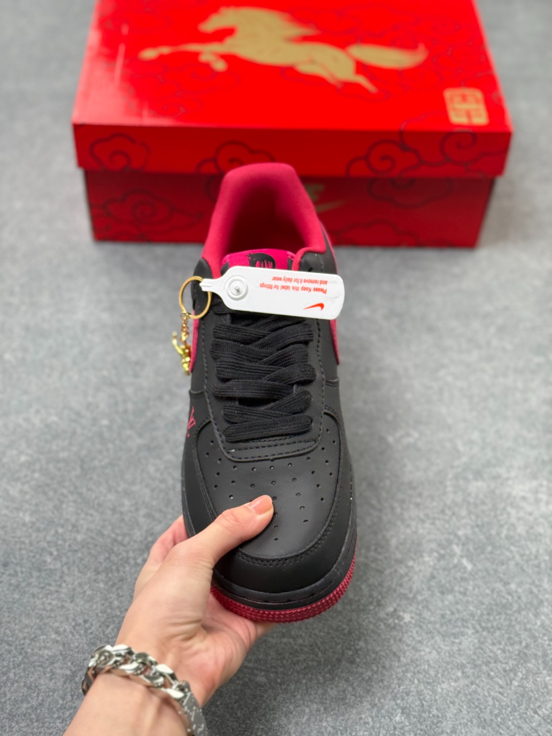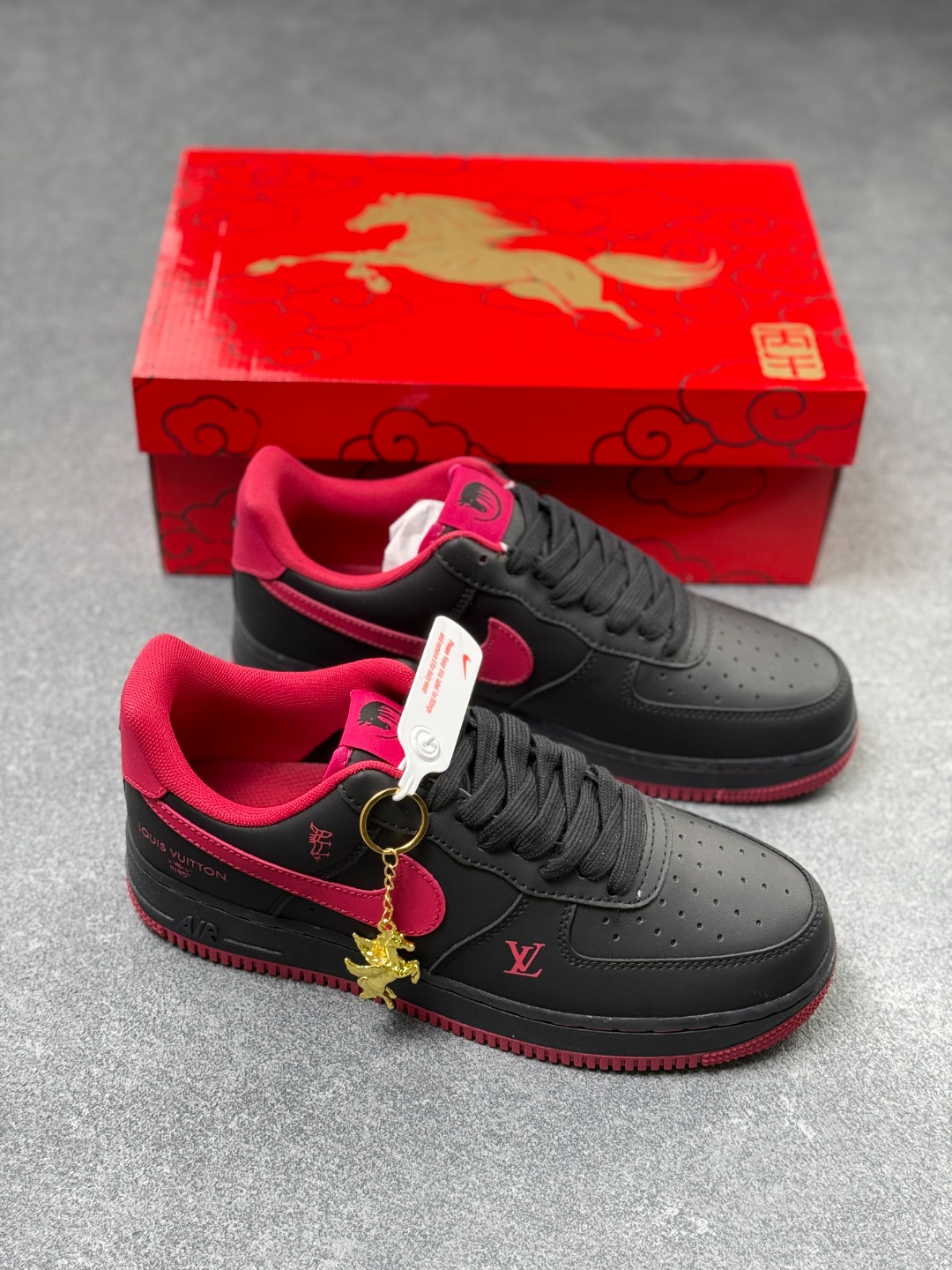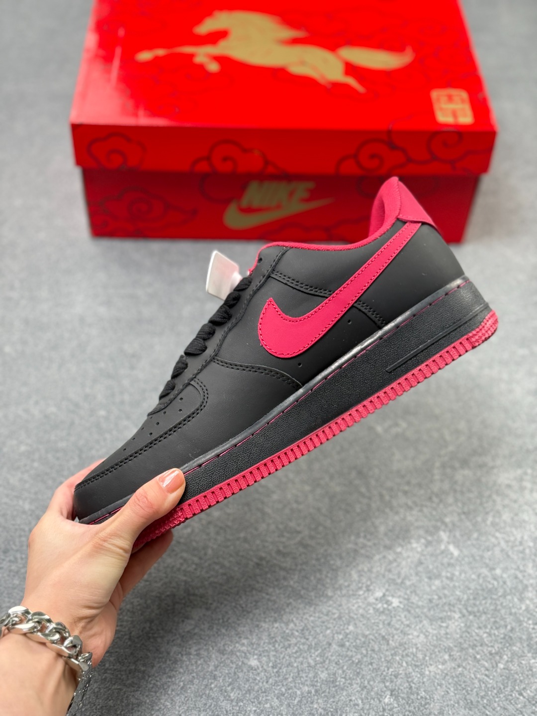 海外限量发售 公司级NIlke Air Force1 07Low 马年限定 墨黑玫红 空军一号低帮运动鞋休闲鞋头层皮折边针车 工艺难度大原楦头原纸板 高端定制鞋盒原厂鞋底超高清洁度细节完美货号 FV3694 102