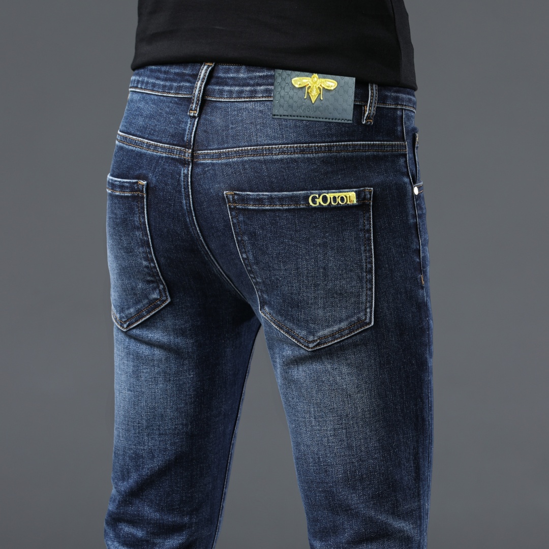 GOUOI小蜜蜂 款号 K8209款 GOUOI牛仔裤男时尚弹力修身小脚2024秋季新款水洗男装中腰长裤子 28 38码 有35码