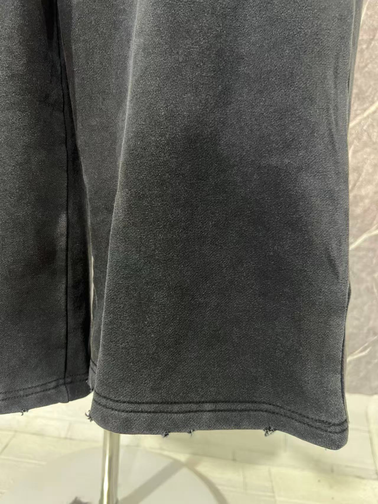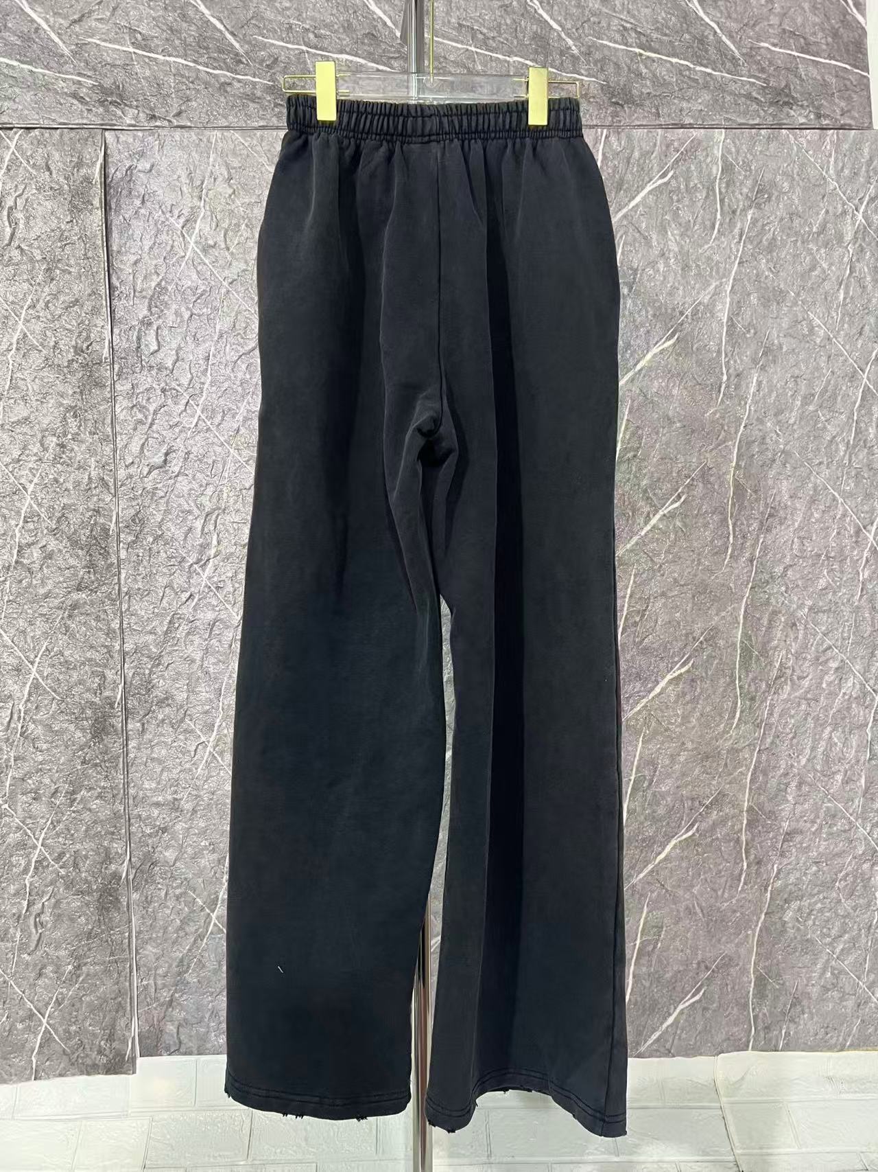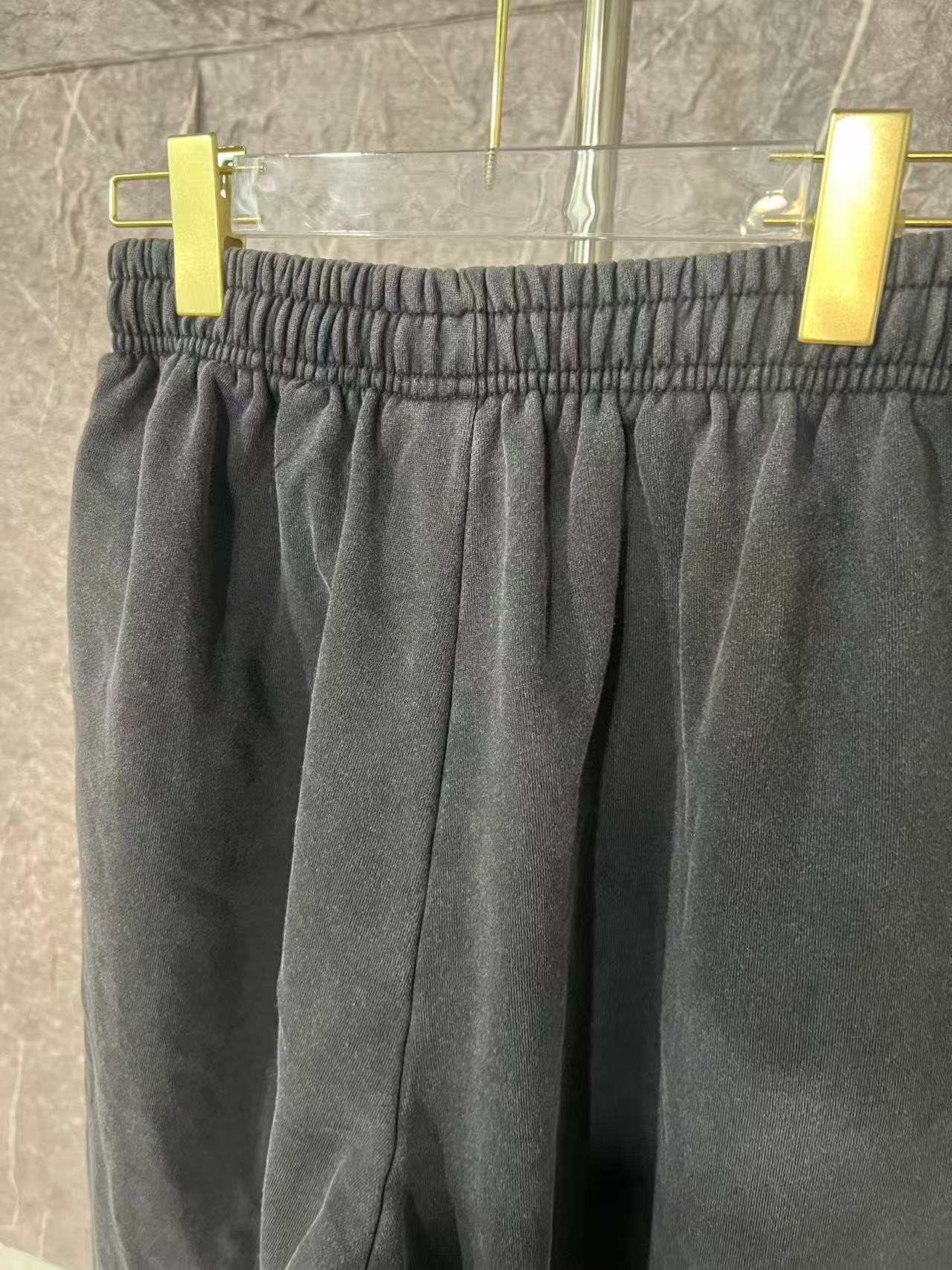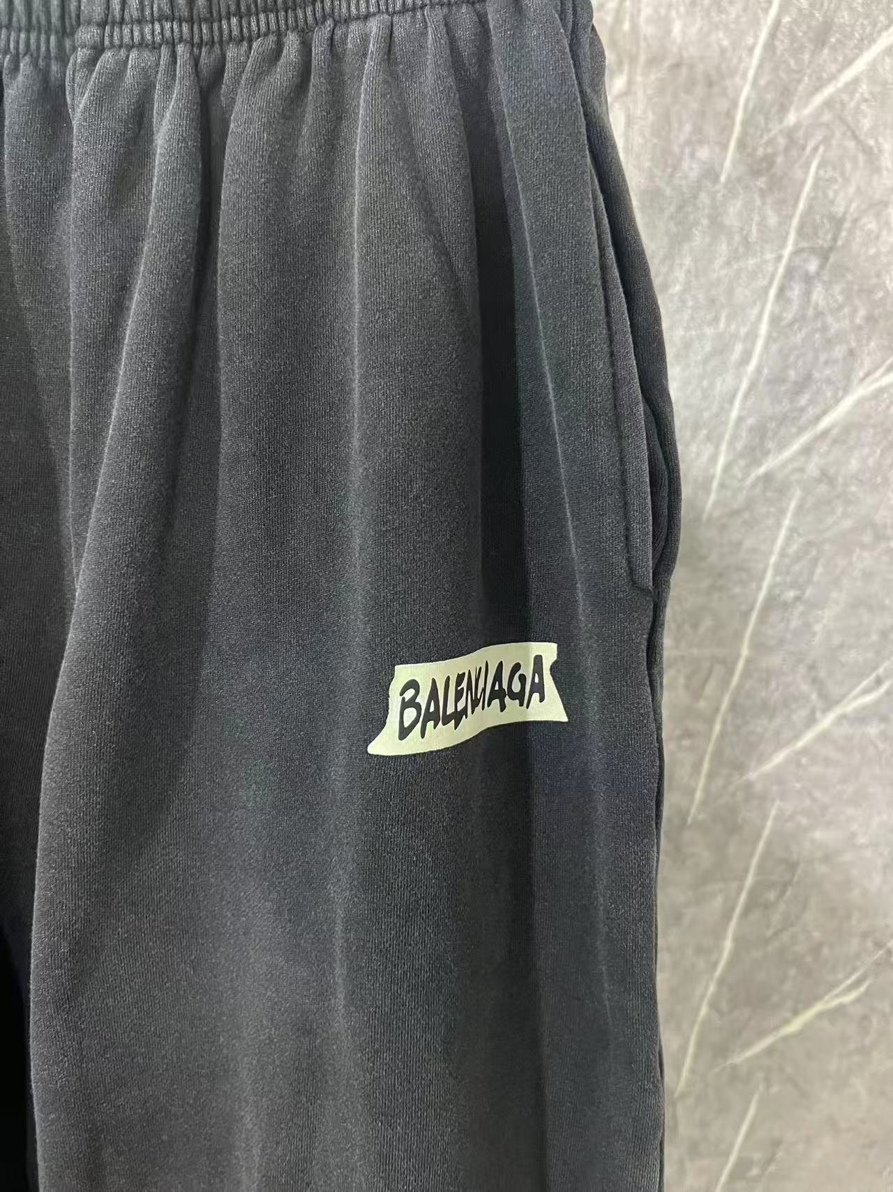 Balenciaga巴黎世家新款BLCG巴黎26fw新款 Tape Type立体胶带磨破情侣卫衣外套 套装 裤子 面料450G 螺纹480G 复古平纹面料是一种采用平纹织法制作的面料其特点是经纬纱线交织频繁 织物外观平整 纹理清晰 手感比较轻薄 面料采用较粗的纱线制成 呈现出一种复古的风格 具有良好的透气性和舒适度 前后幅字母采用立体胶浆印花 立体胶浆印花工艺是一种极具创造力和表现力的印花技术 它通过精确控制胶浆的应用 为纺织品带来了独特的质感和视觉效果 无论是细腻的线条 生动的纹理还是立体的图案 立体胶浆印花都能完美呈现 胚布成衣印花后进行炒色工艺制作而成 炒砂后面料轻微泛白 全身定位磨破细节处理 改变原面料颜色呈现出深浅一明暗不同的怀旧色彩