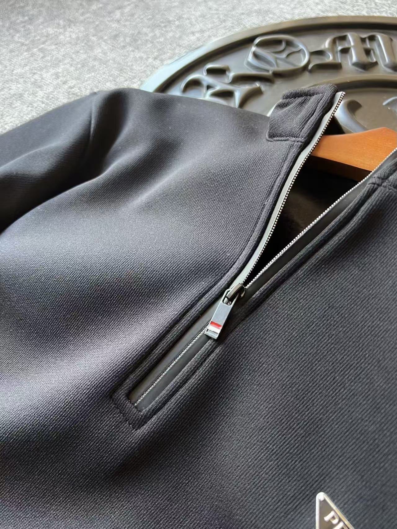 细节细节再细节 Prada家今年新款水貂绒加绒立领拉链款卫衣 胸前立体浮雕Prada小标 进口TPU基材 十分精致 领口拼接防水拉链设计 多功能调节体温 简约大气