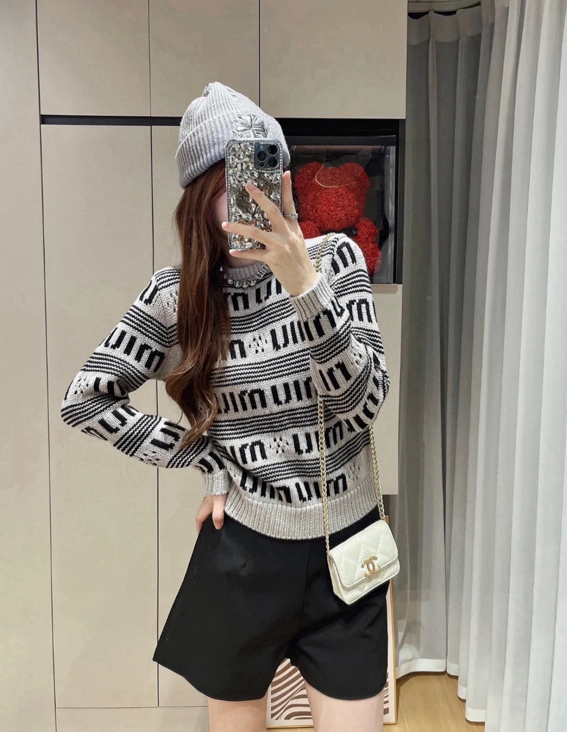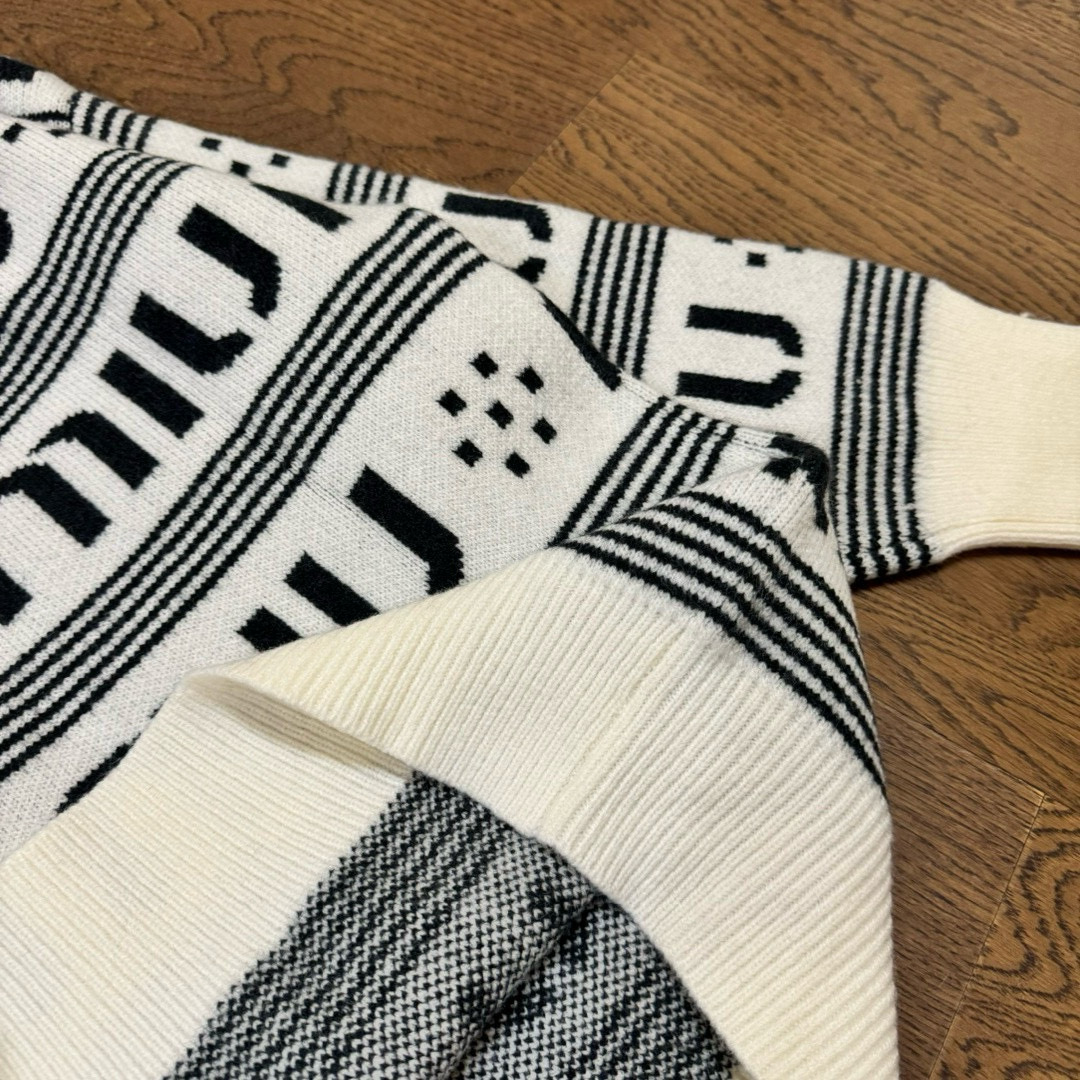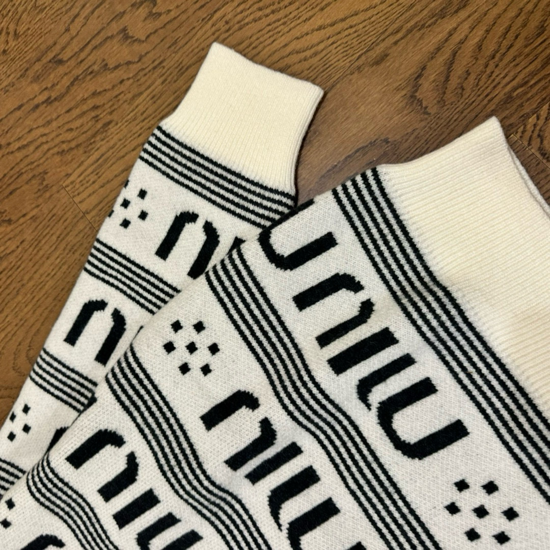 Miu Miu 缪缪24ss 满印 logo 双层提花情侣针织圆领毛衣 顶级原单版本