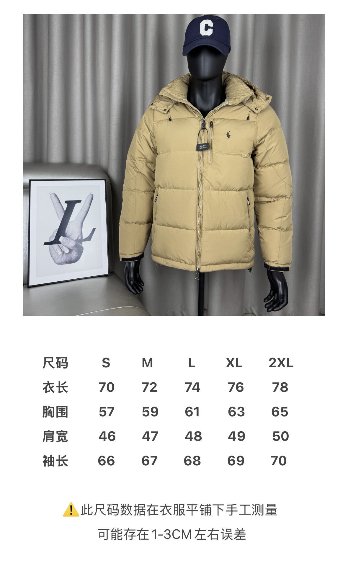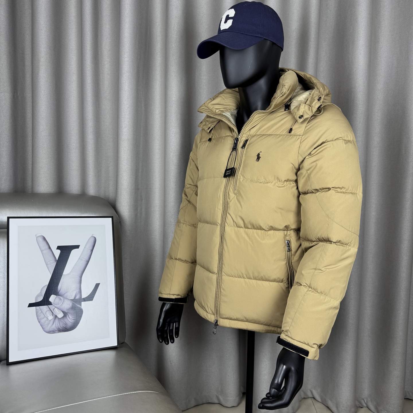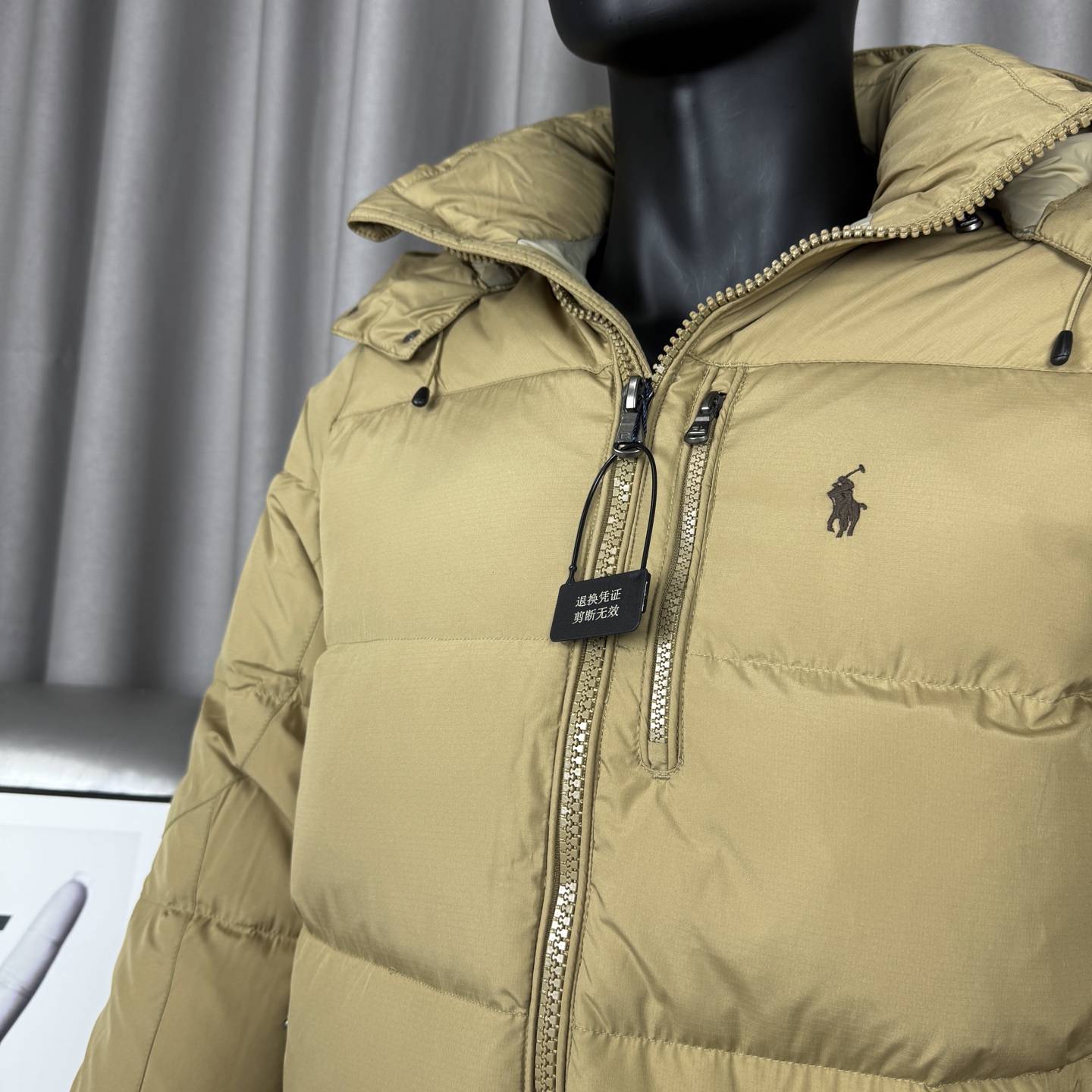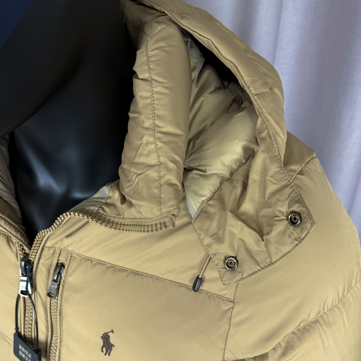面料采用原版定制防水防静电布料 内里采用尼龙双层封禁设计 分区填充420克80白鸭绒 蓬松度超好轻便不厚重 扣子和拉链全部带有logo 内里有口袋 胸前也是真口袋 所有的口袋都带有拉链 胸前红色小马采用进口田岛绣花机 清晰立体又饱满 袖口魔术贴设计可随意调节 下摆内置抽拉绳扣 自由松紧调节 更加防风保暖 帽子和原版一致可拆卸 宽松的版型不挑人