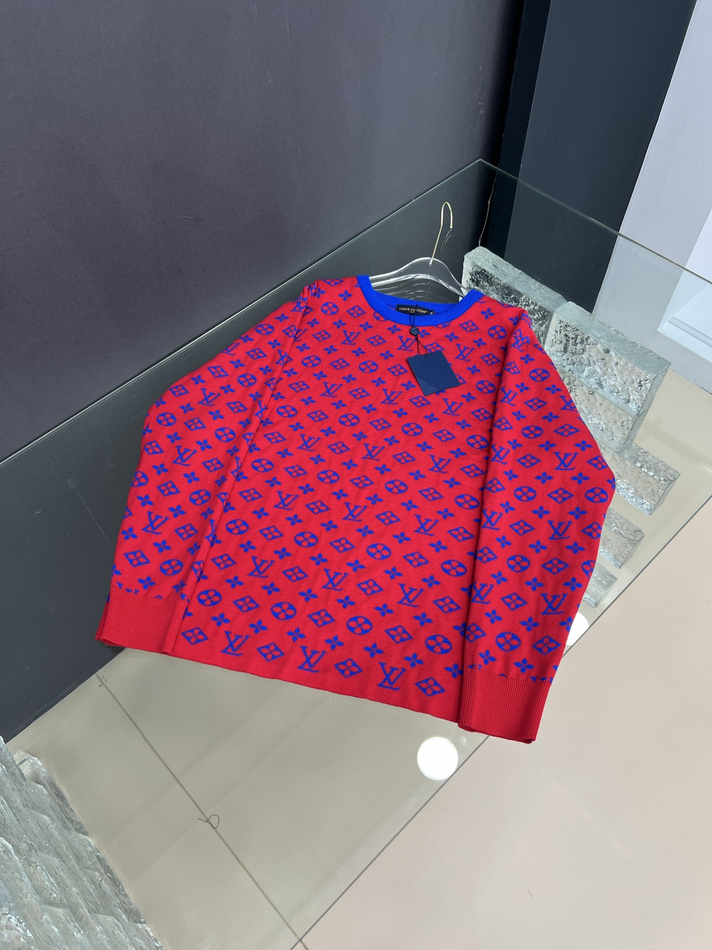 LV圆领拼色针织毛衣L 4XL