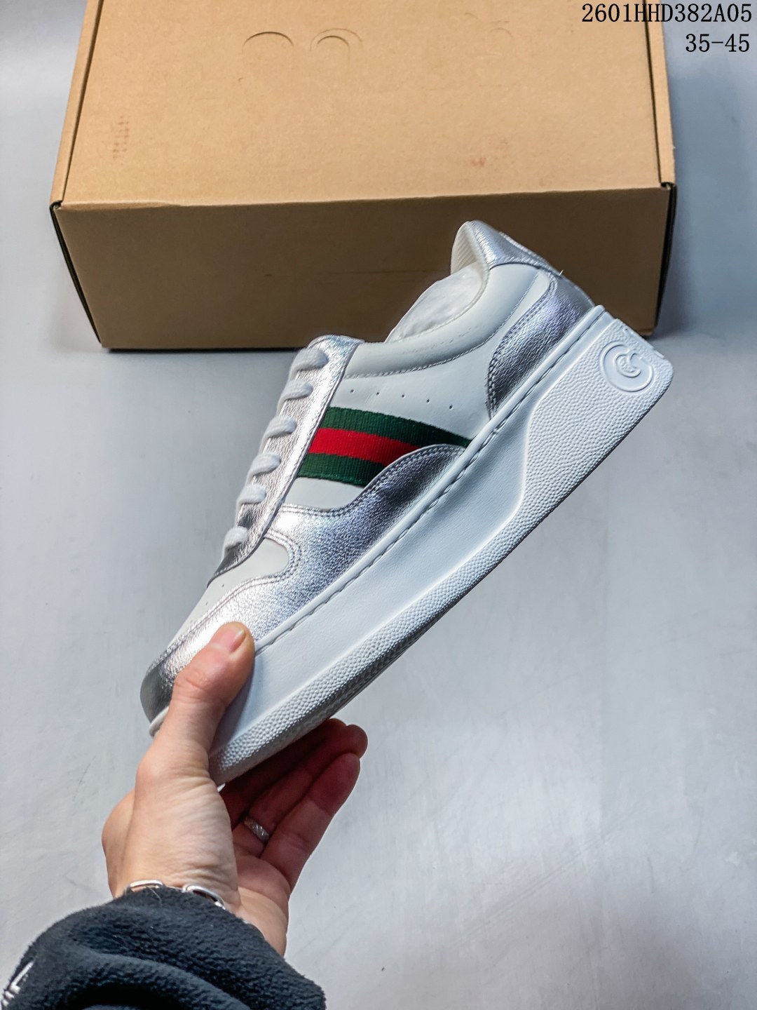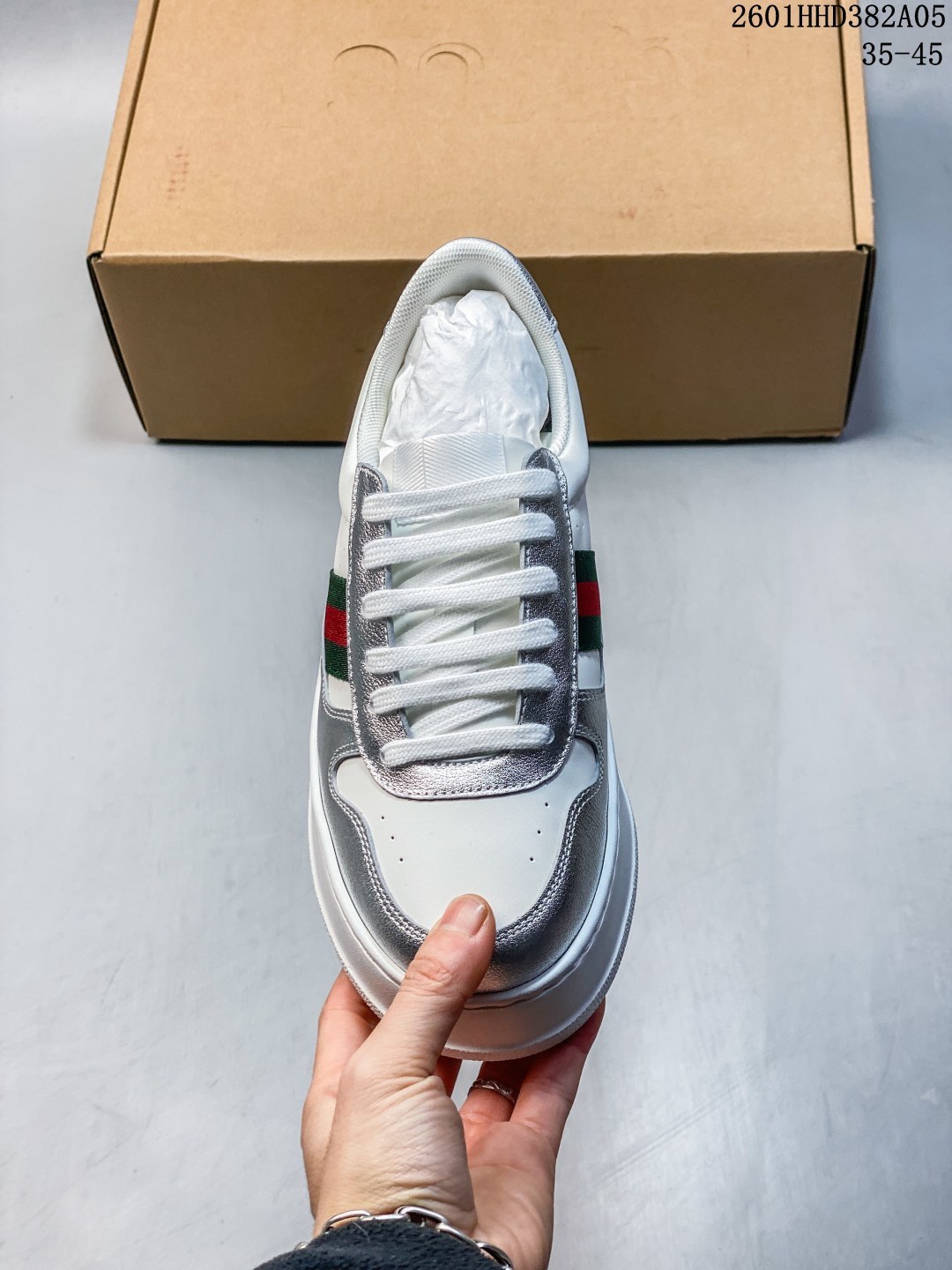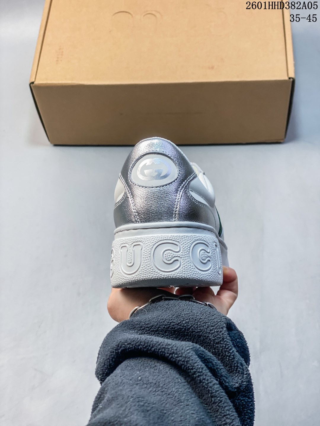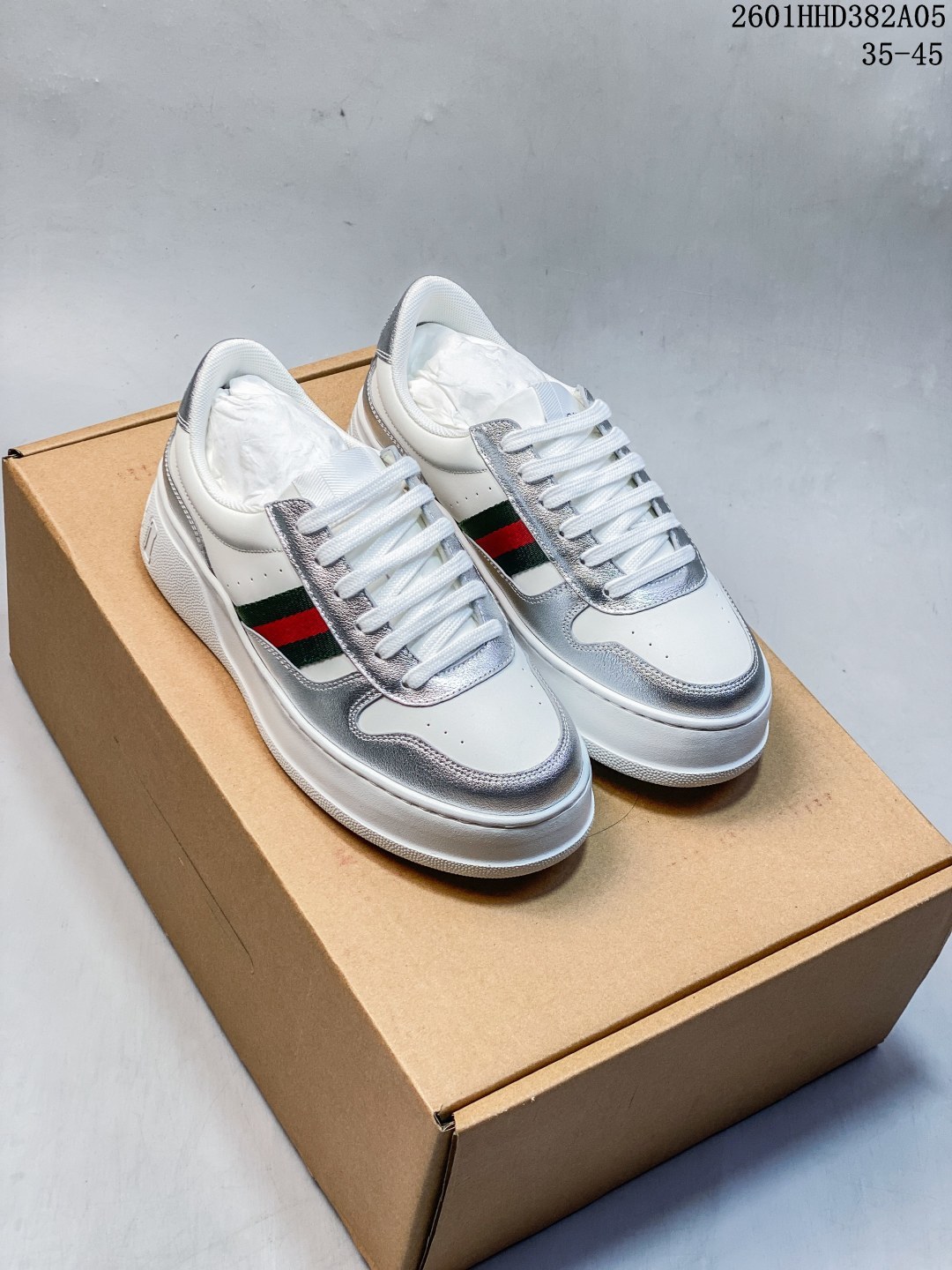 Gucci专柜最新情侣款厚底饼干鞋 代购级别 GG最新IP轻质厚底饼干鞋上脚秒内增高4CM 简约 好搭且复古韵味十足 鞋舌最新防伪布标 且带电子芯片防伪 GG 26早春new专柜最新情侣款厚底小白鞋 鞋面采用进口环保水染小牛皮 成型乳胶鞋垫 原版IP轻质大底 一体射出成型超舒服有弹力 不要拿市面上普通TR大底来比价格 比舒适度 全套包装