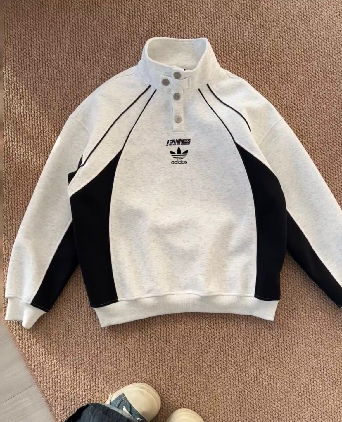 100156361 - 海外版阿迪达斯三叶草Adidas多纽扣美式落肩拼接卫衣男女同 332084