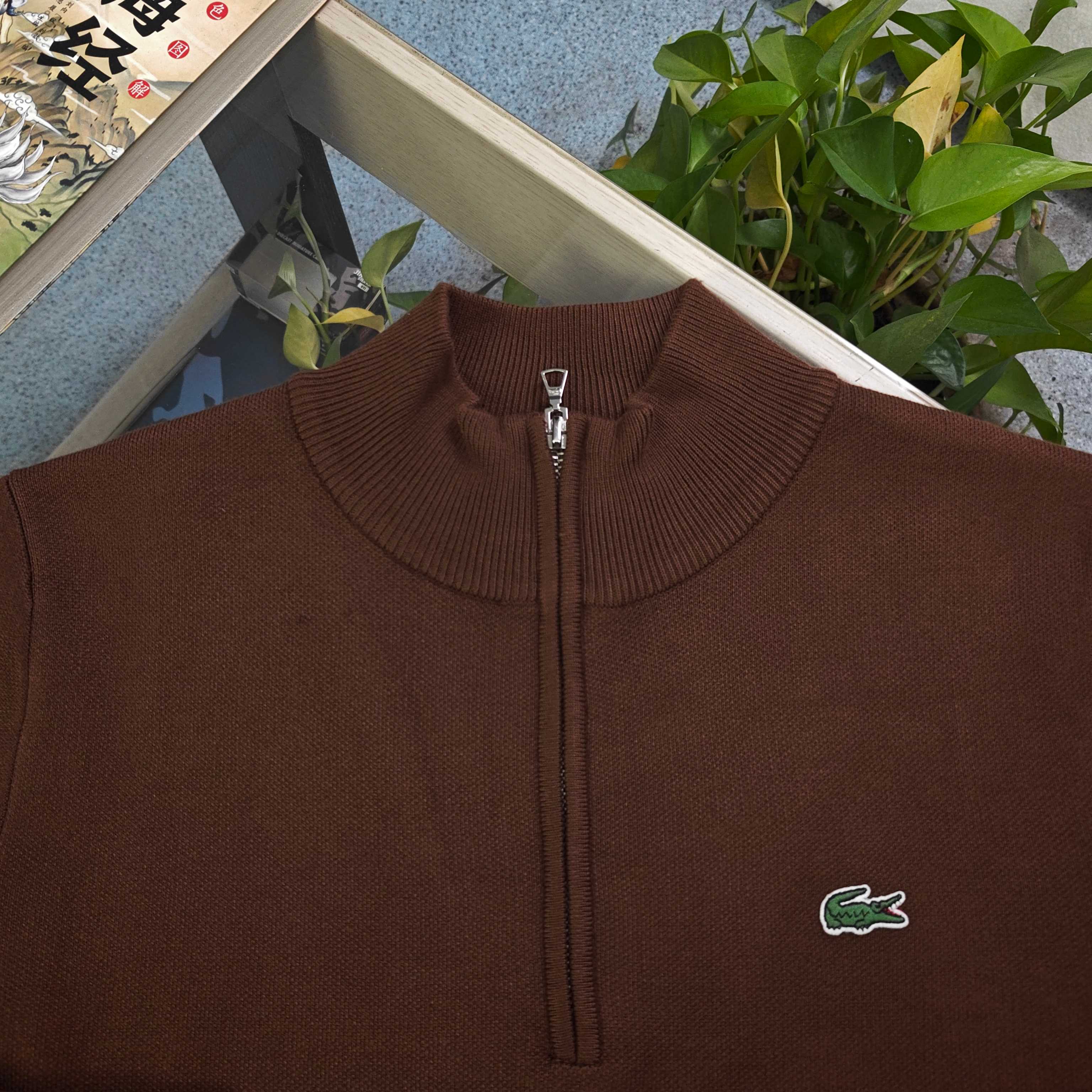 2025新款Lacoste法国鳄鱼经典小标鳄鱼半拉链立领毛衣 秋冬质感穿搭 简约王炸
