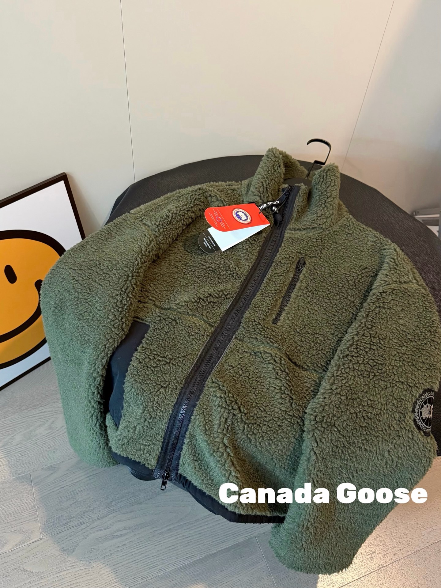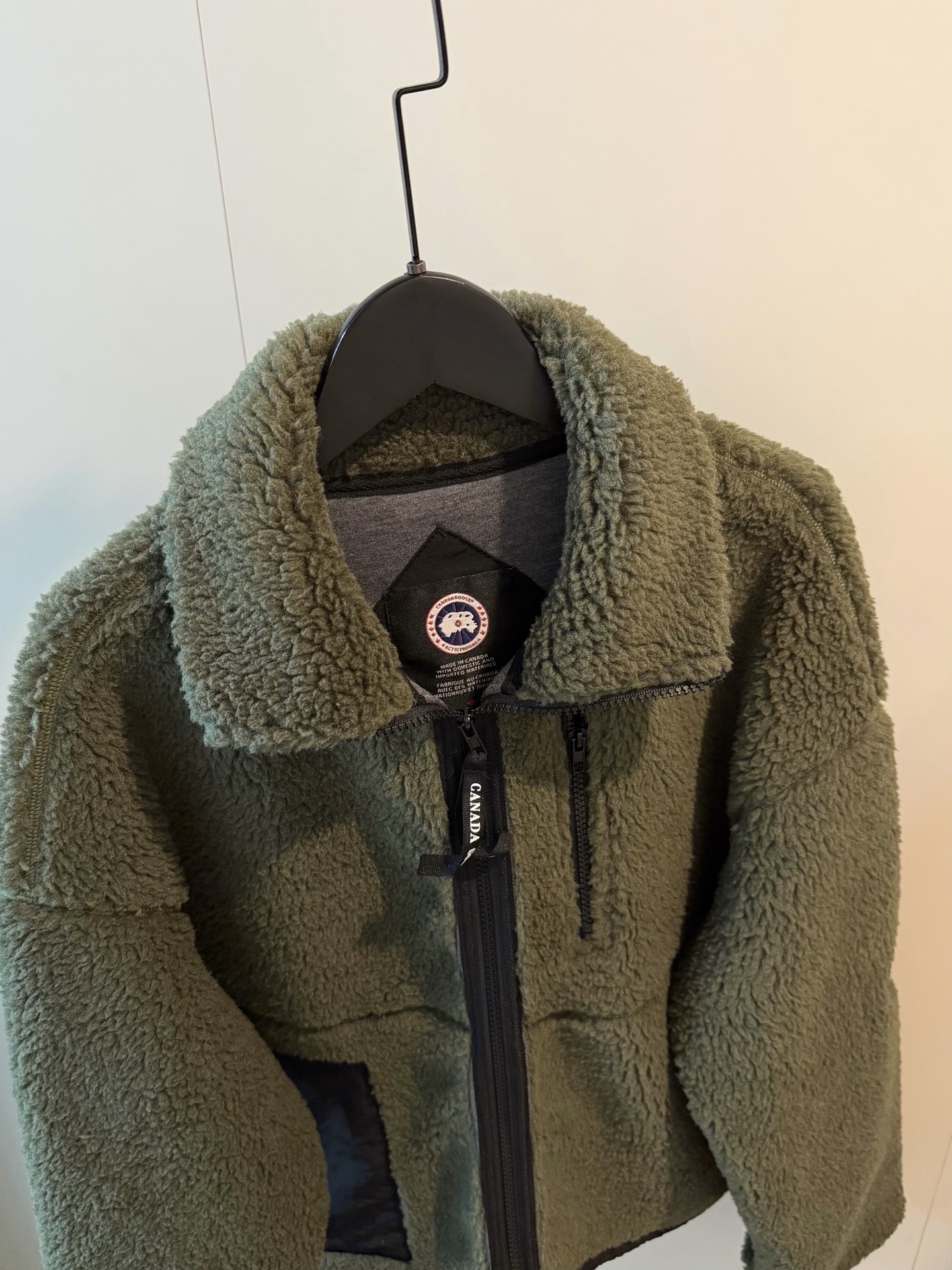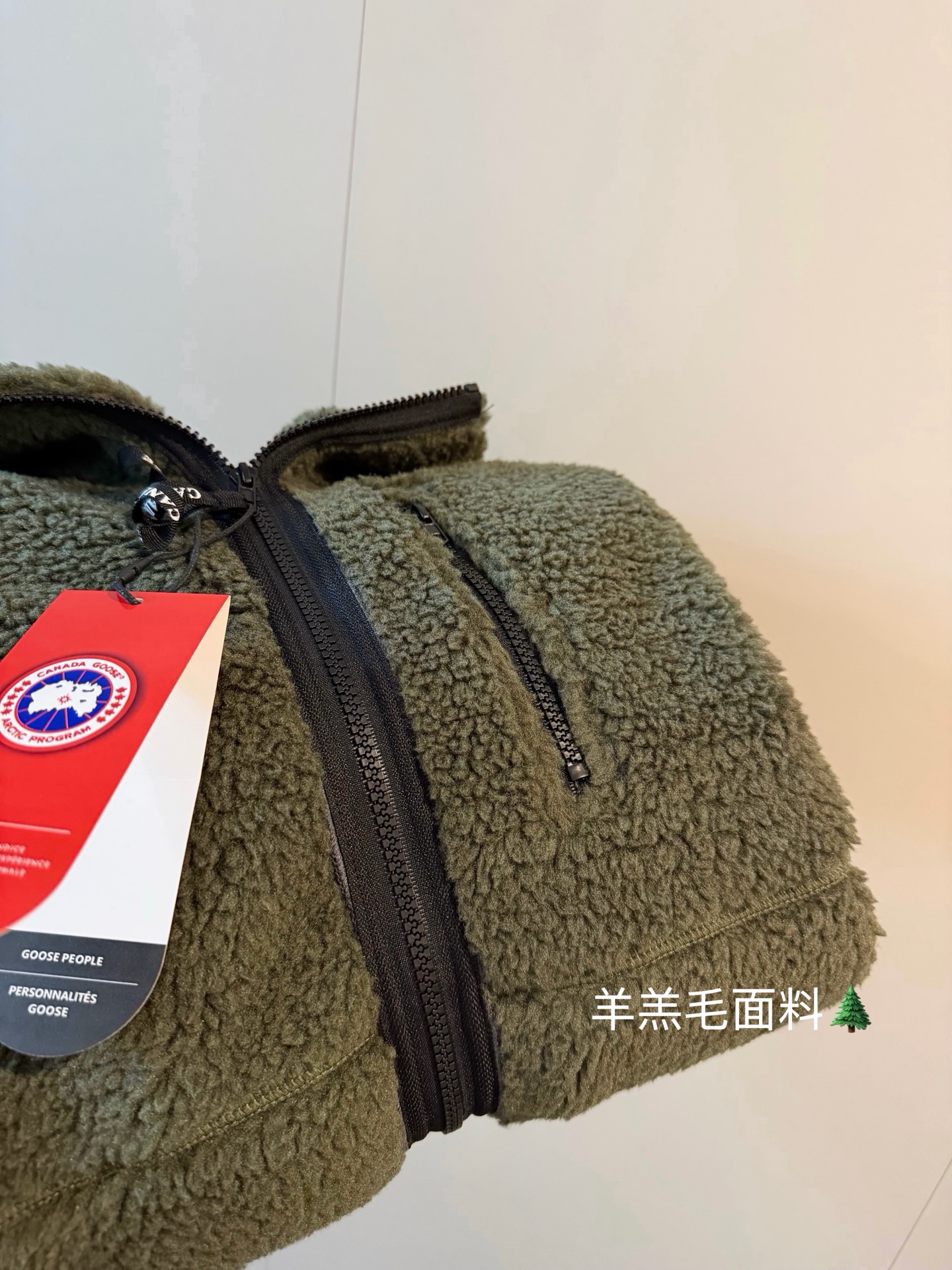Canada Goose大鹅羊羔毛手臂徽章短款绿色外套