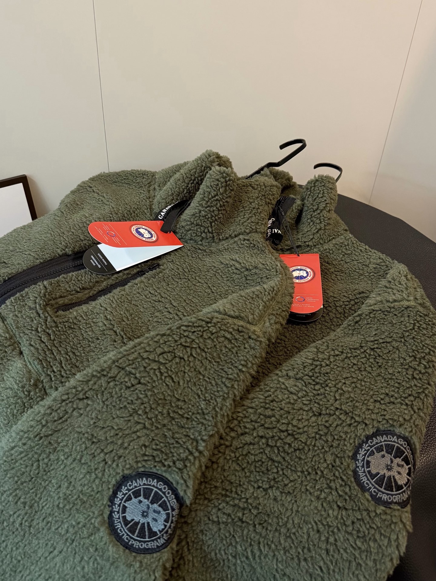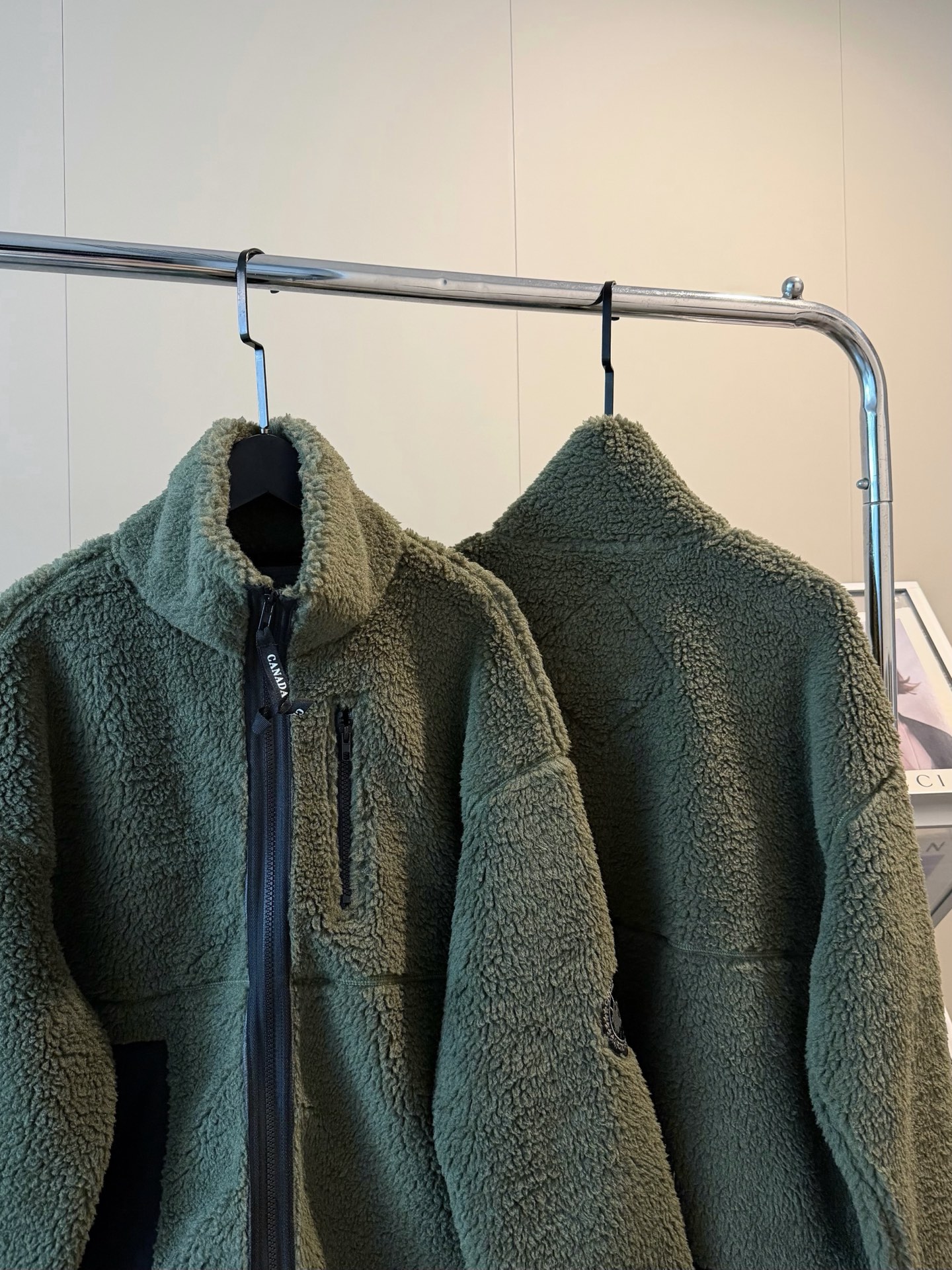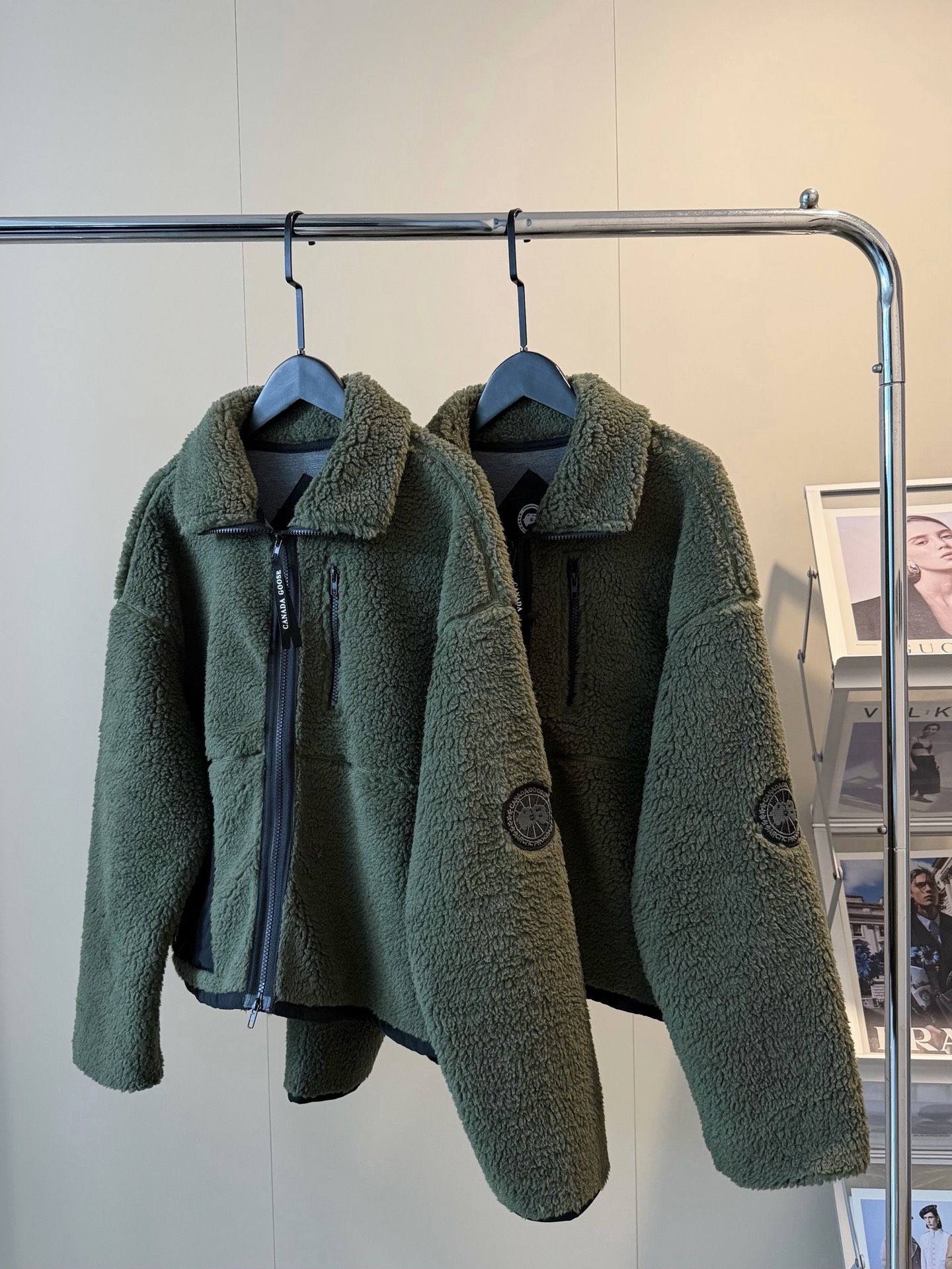 Canada Goose大鹅羊羔毛手臂徽章短款绿色外套
