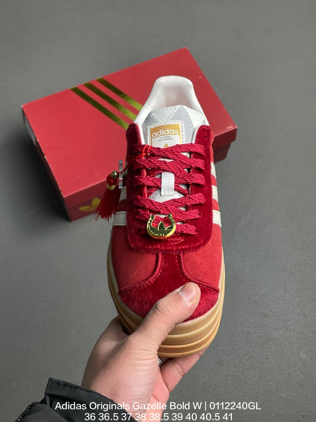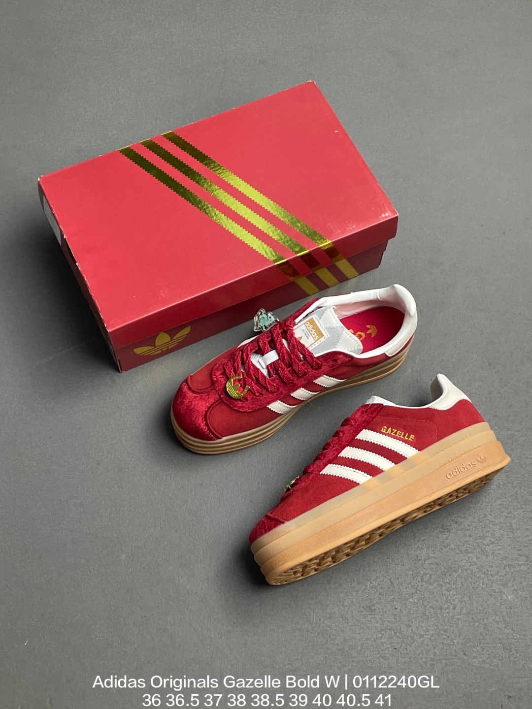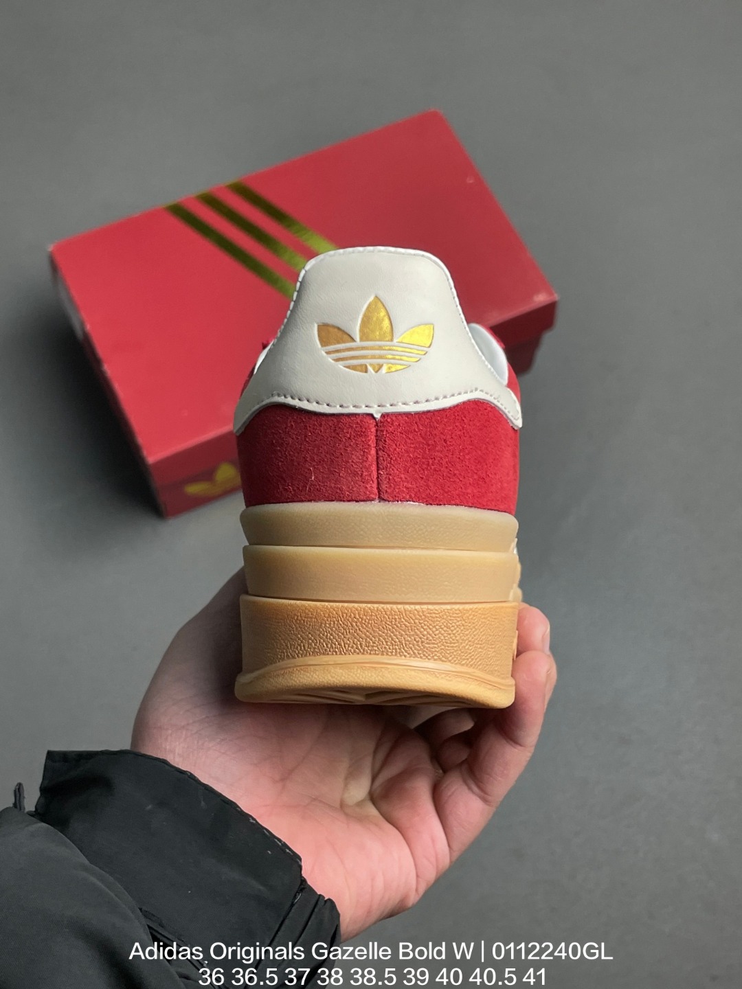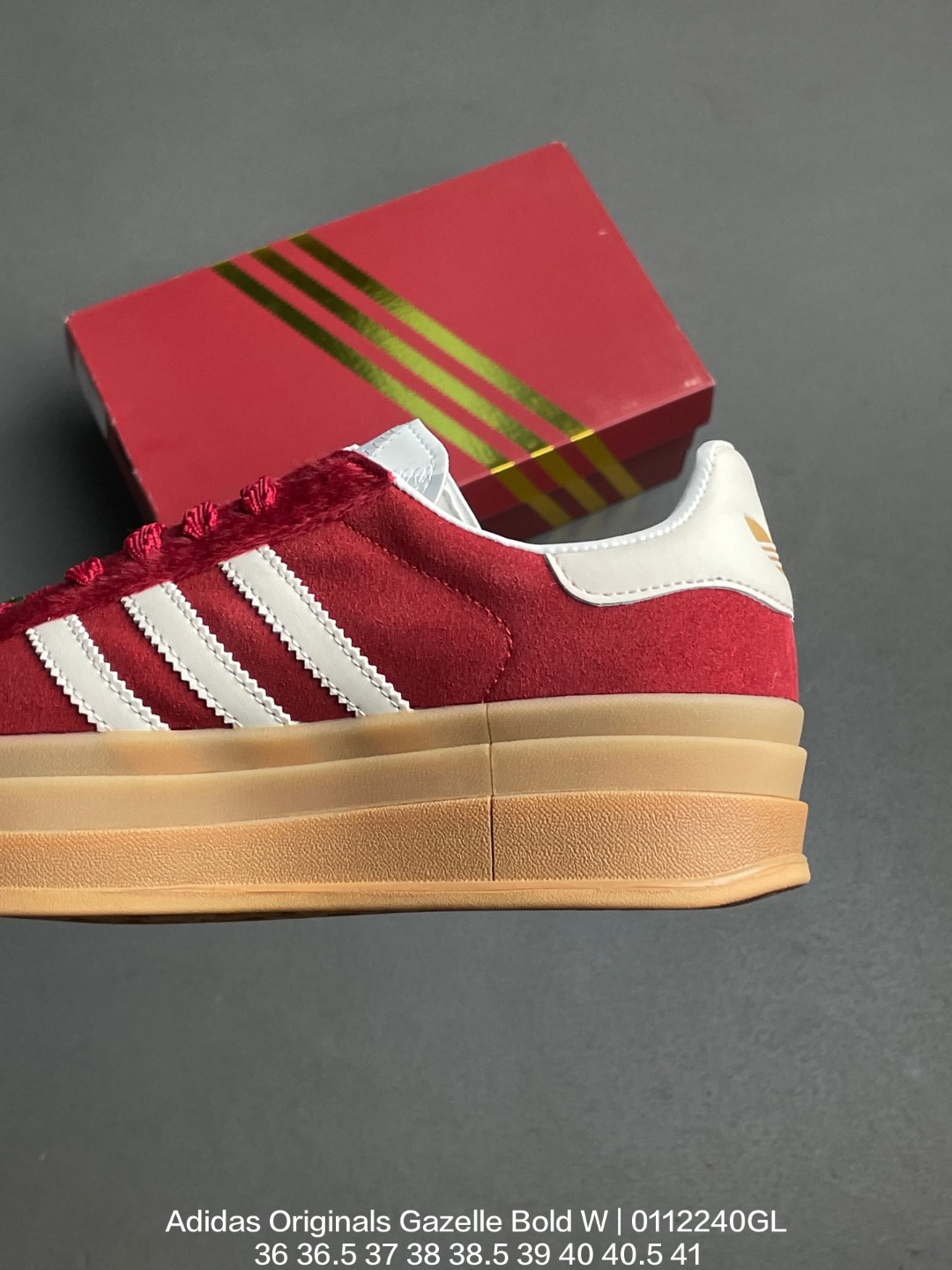 Adidas 阿迪达斯 采用翻毛皮组合纤维革鞋面材质 外置加厚橡胶大底三层松糕 女生绝对爱 阿迪达斯Adidas Originals Gazelle Bold W 羚羊松糕系列复古百搭厚底增高低帮休闲运动板鞋