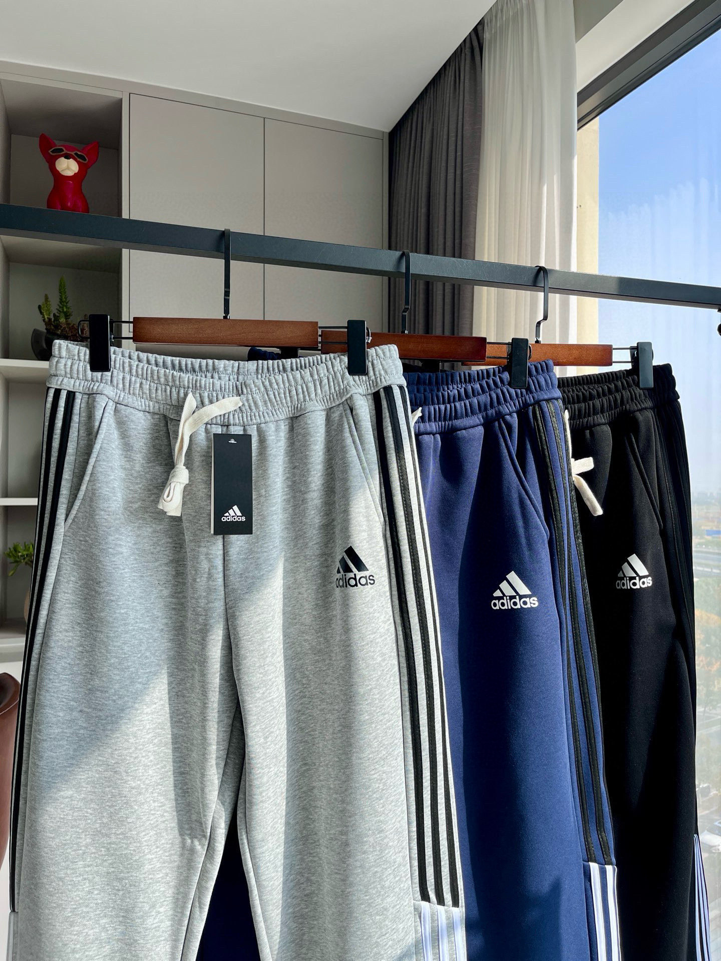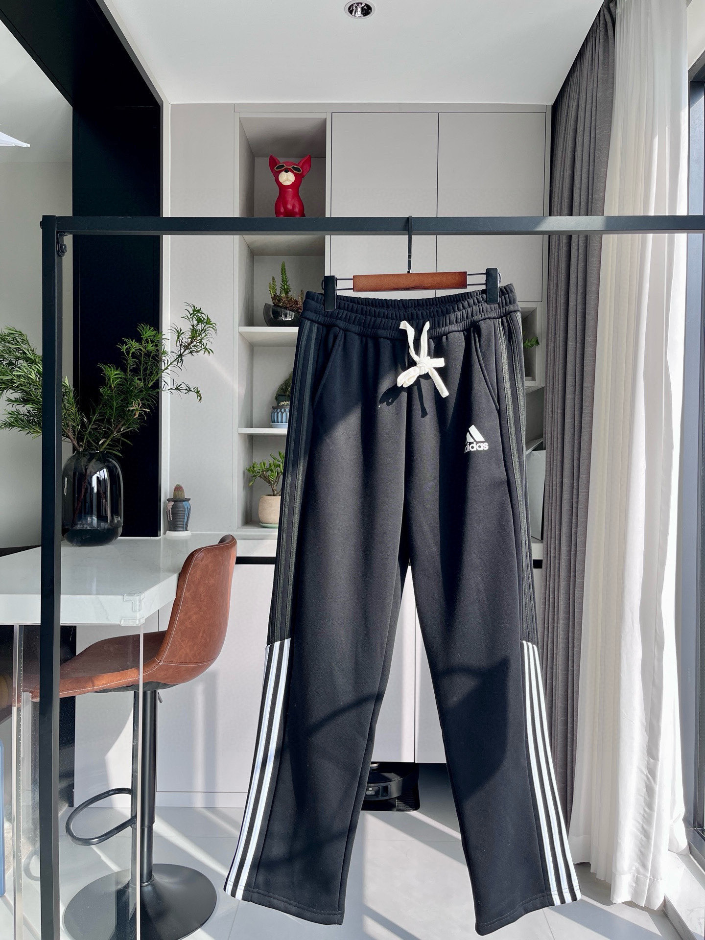 阿迪加绒拼接三杠直筒裤