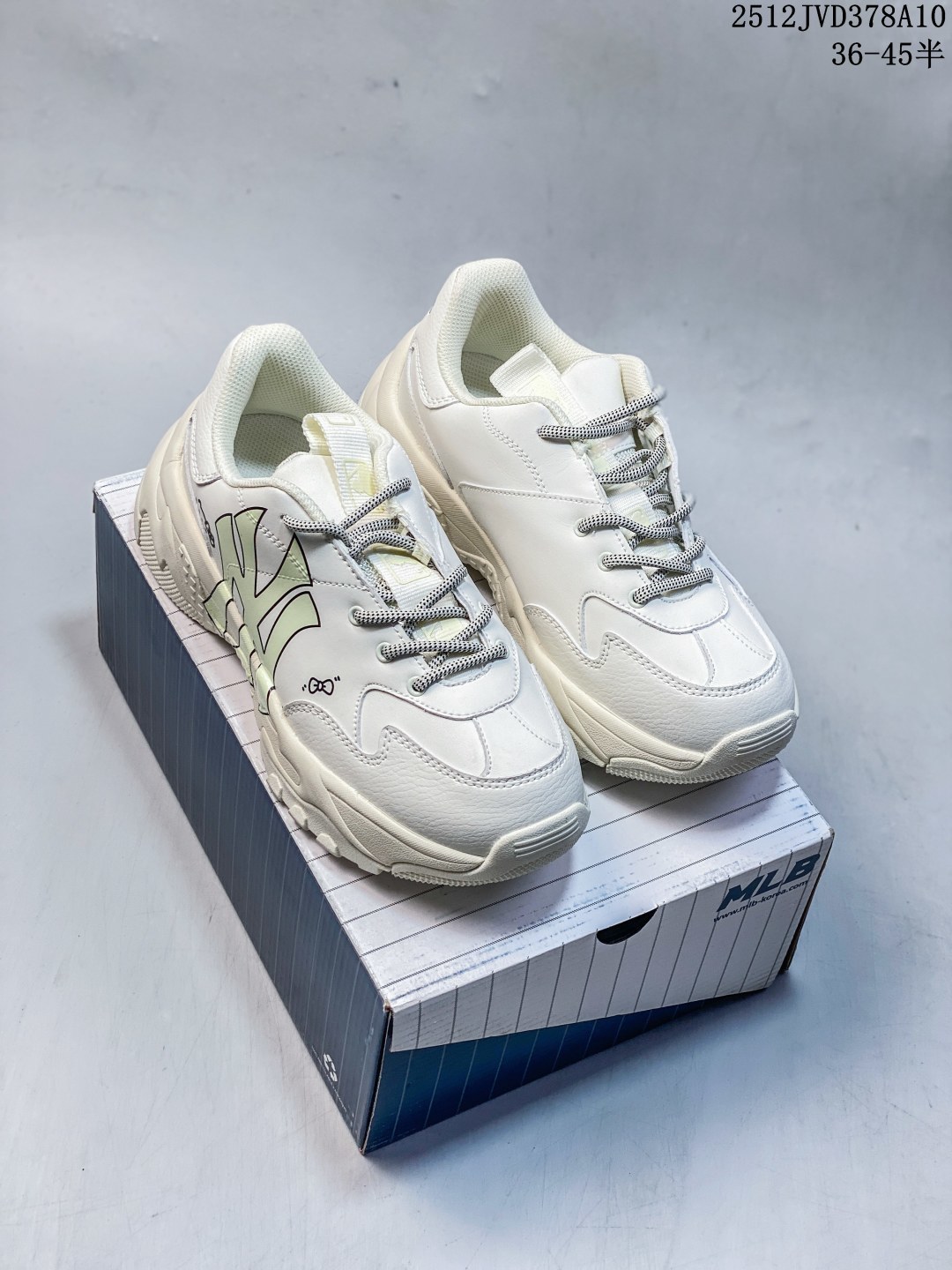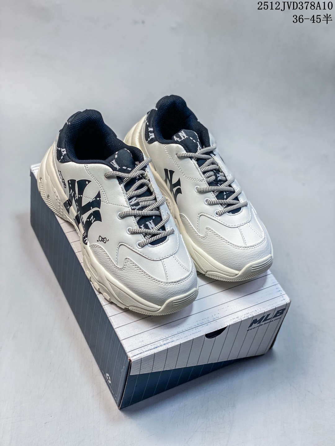 公司级Korea韩国限定发售 NY美国榄球洋基队限定 x MLB Big Ball Chunky Mesh 厚底老爹联名系列低帮网织轻量休闲运动慢跑鞋 网眼象牙白黑NY印花