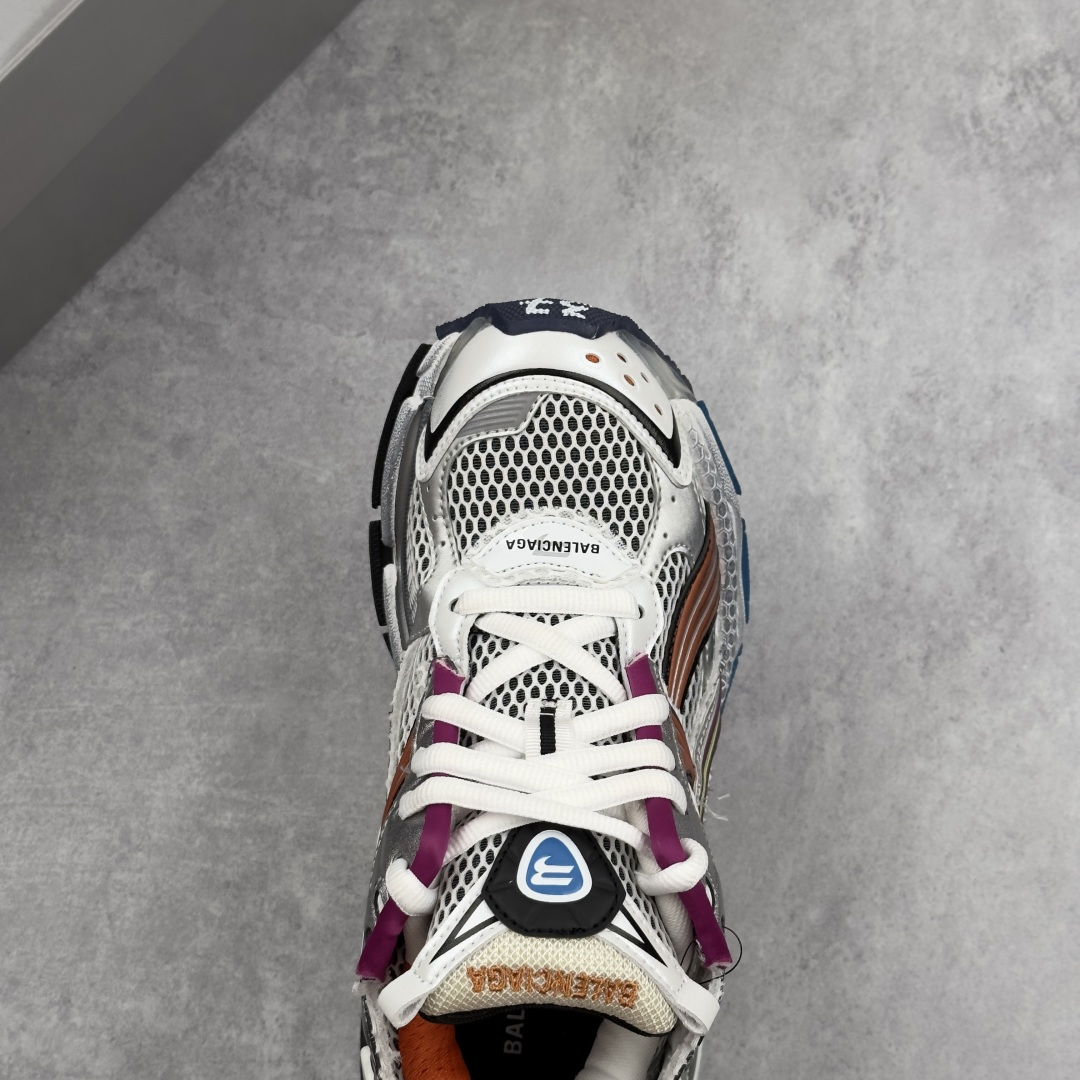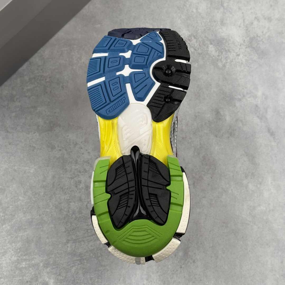 不含皮运动鞋 网布材质 磨损效果 鞋头边缘印有尺码 背面浮印尺码 外侧印有跑者徽标 鞋舌刺绣Balenciaga品牌标识 鞋跟背面Balenciaga品牌标识 材质采用70 聚氨酯 30 聚酯纤维 原版一致配件防尘袋及附送鞋带 全部采用原档案原楦数据开发 1 1比例克重 原装欧索莱环保去臭环型鞋垫 正确东莞代工原底部