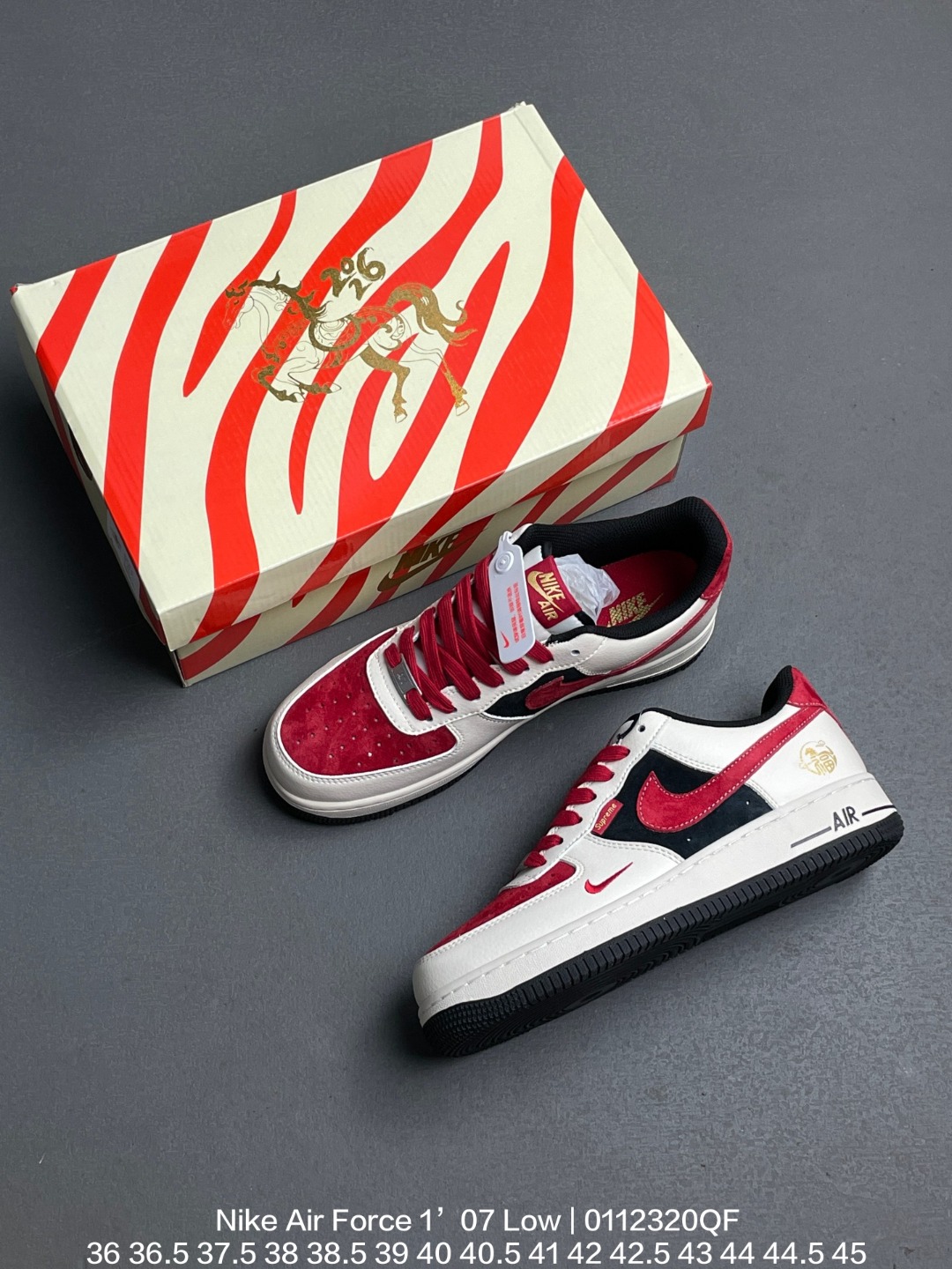 Nike 耐克 原楦原纸版数据开发版型 采用固色猪巴革组合蛇纹牛剖革鞋面材质 内置全掌Air Sole气垫2026马年创意定制配色 耐克Nike Air Force 1 07 Low Year of the Horse 空军一号经典低帮百搭休闲运动板鞋