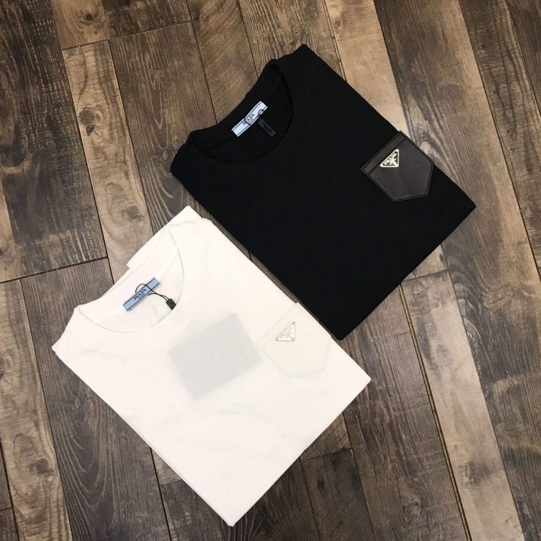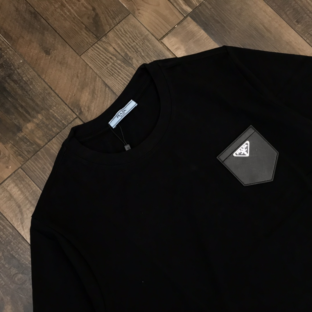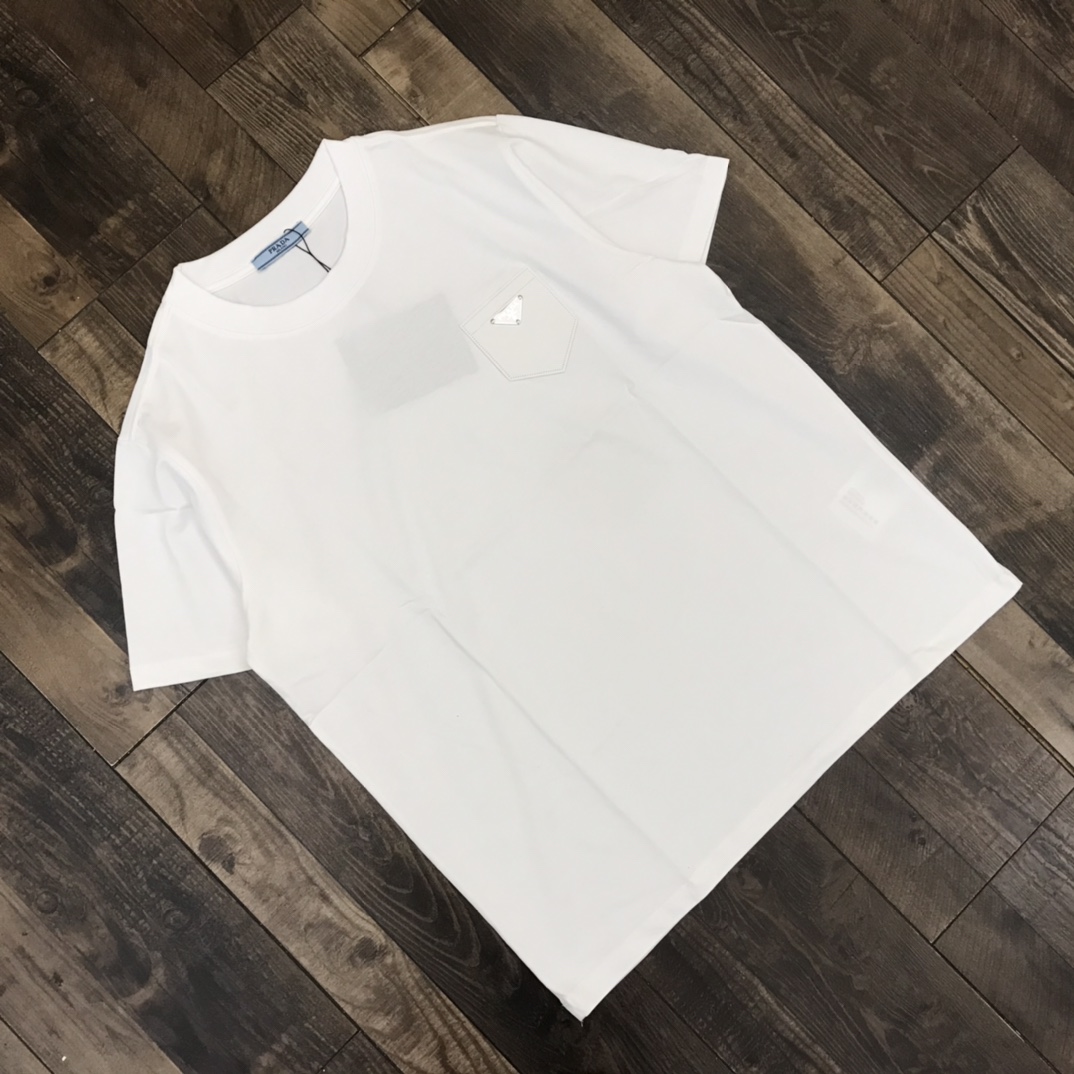 110243545 - 夏款 发 高端定制 prada新款经典三角脚皮标口袋情侣短袖 445691