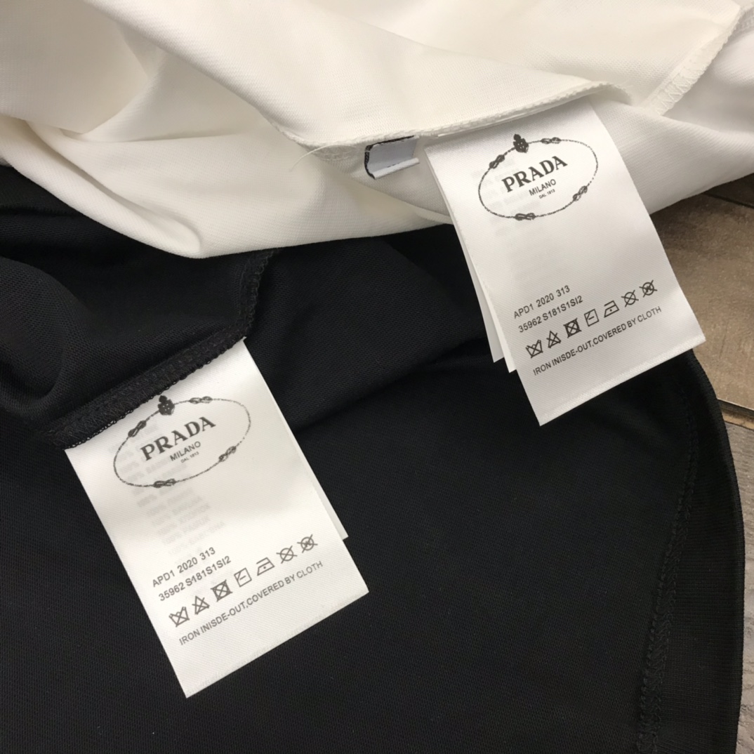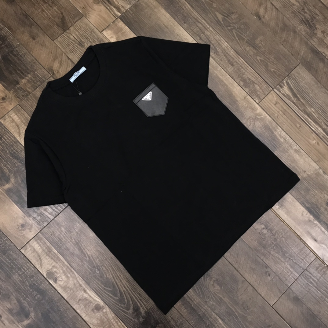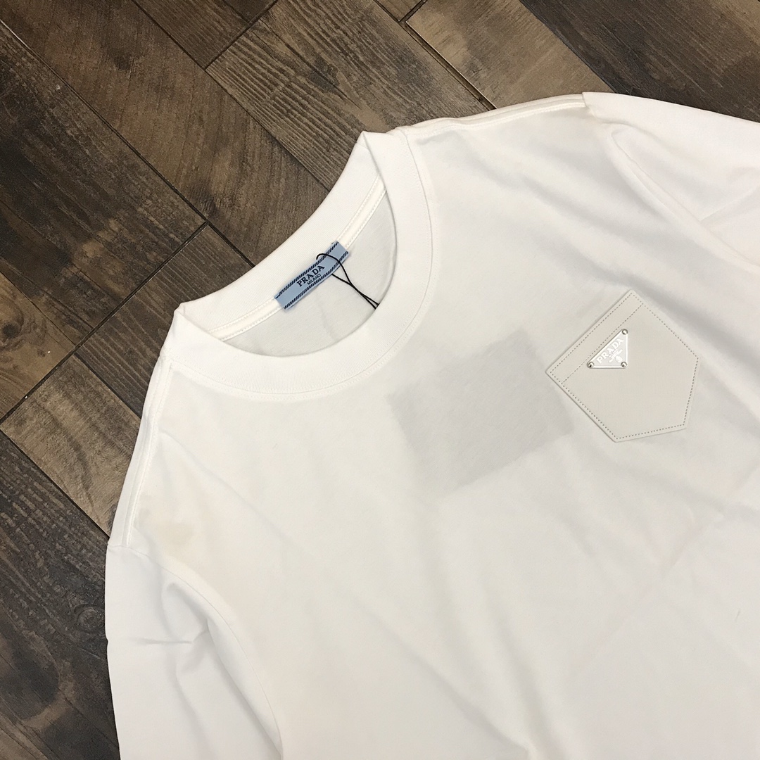 110243545 - 夏款 发 高端定制 prada新款经典三角脚皮标口袋情侣短袖 445691