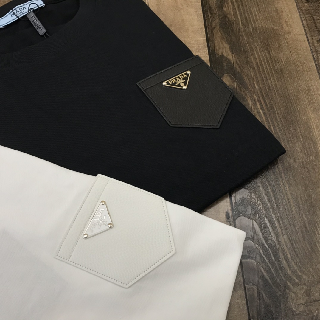 prada新款经典三角脚皮标口袋情侣短袖 积淀