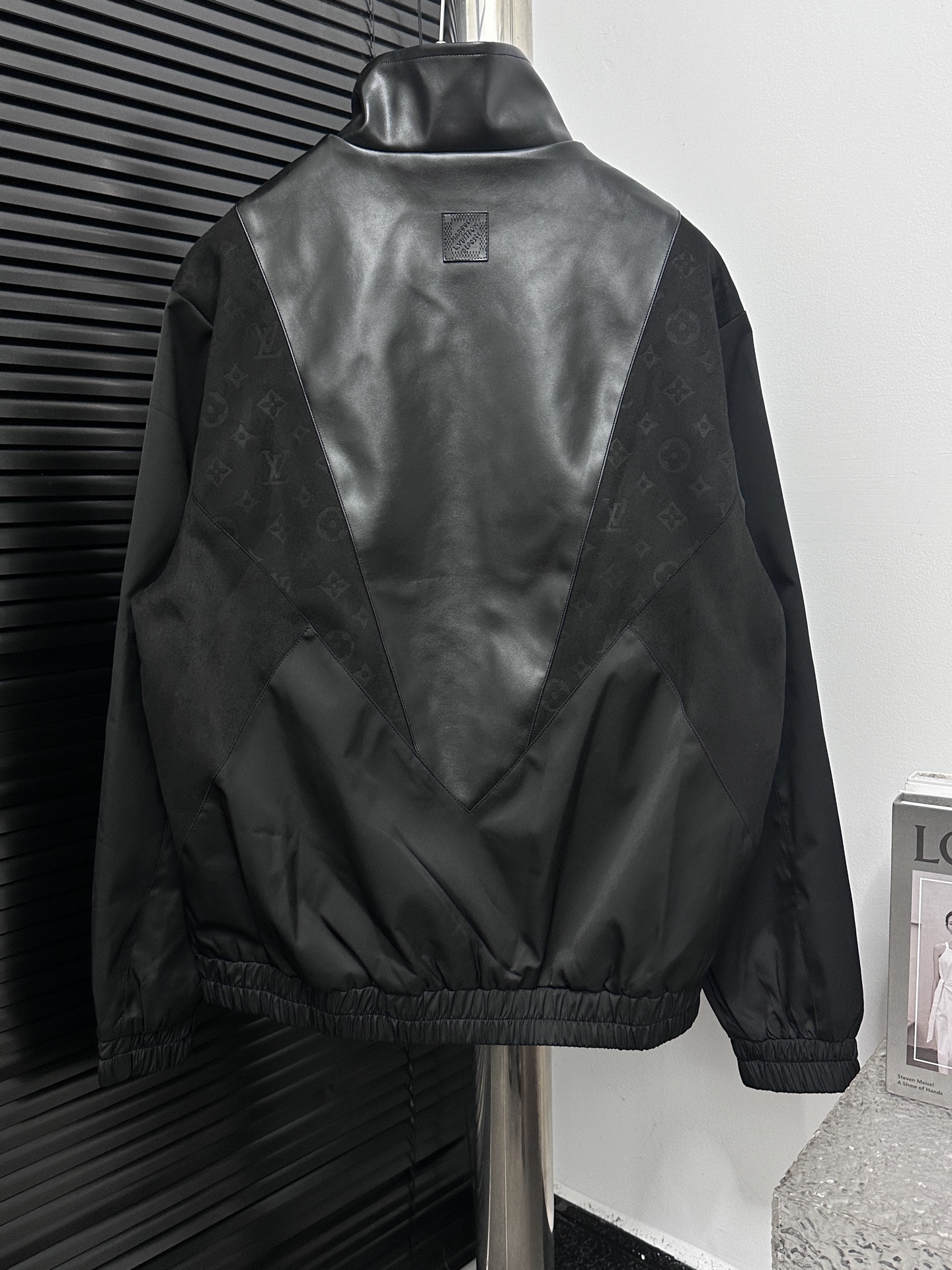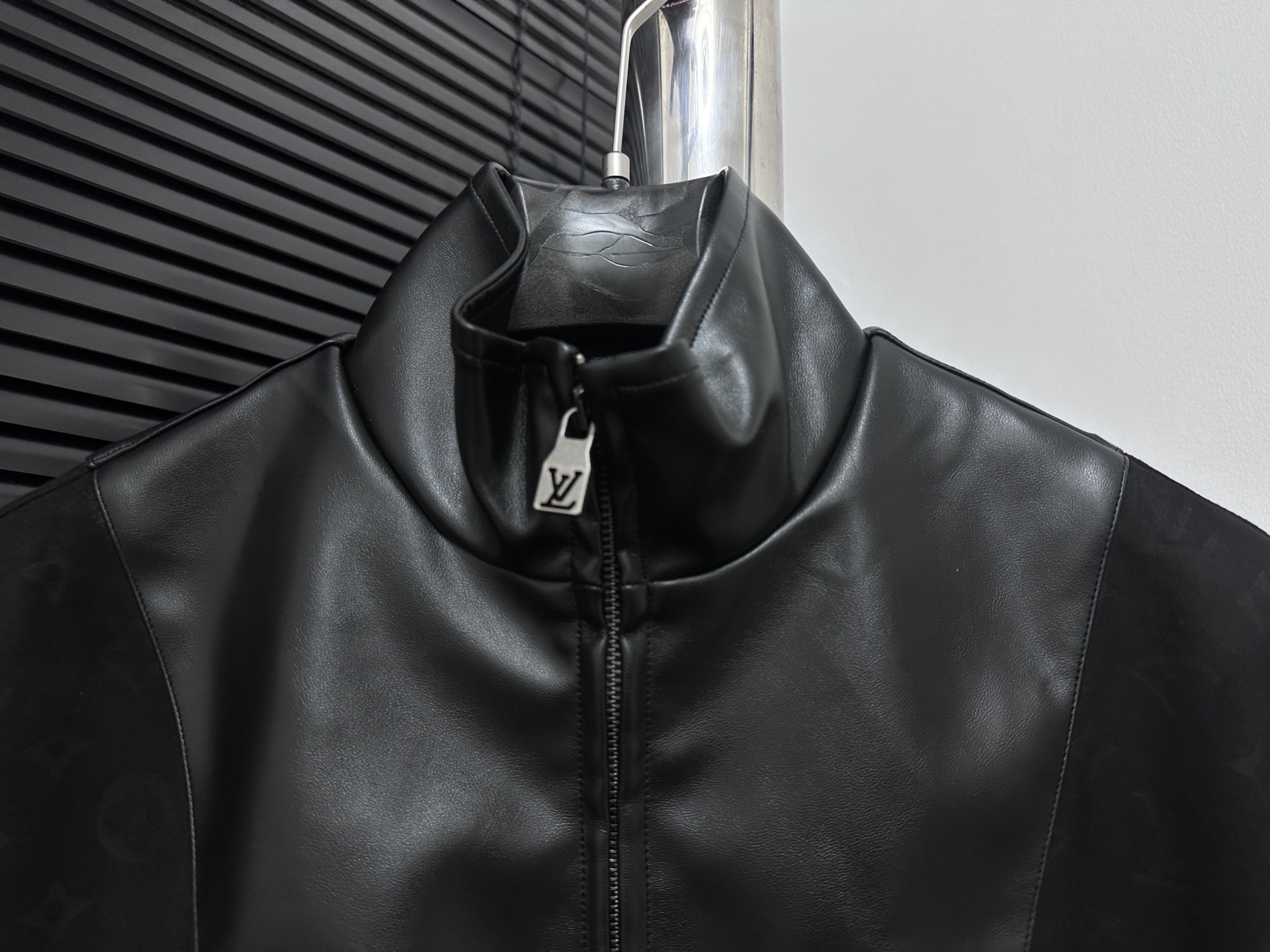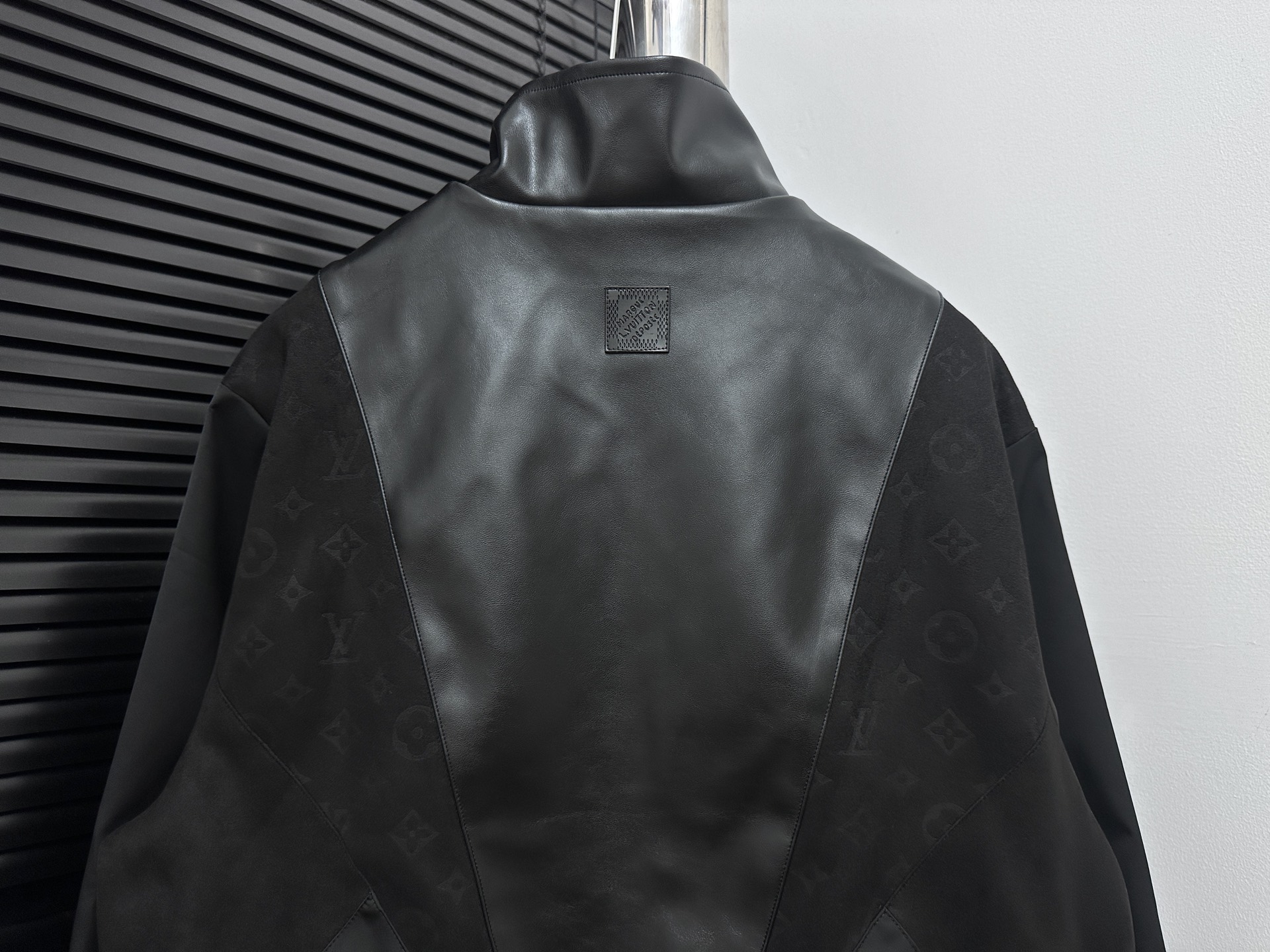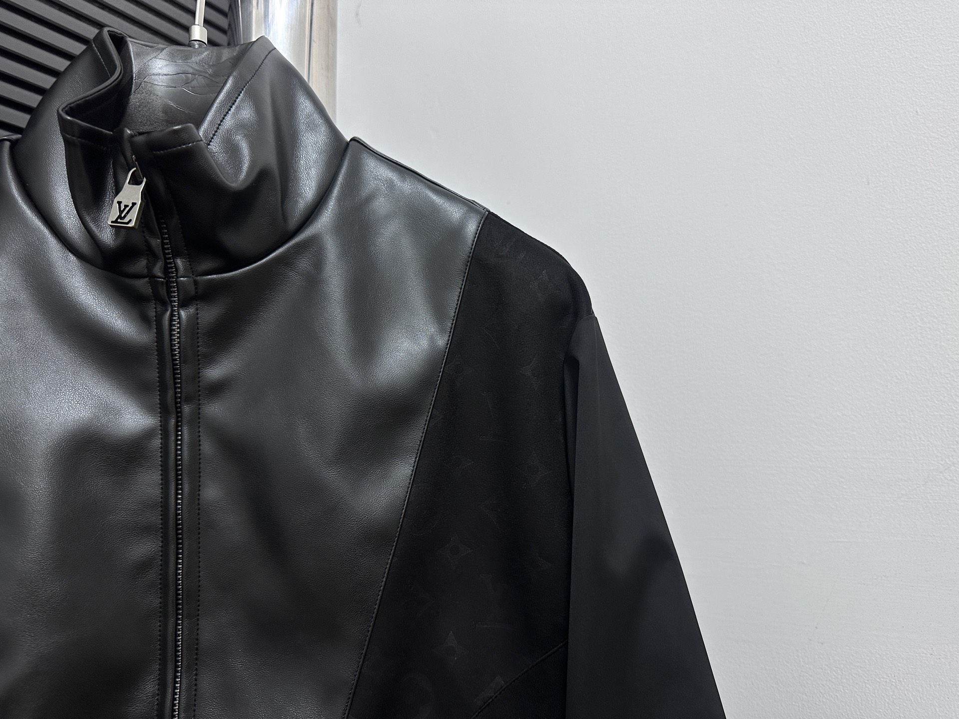 LOUIS VUITTON 路易 拼接皮质提花夹克外套 提花满印设计 面料拼接 定制拉链 商标 整体走线平直细腻 面料舒适柔软 颜色一致无色差 能与同款搭配营造时尚造型 驾驭各种场合 定制辅料 三标齐全 尺码 46 48 50 52