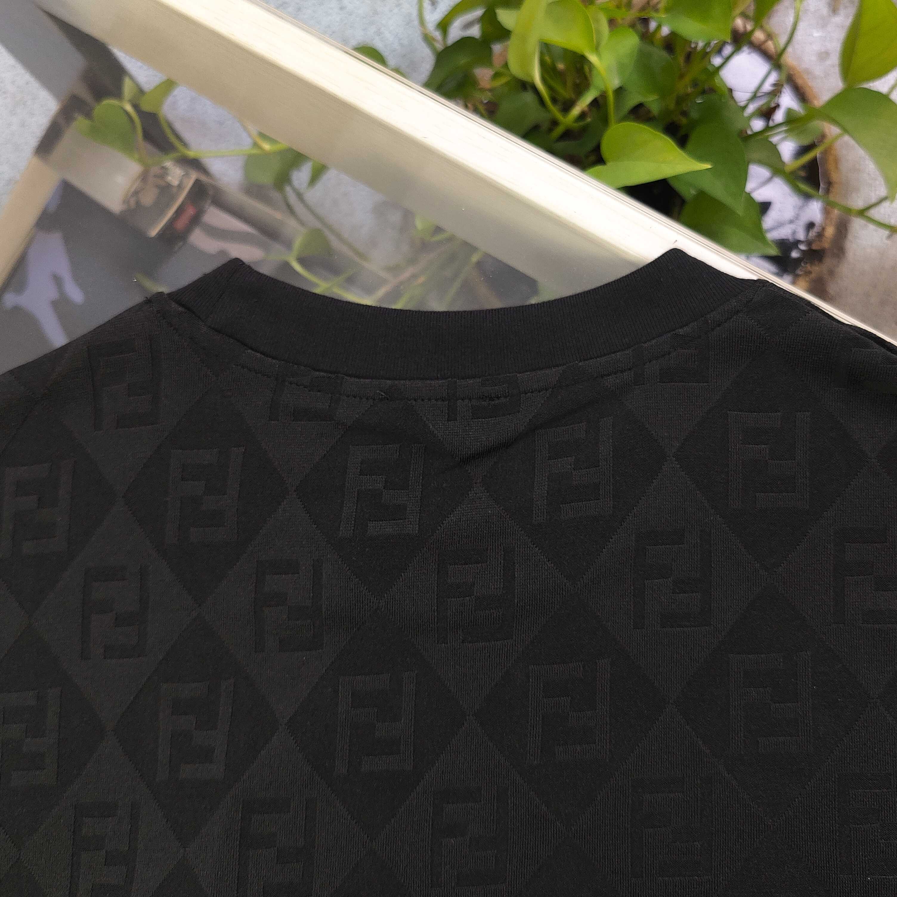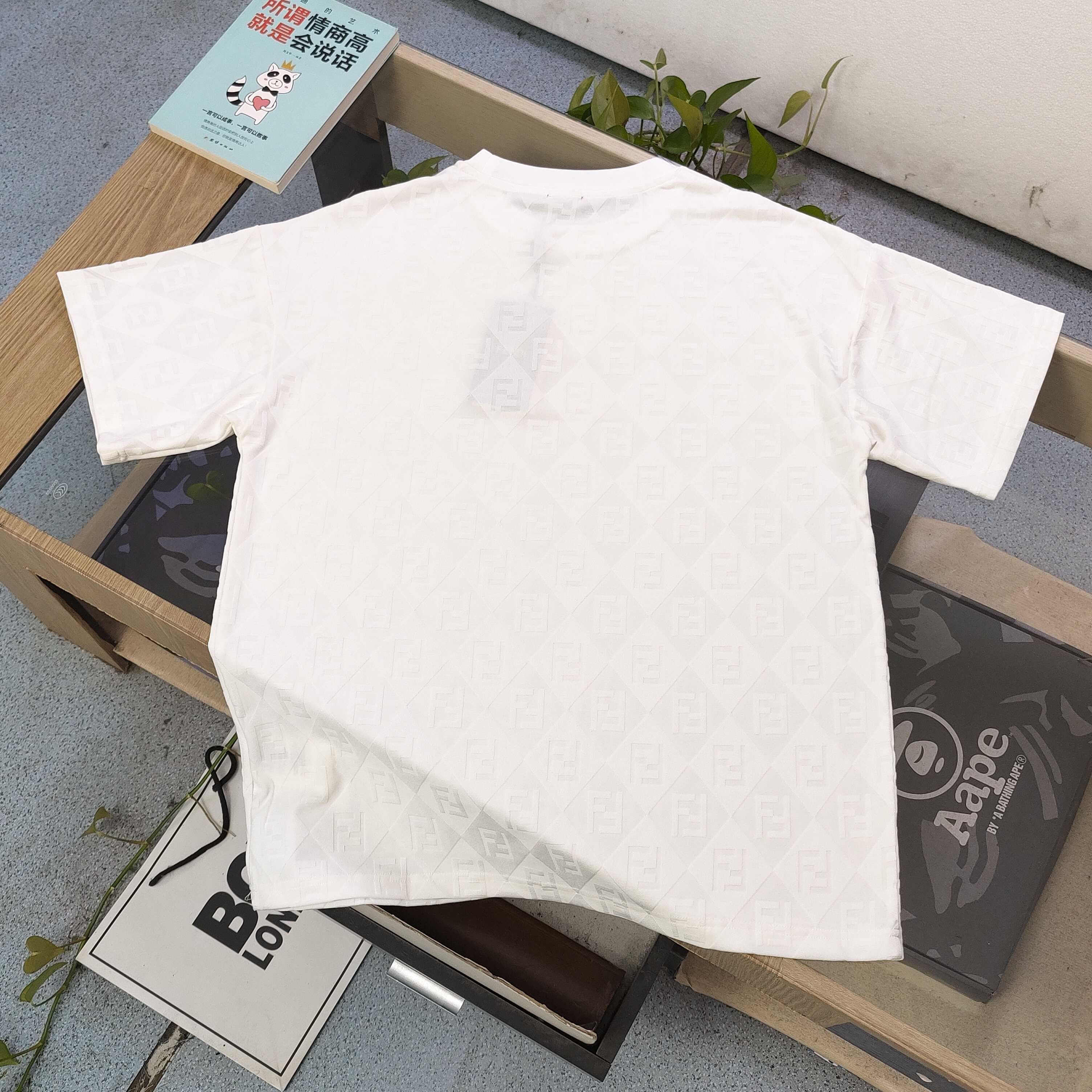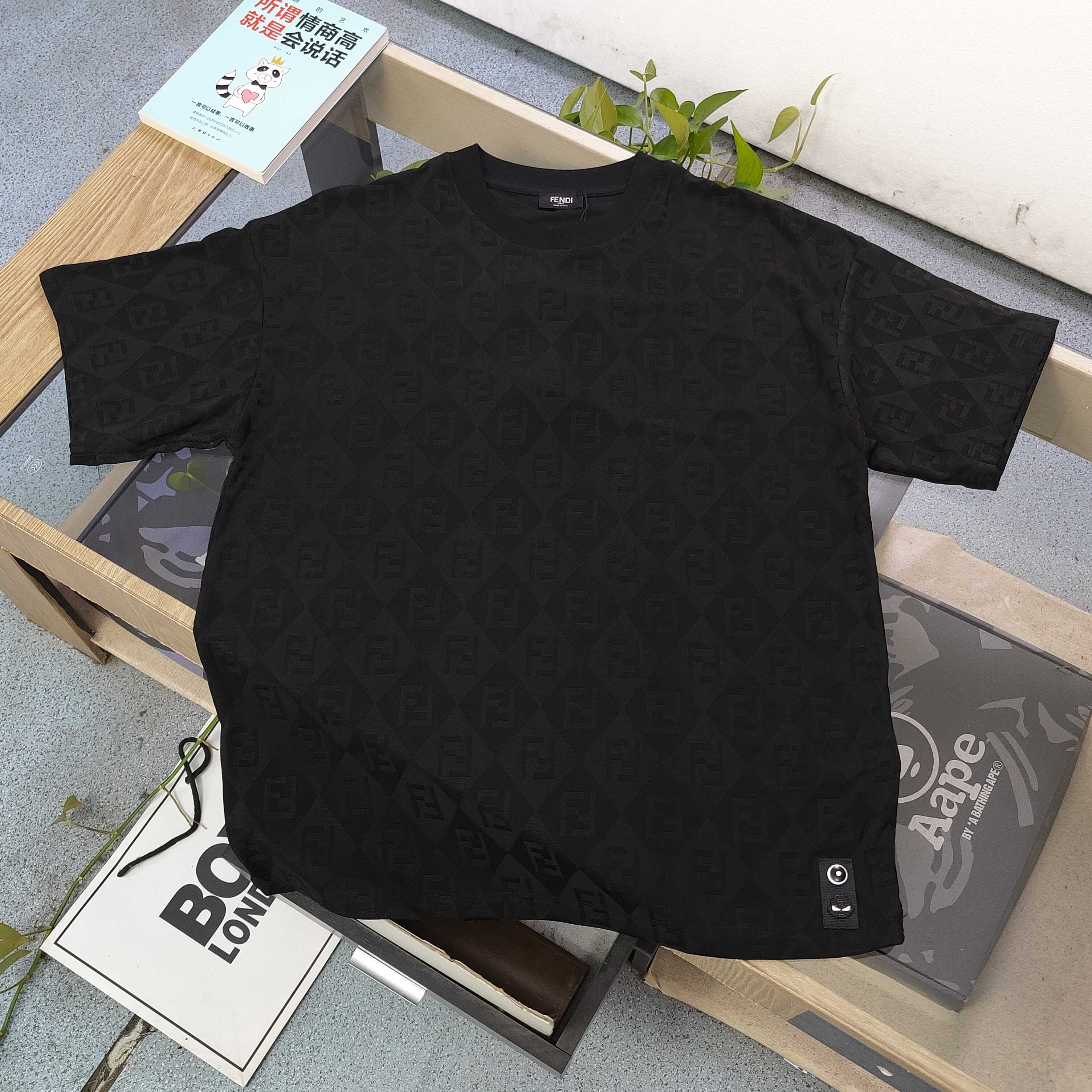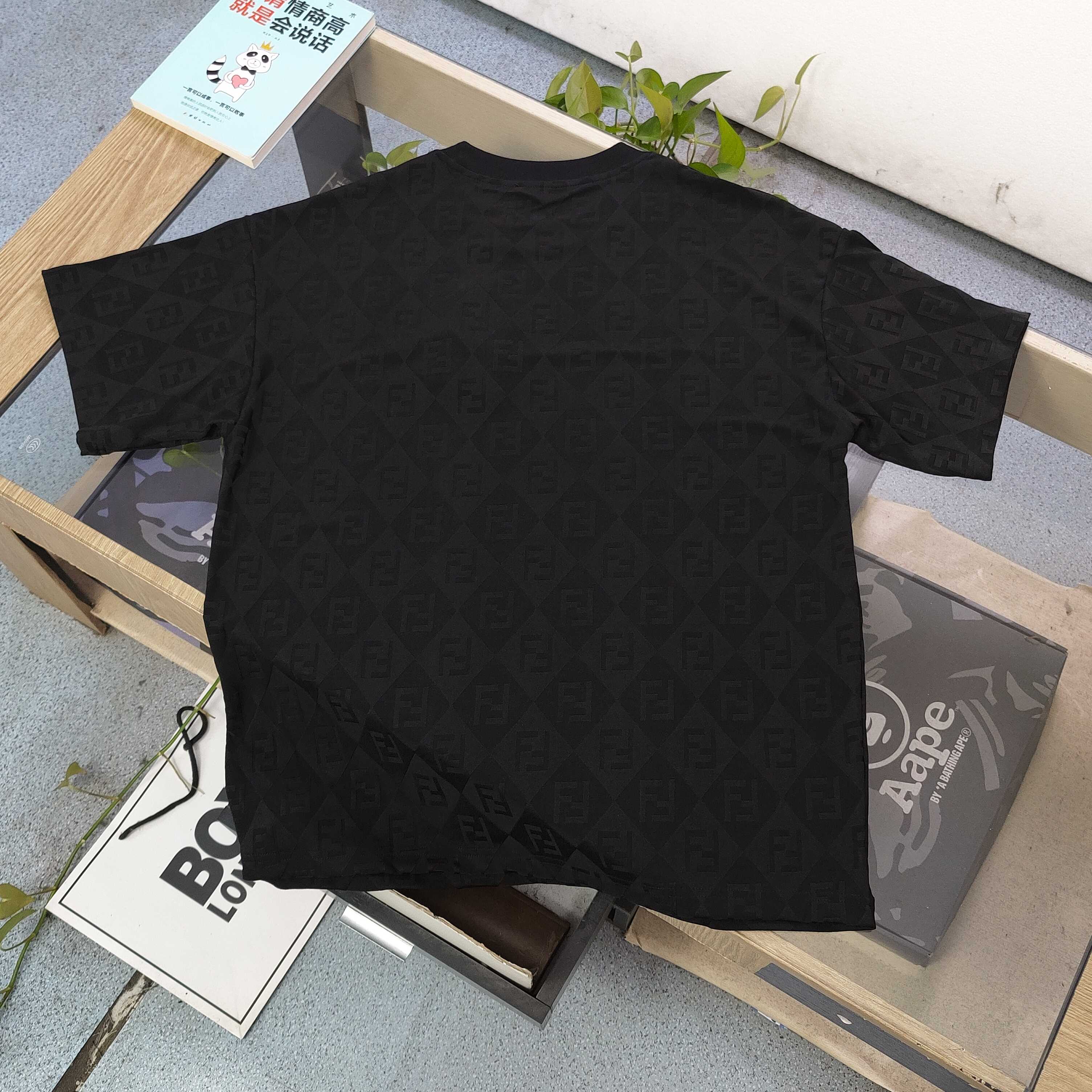 2025新款FENDI芬迪整版F字母图案logo提花休闲情侣宽松短袖T恤 独一无二的活性环保面料染色 32支双纱精梳纯棉爽滑手感 纯棉不起球不起毛 面料采用270克重的纯棉双纱爽滑面料 质量保证 定制面料 定制定染 欢迎对比质量 男女同款