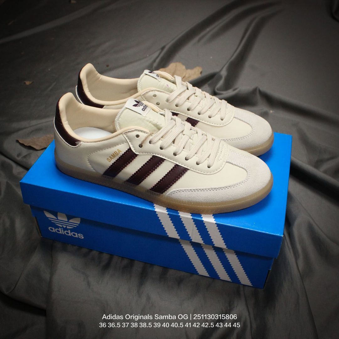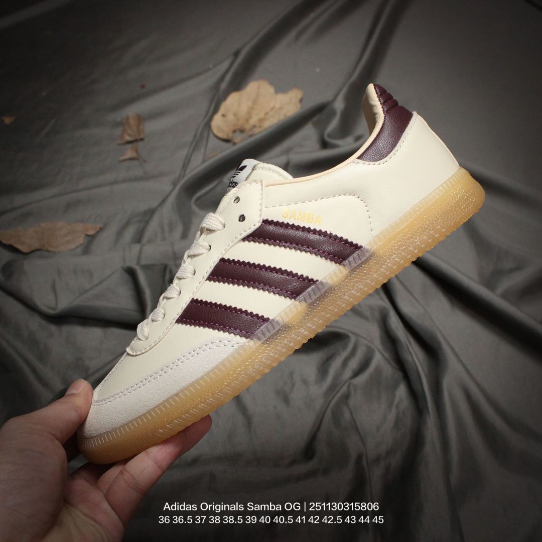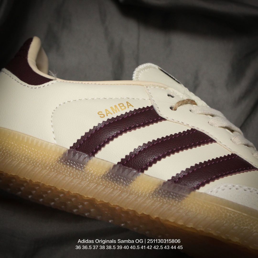 Adidas 阿迪达斯 德训系列 男女鞋真标半码制 原楦原纸版数据开发 采用粒面牛剖革鞋面材质 内环保可再生海玻璃鞋垫 外置RB耐磨防滑橡胶大底带你回味最原始的永远经典 阿迪达斯 三叶草Adidas Originals Samba OG桑巴舞系列绅士德训足球风百搭低帮休闲运动板鞋