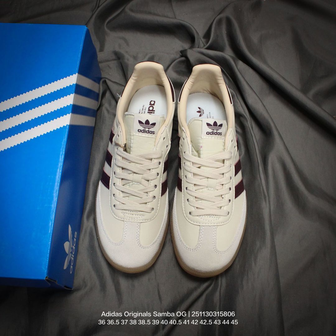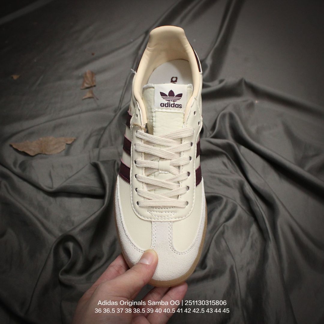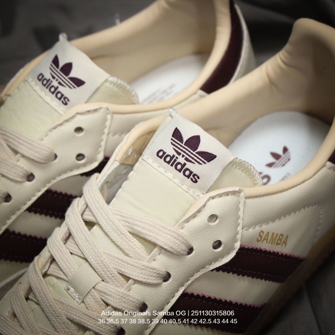 Adidas 阿迪达斯 德训系列 男女鞋真标半码制 原楦原纸版数据开发 采用粒面牛剖革鞋面材质 内环保可再生海玻璃鞋垫 外置RB耐磨防滑橡胶大底带你回味最原始的永远经典 阿迪达斯 三叶草Adidas Originals Samba OG桑巴舞系列绅士德训足球风百搭低帮休闲运动板鞋