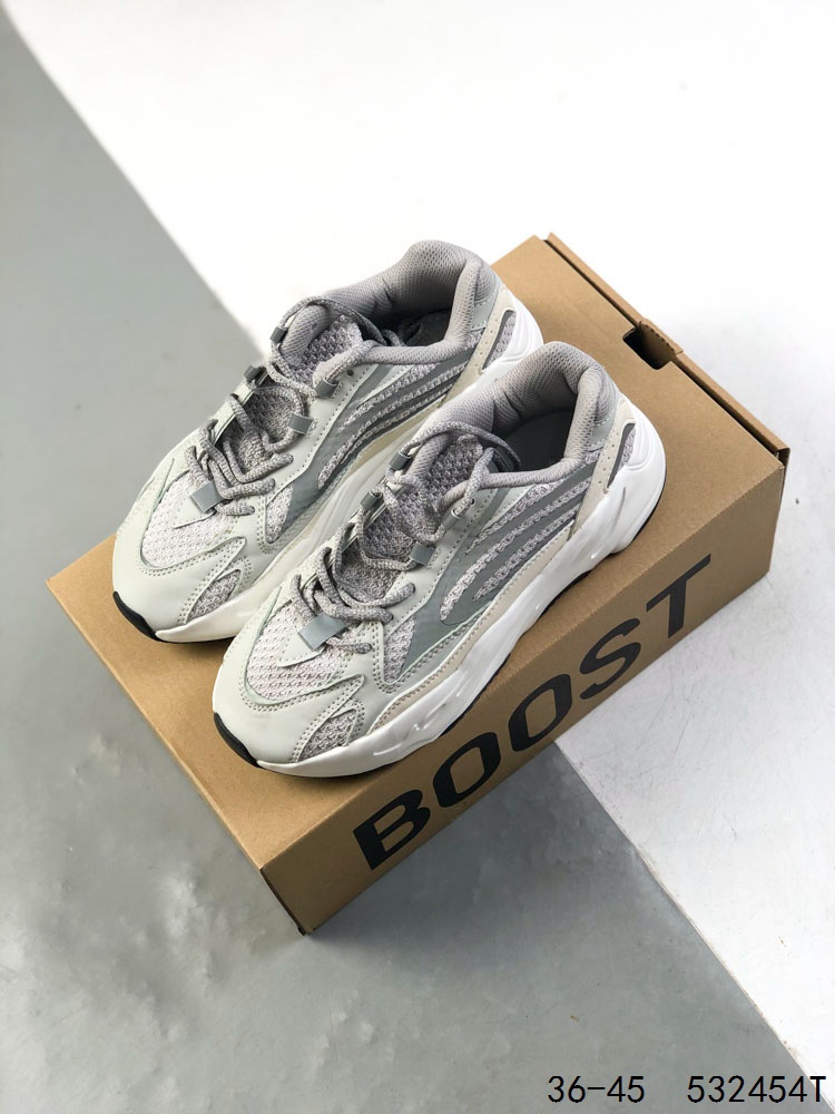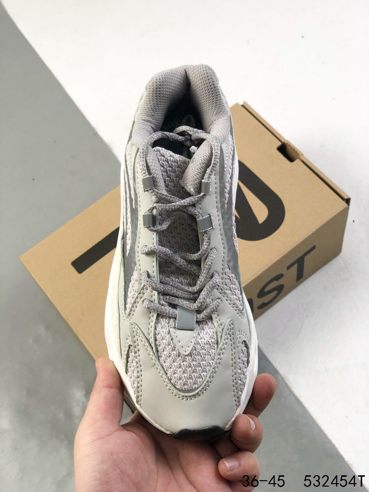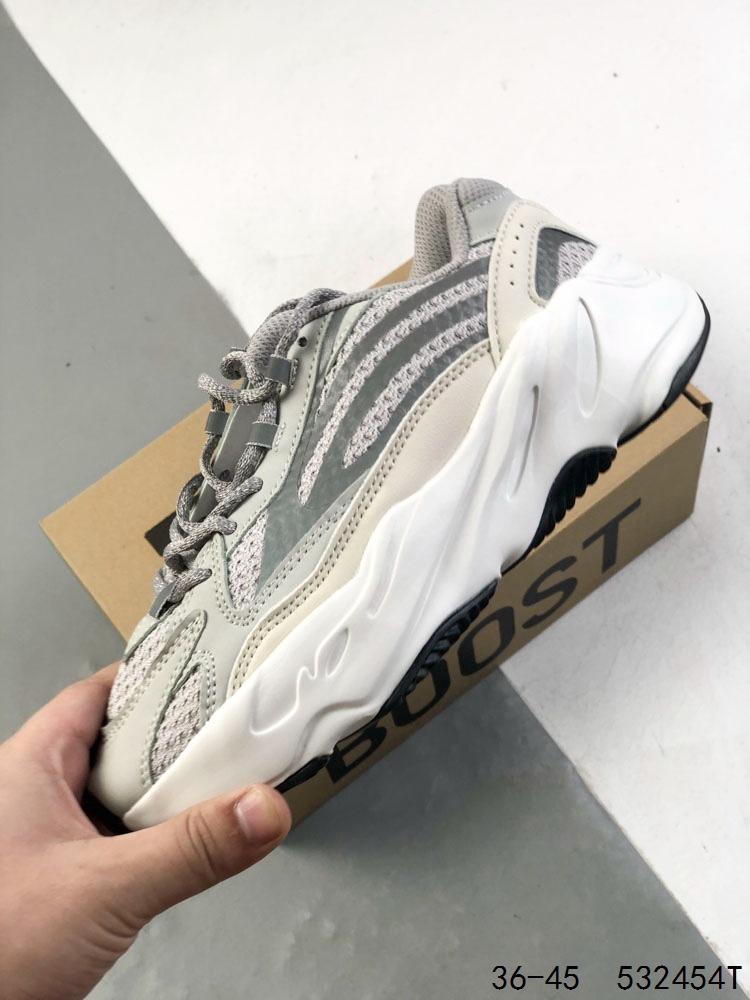 阿迪达斯Adidas Yeezy 700 V2 3M反光 椰子700 厚底男女老爹鞋缓震透气舒适中性跑鞋 在原鞋型YEEZY BOOST 700稍作修改 整体鞋型流线型更为修长 鞋面采用织物材质 透气性能佳 穿着舒适不闷脚 鞋面皮质 网面以及3M反光三款不同材质的搭配 凸显出了整体鞋款的视觉层次感 即使是老爹鞋的款式 看起来也不会显得笨重 反光材质也为这款鞋加分不少 潮酷十足 看似更为厚重的大底设计 与整体鞋面相搭 鞋底使用橡胶材质 具有耐磨性和防滑性 颜色为深灰色 整体设计复古轻便 受到众多消费者的追捧