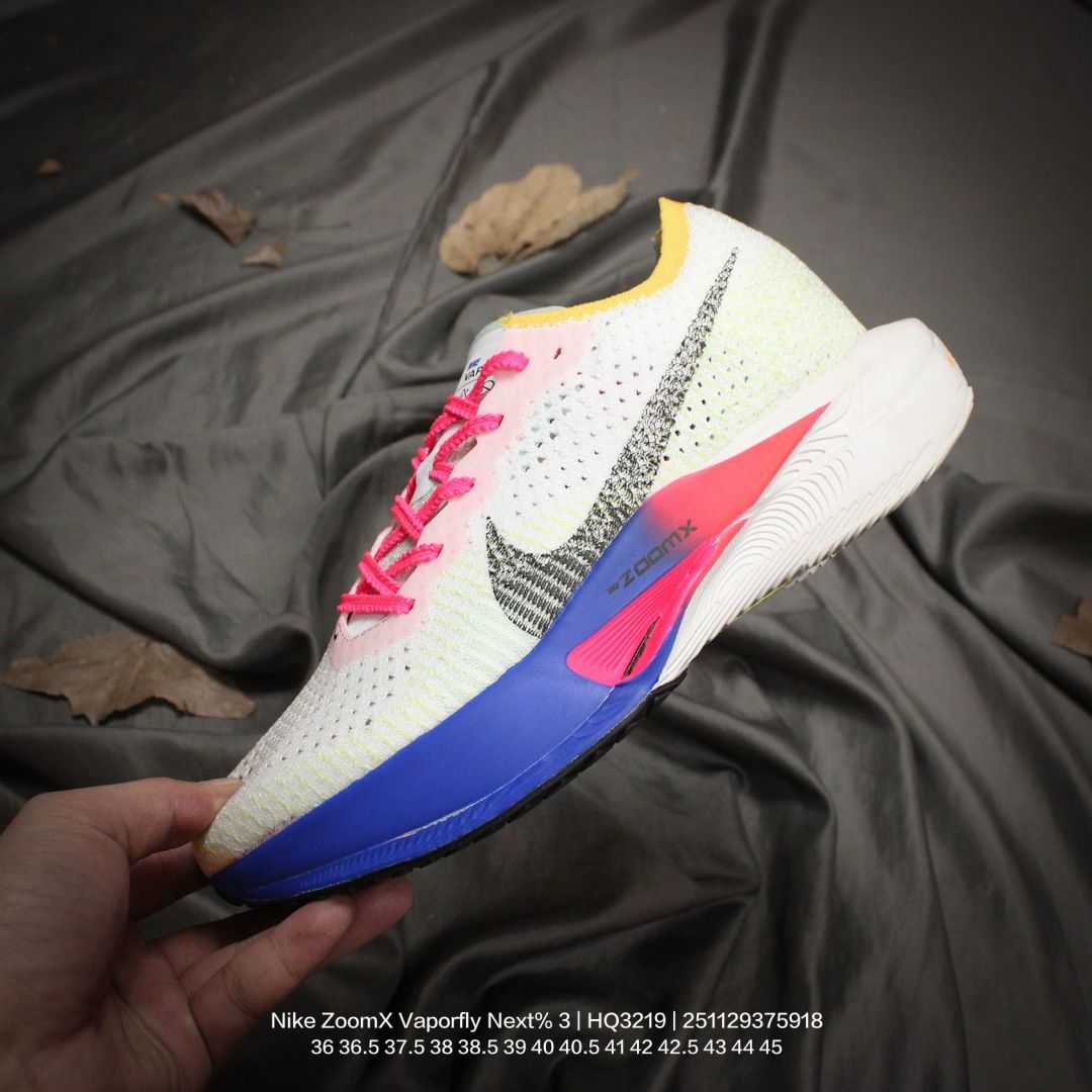 Nike 耐克 男女鞋真标半码制 采用Flyknit织物融合TPU丝半透明鞋面材质 中底采用ZoomX泡棉 FlyPlate铲型塑料仿碳板 外置防滑耐磨大底片科技扛鼎 再次提升 全新耐克Nike ZoomX Vaporfly Next 3 Blue Ribbon Sports 空气飞行3代系列马拉松轻量超跑竞速运动慢跑鞋 HQ3219