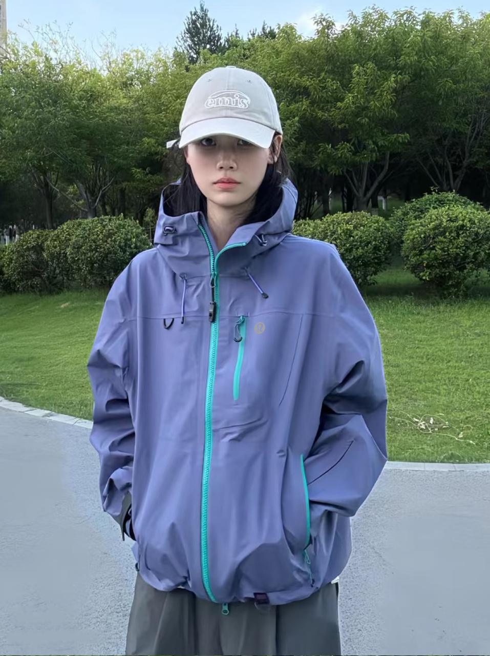 抽绳连帽 连帽设计超实用 能很好地保护头部 防止风吹雨淋 而且还有抽绳 可以根据自己的需求调节帽子的松紧 既能在大风天让帽子稳稳地待在头上 又能在不需要时把它随意一放 不影响整体造型