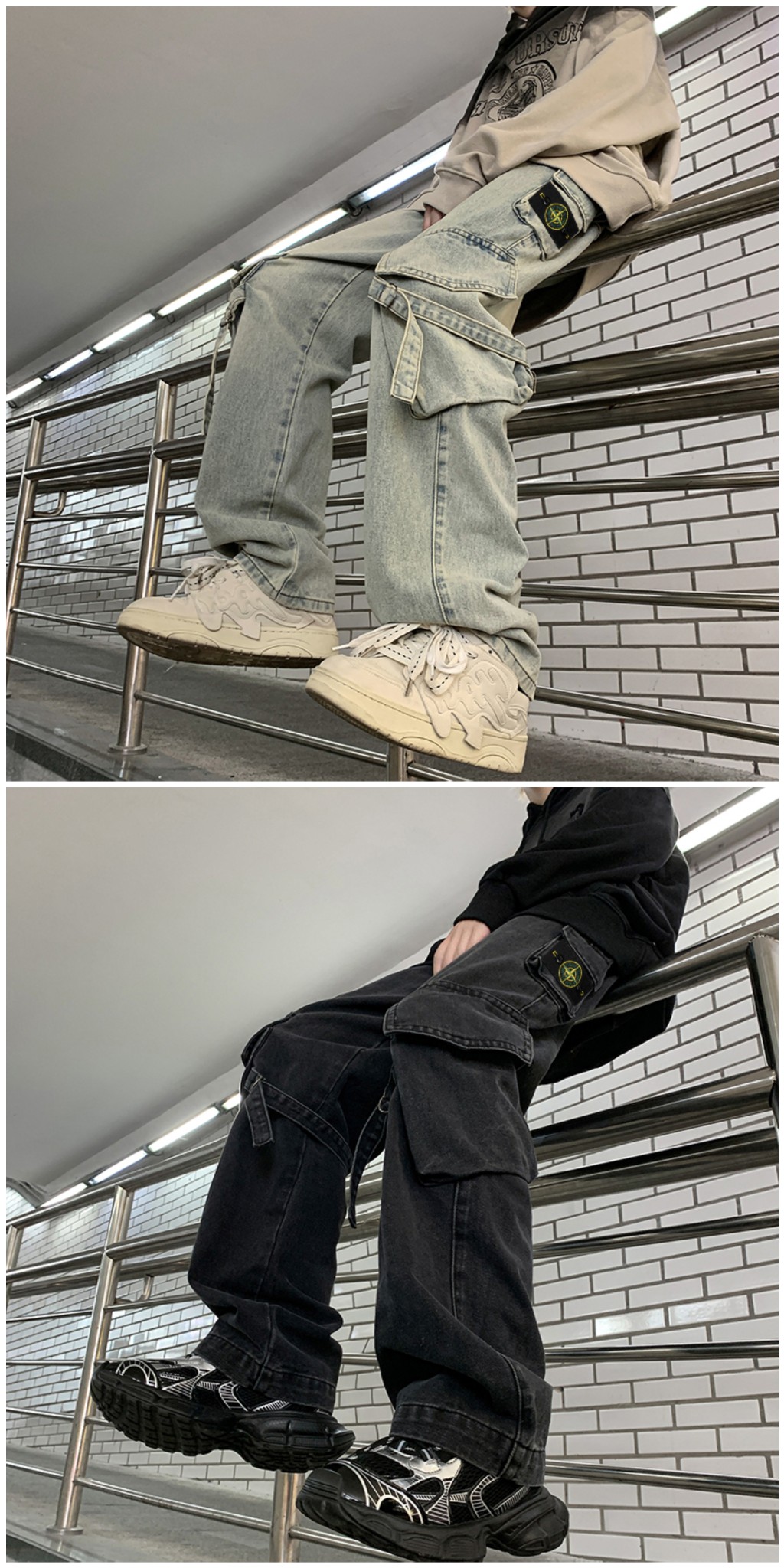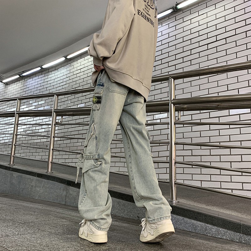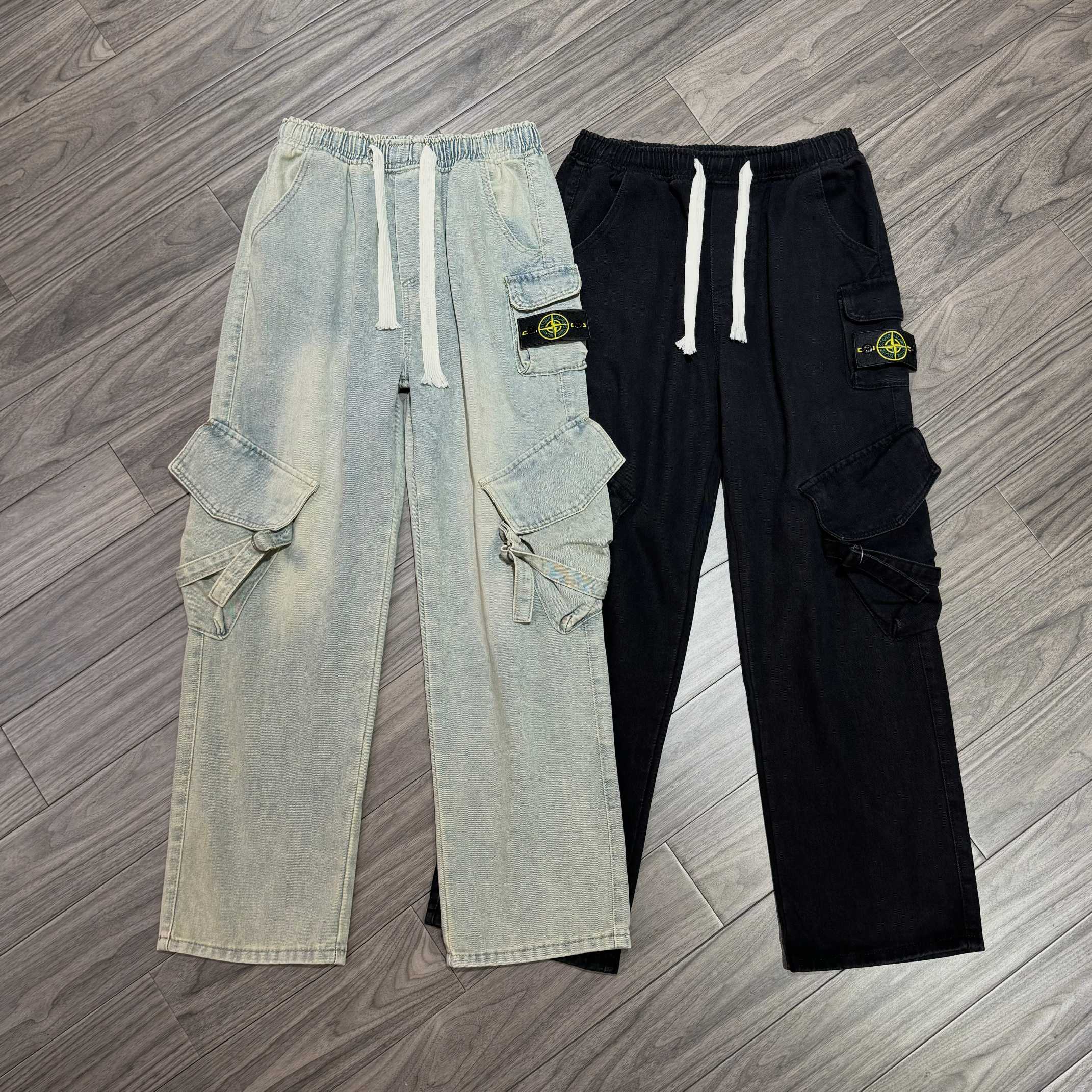 Stone Island 石头岛 ss25新款美式高街阔腿直筒大口袋牛仔裤子长裤
