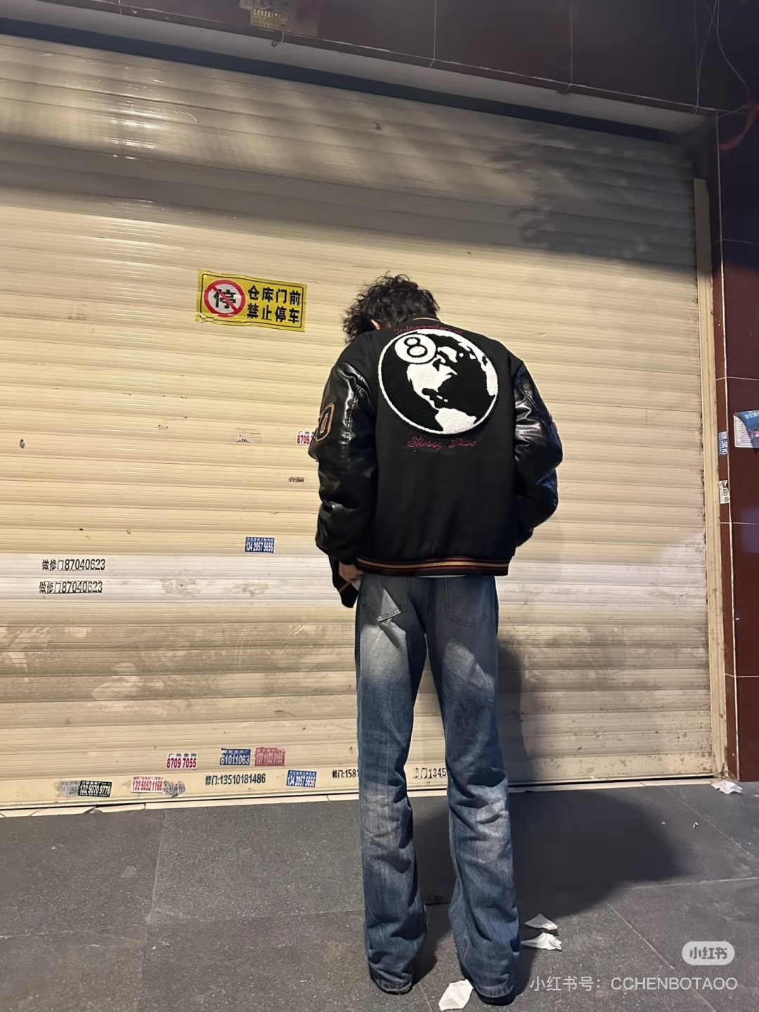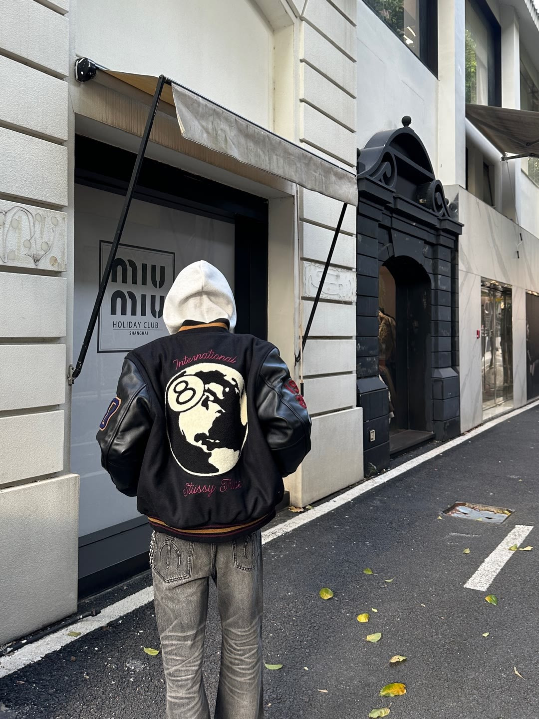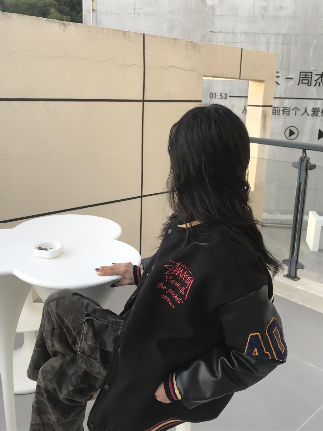 上身效果图𝟭𝟬𝟵𝟲𝟯 薄款 厚款 独家实拍上新 区别市面各种盗图以及网图版本 顶级羊毛品质𝗦𝘁𝘂𝘀𝘀𝘆 𝟮𝟱𝘀𝘀联名款𝗩𝗮𝗿𝘀𝗶𝘁𝘆 𝗝𝗮𝗰𝗸𝗲𝘁黑八台球薄款皮袖棒球服外套