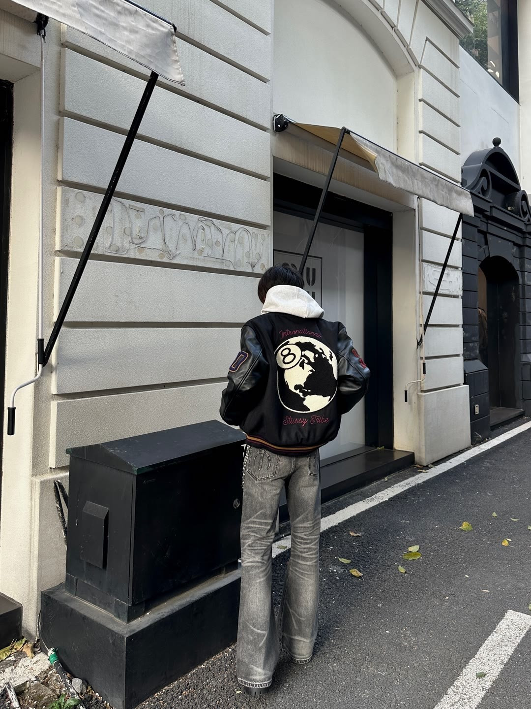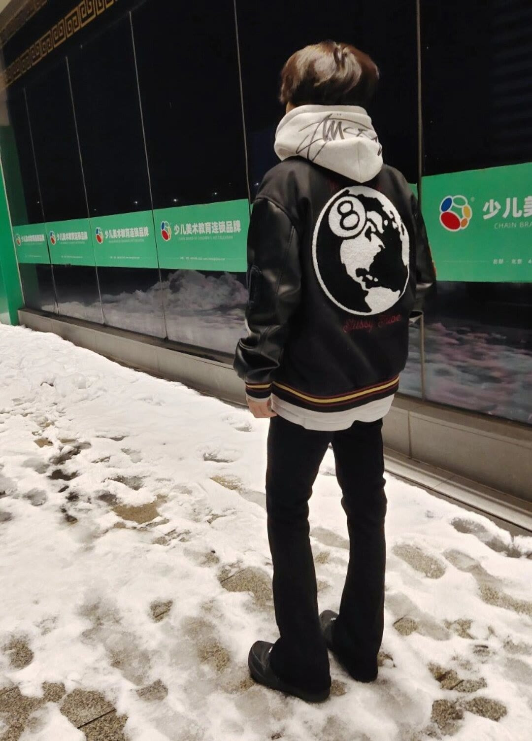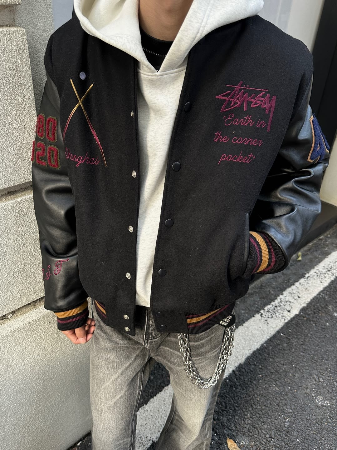 上身效果图𝟭𝟬𝟵𝟲𝟯 薄款 厚款 独家实拍上新 区别市面各种盗图以及网图版本 顶级羊毛品质𝗦𝘁𝘂𝘀𝘀𝘆 𝟮𝟱𝘀𝘀联名款𝗩𝗮𝗿𝘀𝗶𝘁𝘆 𝗝𝗮𝗰𝗸𝗲𝘁黑八台球薄款皮袖棒球服外套